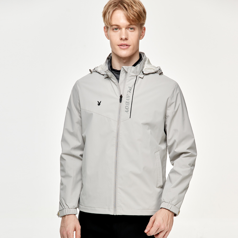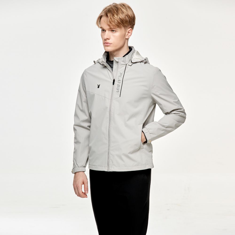 【PLAYBOY GOLF】男款帽子可拆防風透氣防潑水薄外套-卡其 / AC24211-75