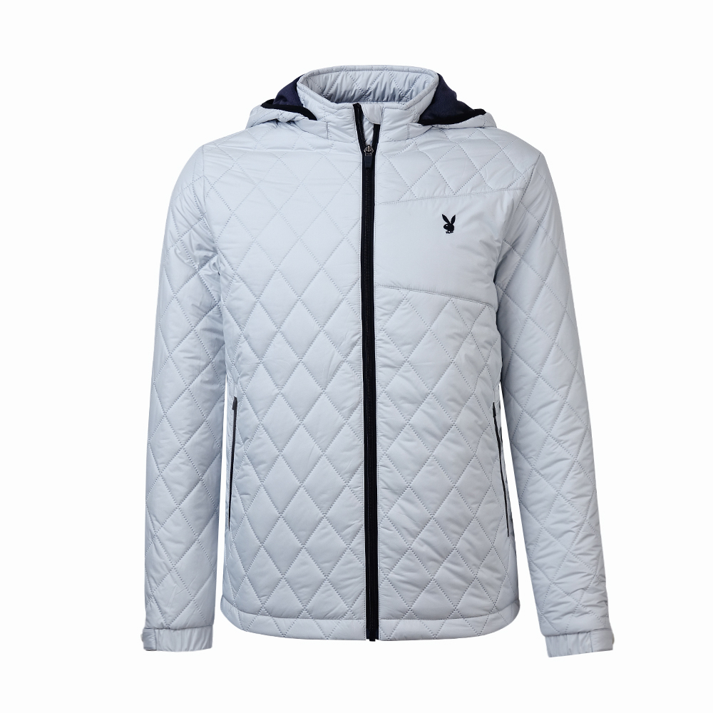 【PLAYBOY GOLF】男款菱形壓棉防風防潑水高爾夫鋪棉外套-灰 / AC24220-83