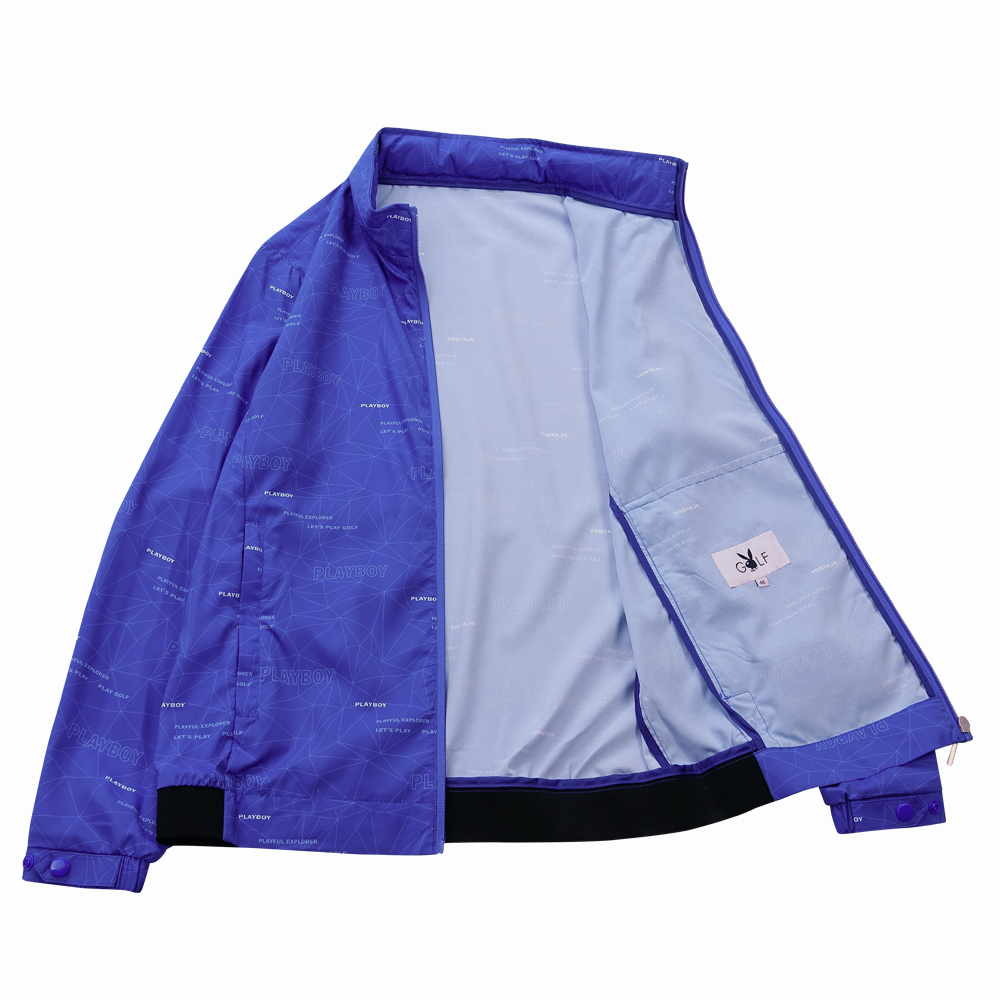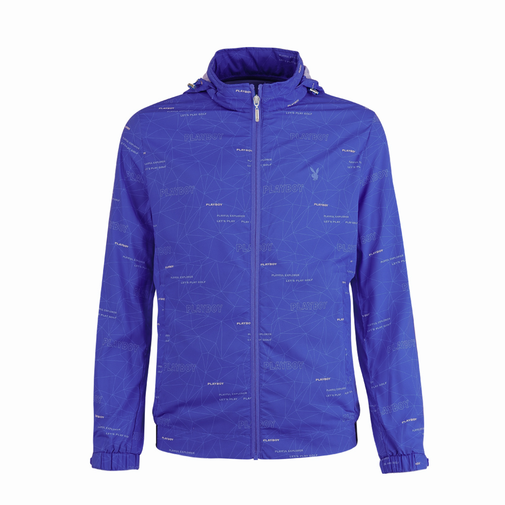 【PLAYBOY GOLF】男款品牌標語防曬休閒薄外套-藍 / AC25101-56