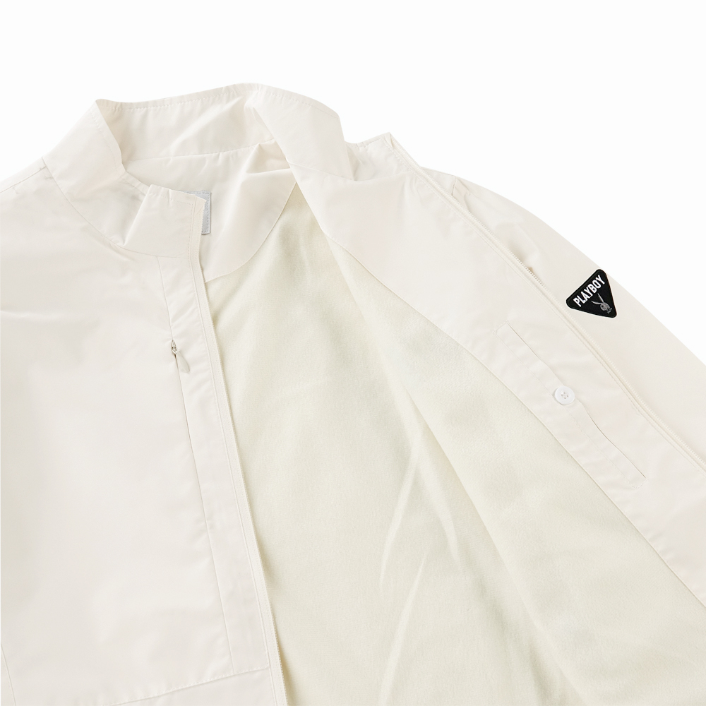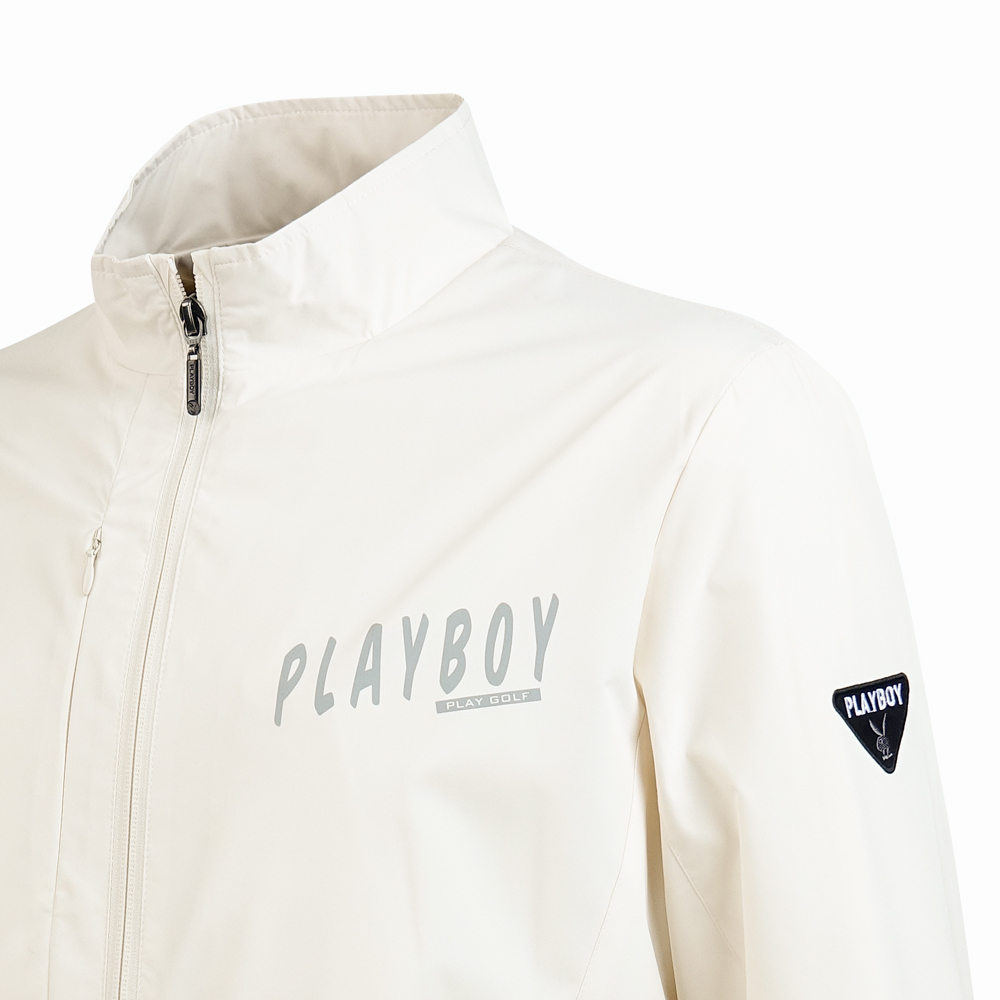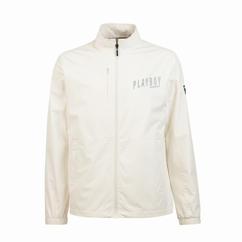 【PLAYBOY GOLF】男款防風防潑水高爾夫立領外套-白 / AC25210-73
