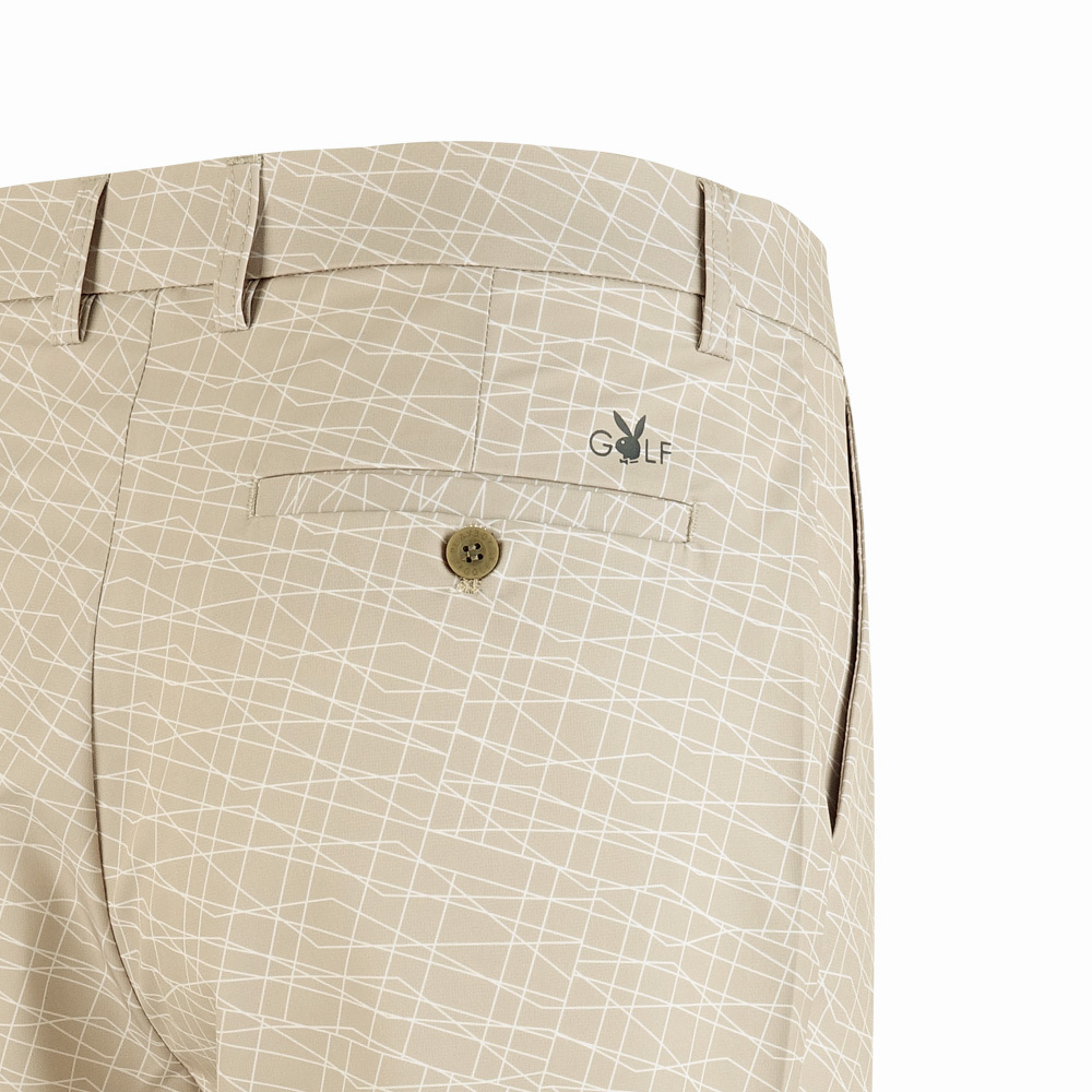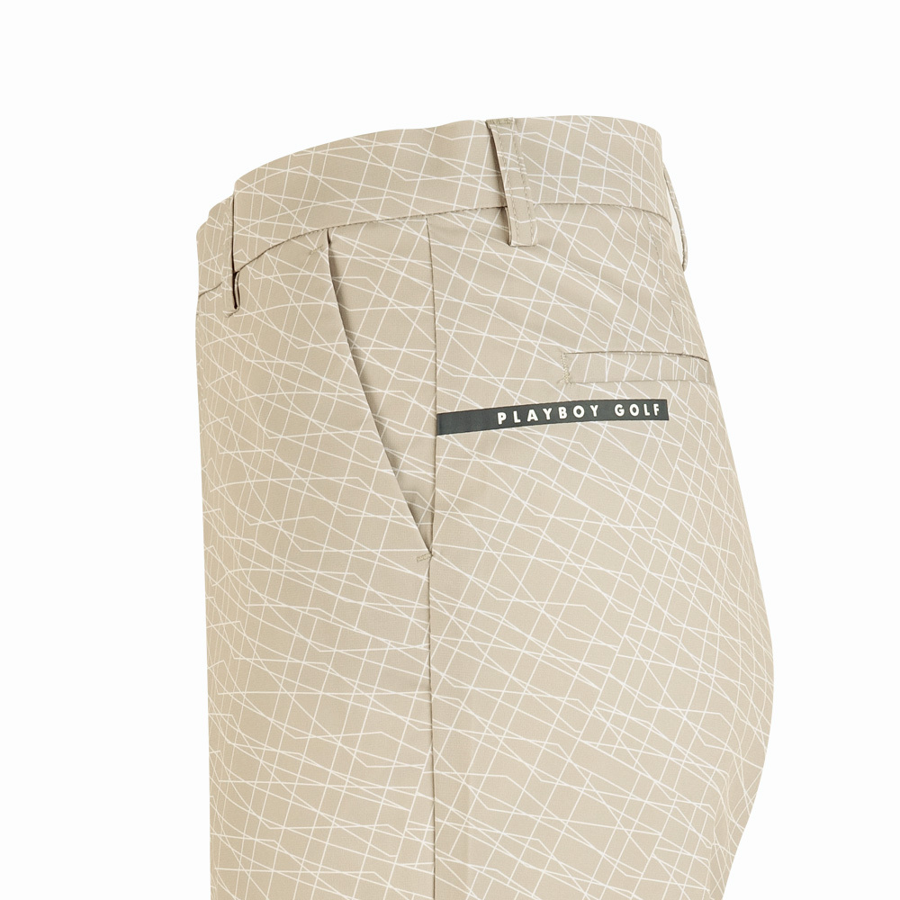 【PLAYBOY GOLF】男款網格紋高彈力休閒短褲-卡其 / AD25101-75