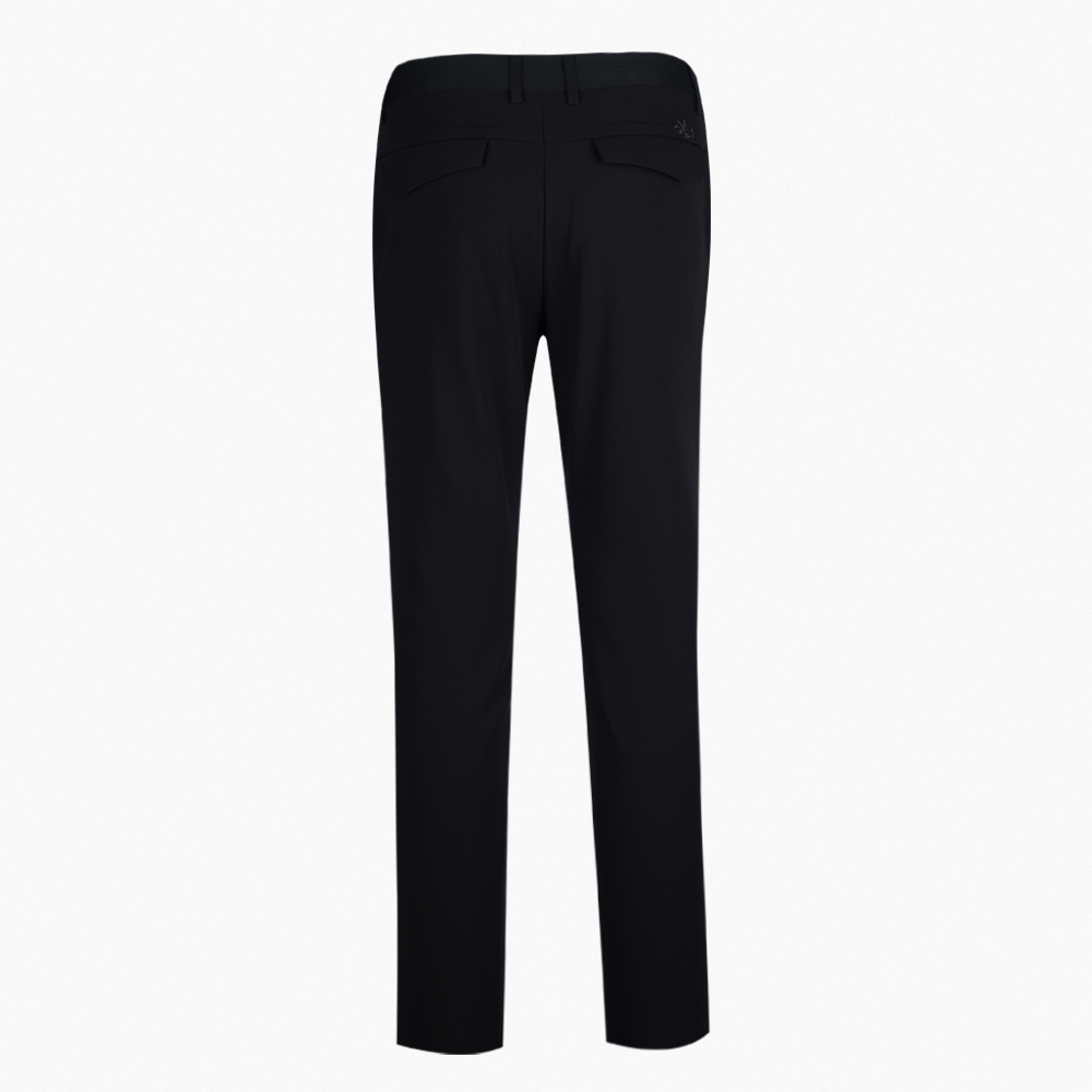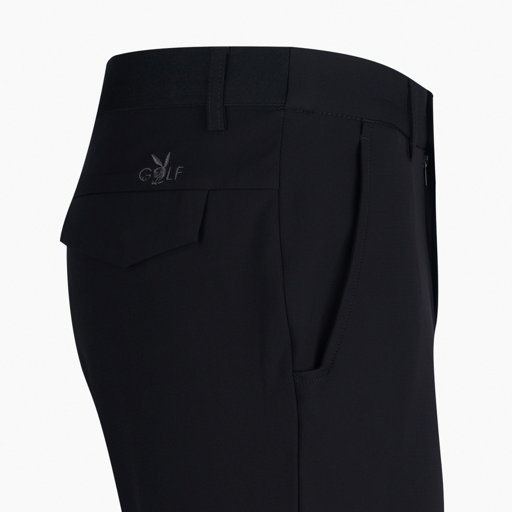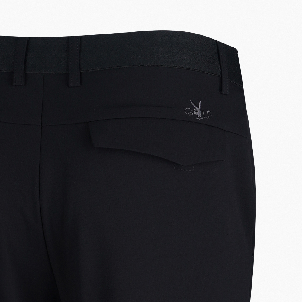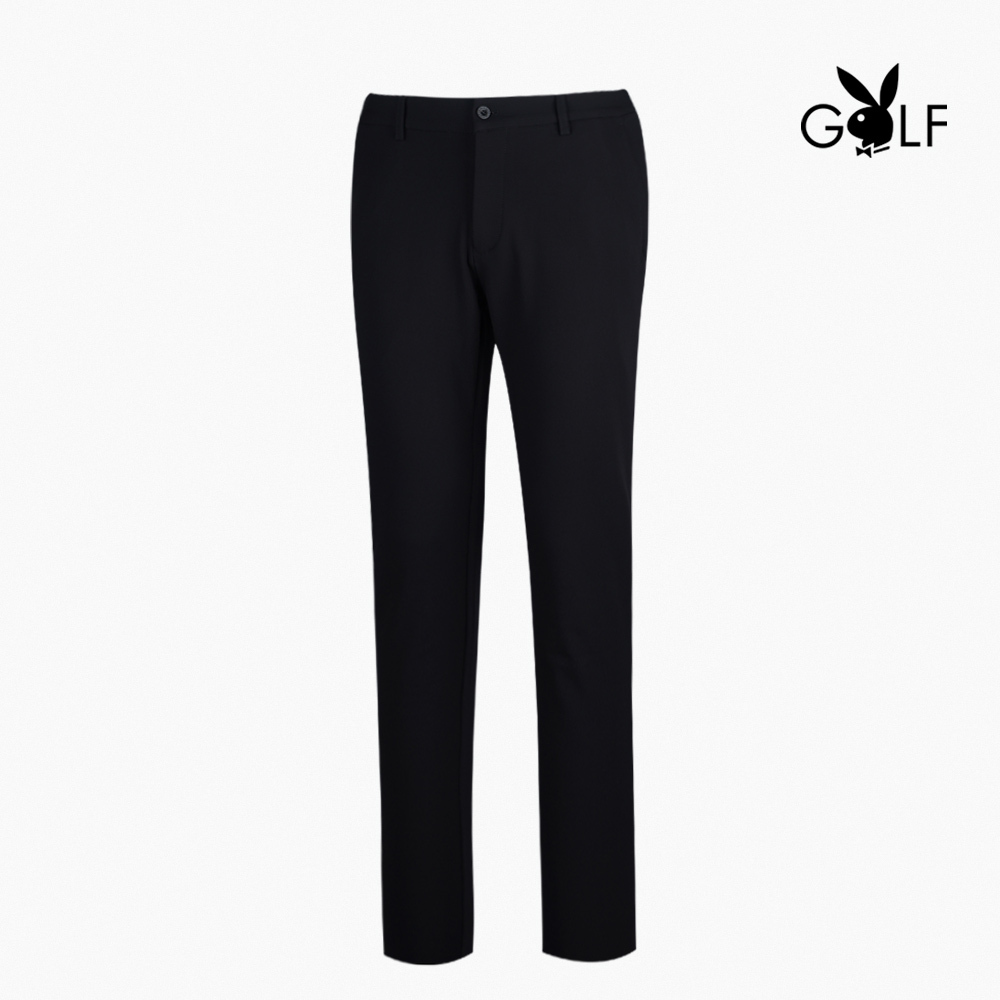 【PLAYBOY GOLF】男款鬆緊腰頭高彈性平面休閒長褲-黑 / AE22222-88