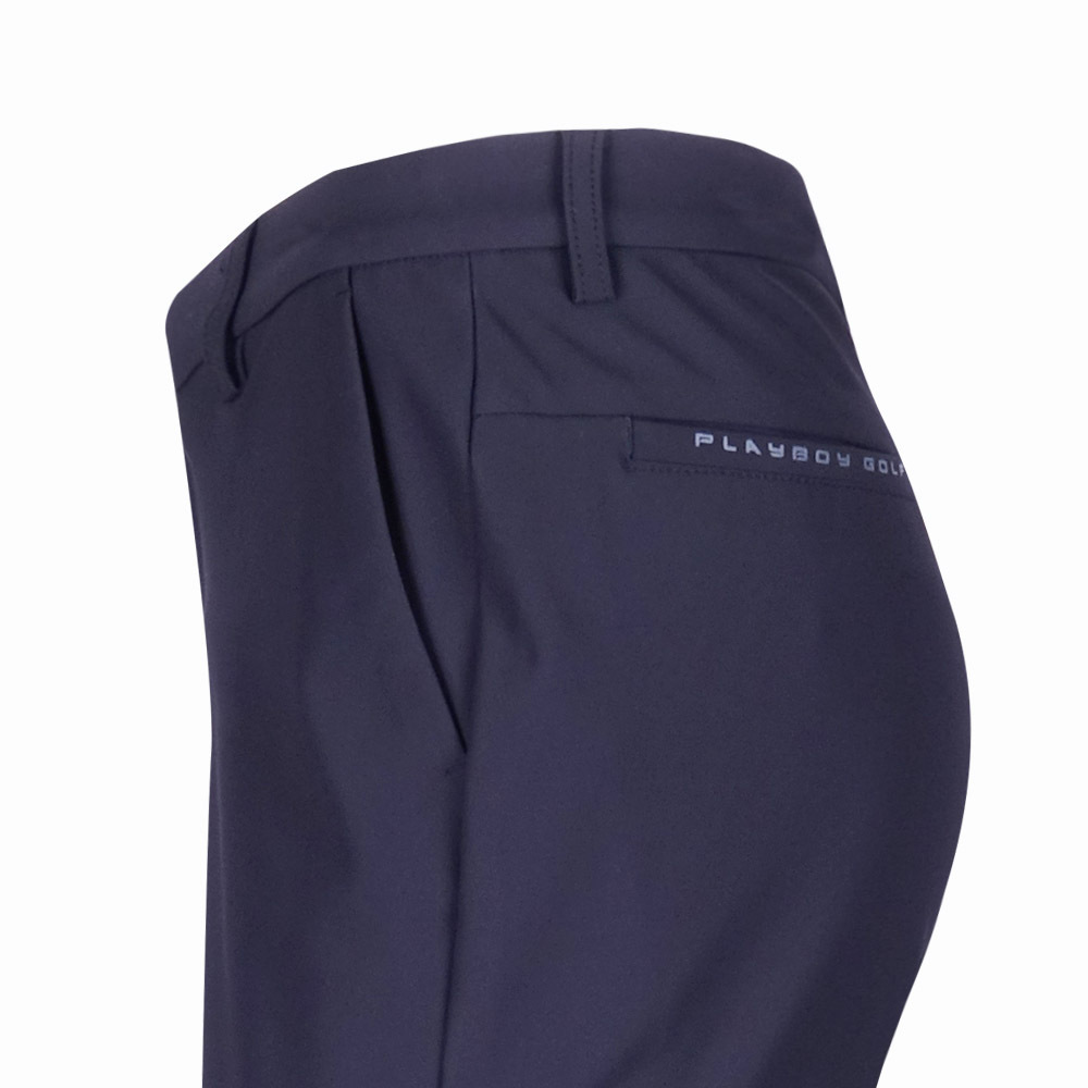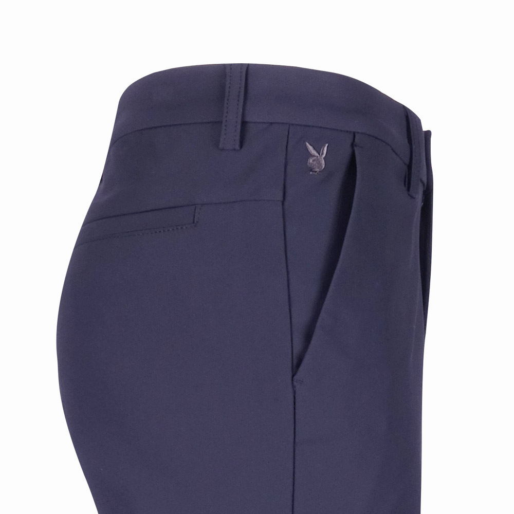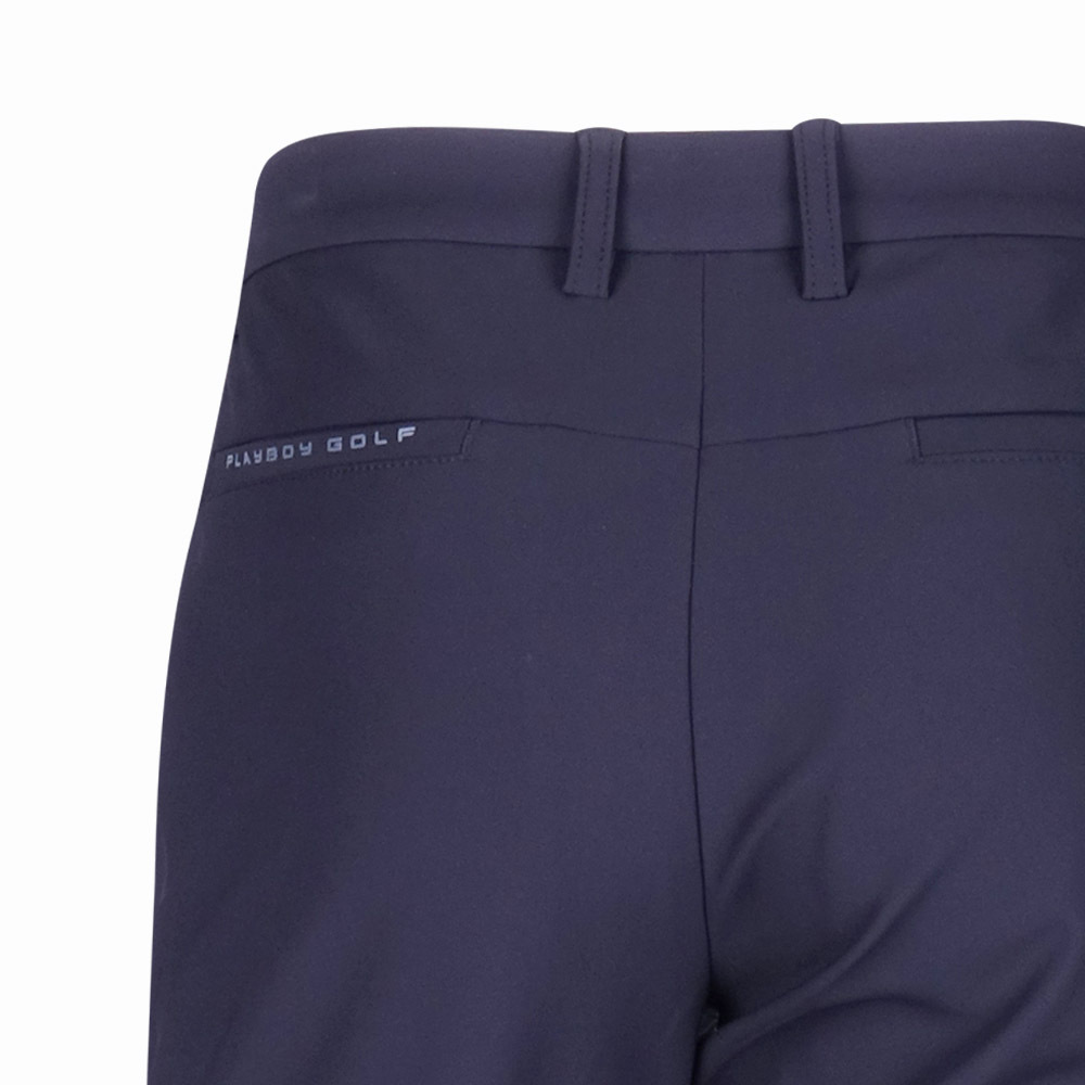 【PLAYBOY GOLF】男款LOGO鬆緊腰頭高彈性平面休閒長褲-深藍 / AE23222-58