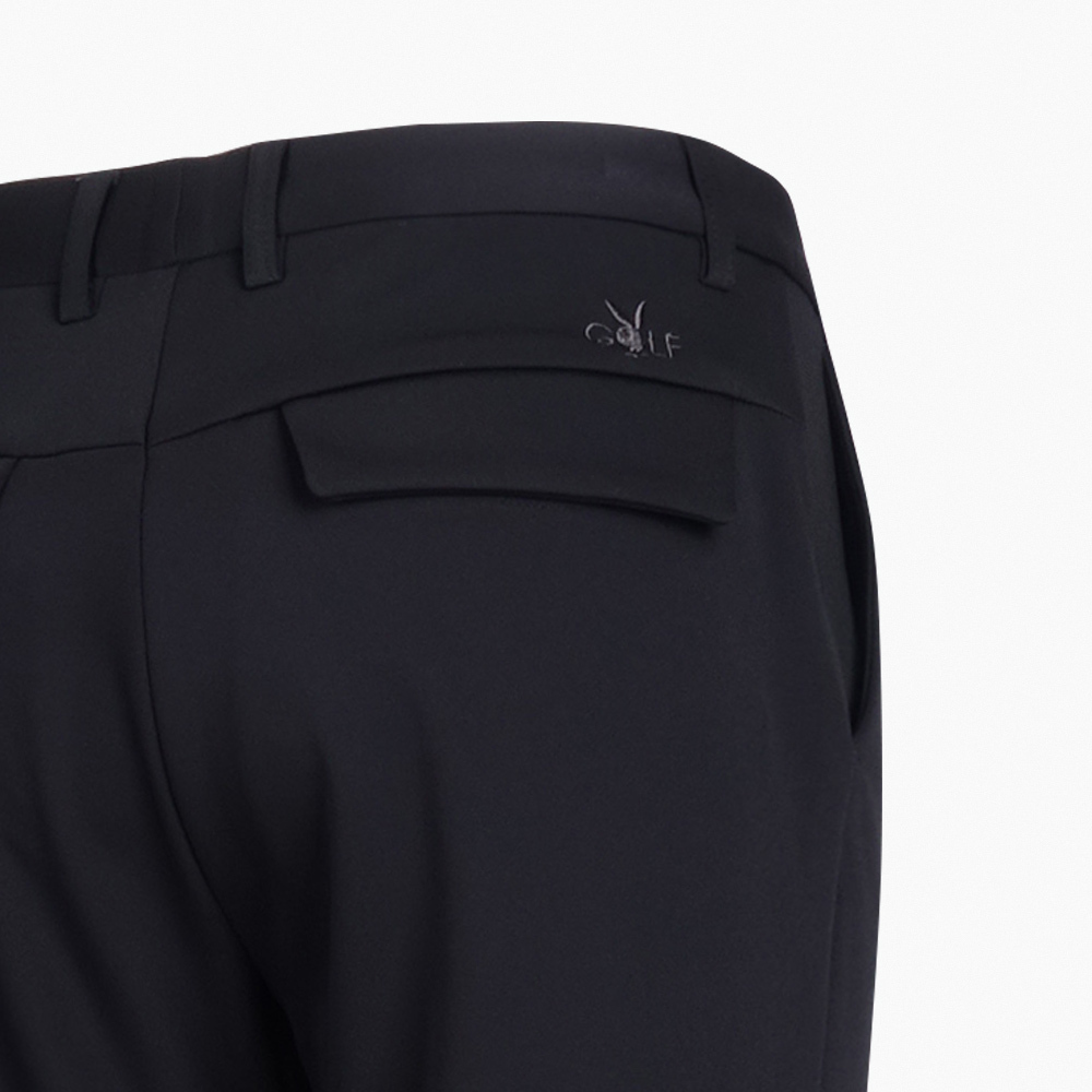【PLAYBOY GOLF】男款後蓋袋鬆緊腰頭高彈高爾夫休閒長褲-黑 / AE23223-88