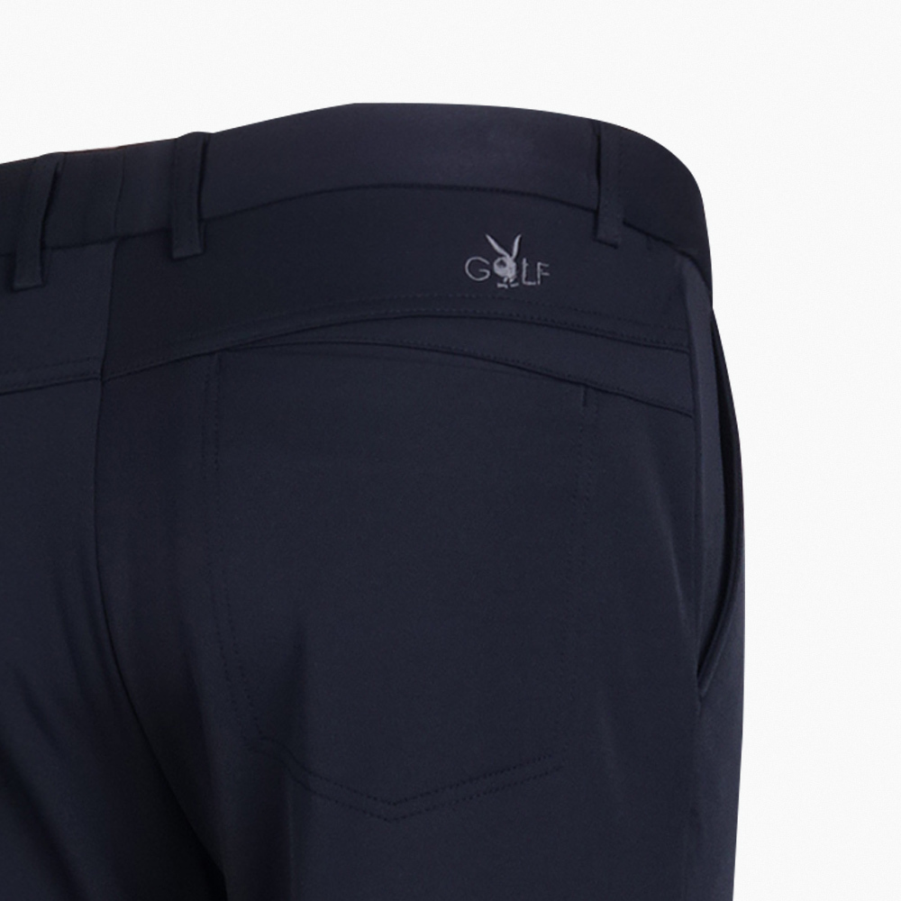 【PLAYBOY GOLF】男款素色鬆緊腰頭高彈高爾夫休閒長褲-深藍 / AE23225-58