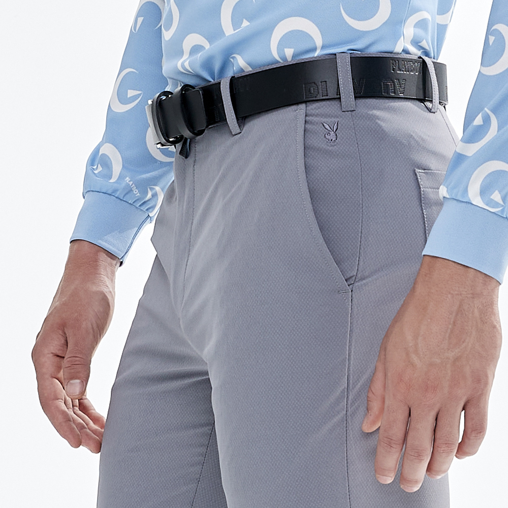 【PLAYBOY GOLF】男款吸濕排汗鬆緊腰頭高彈性高爾夫休閒長褲-灰 / AE23229-85