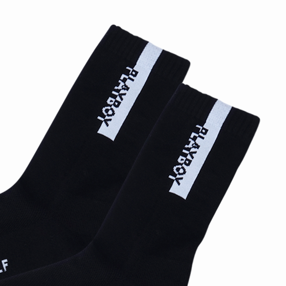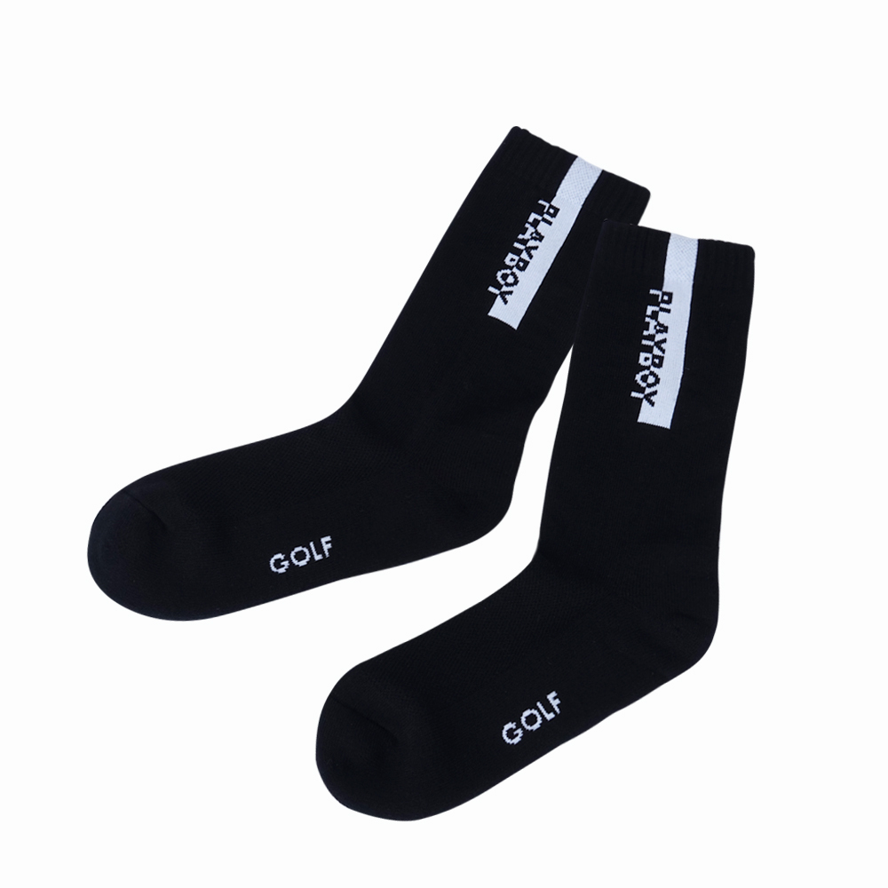 【PLAYBOY GOLF】男款LOGO中筒運動襪-黑 / AO22201-88