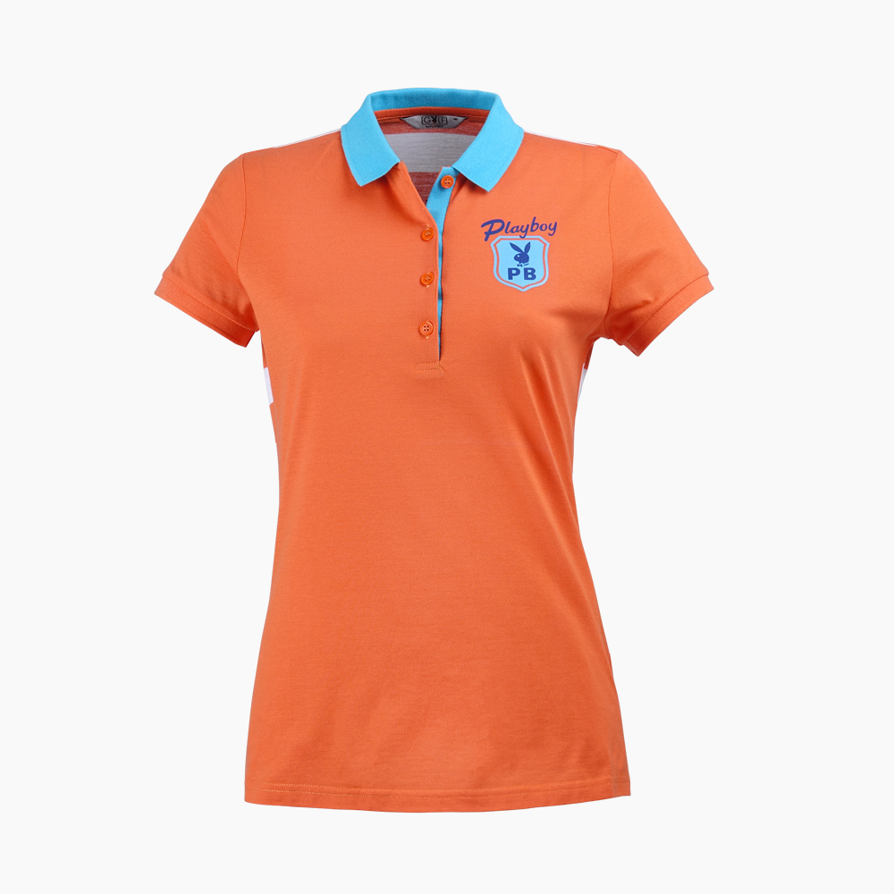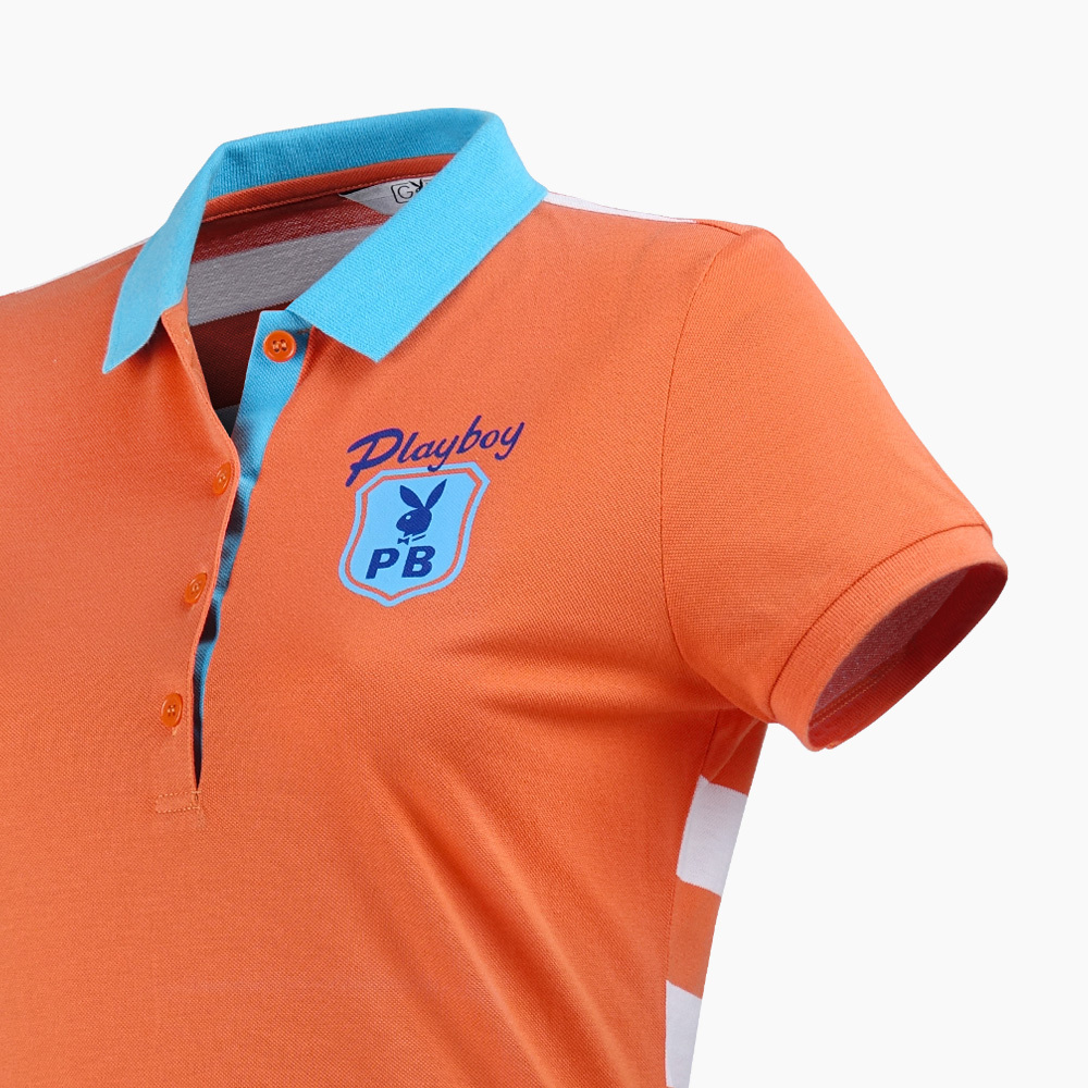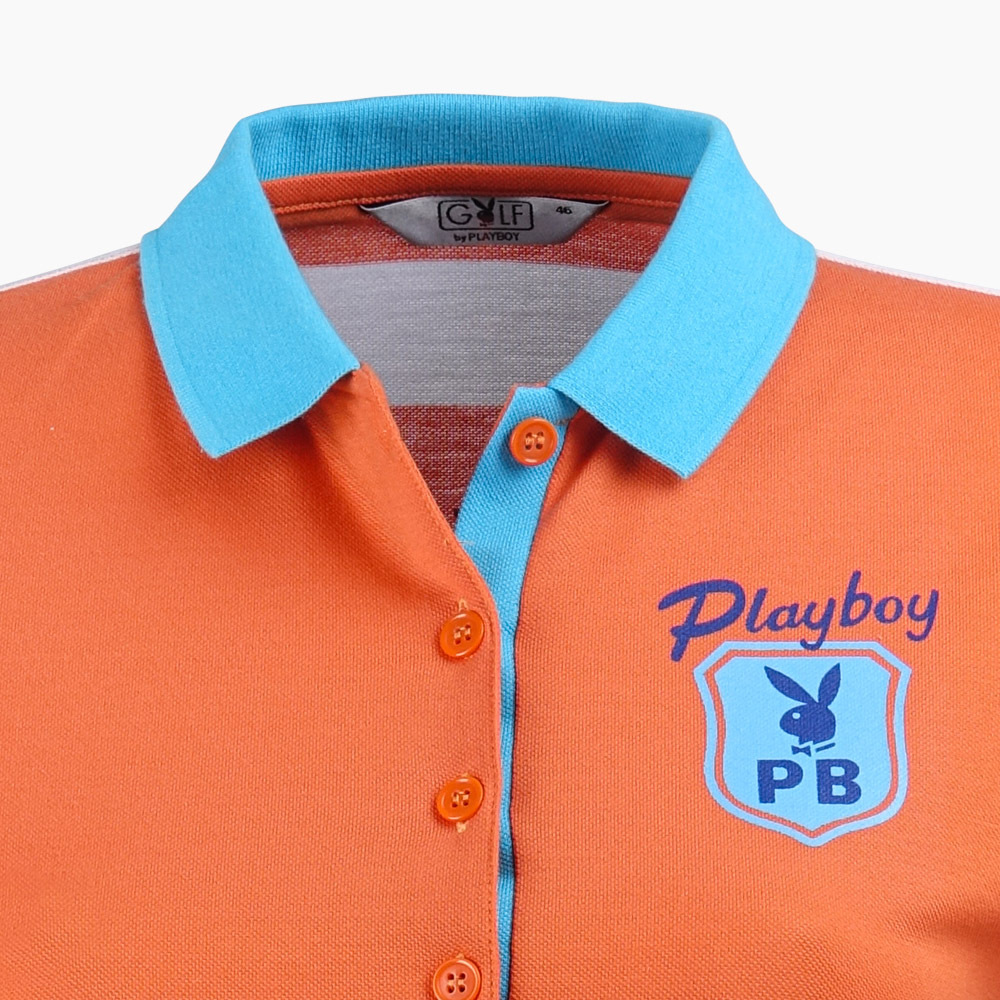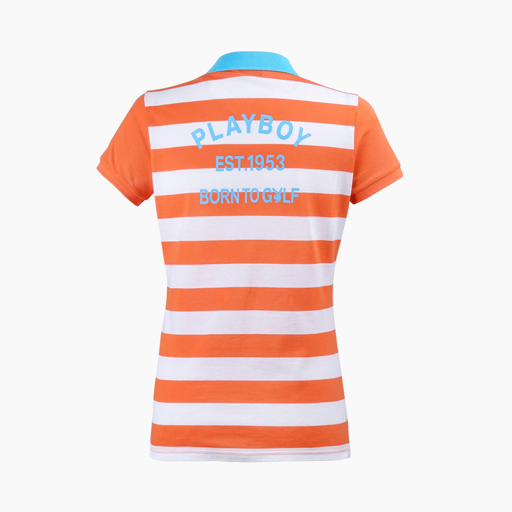 【PLAYBOY GOLF】女款後條紋高爾夫短袖POLO衫-橘 / KA15107-25
