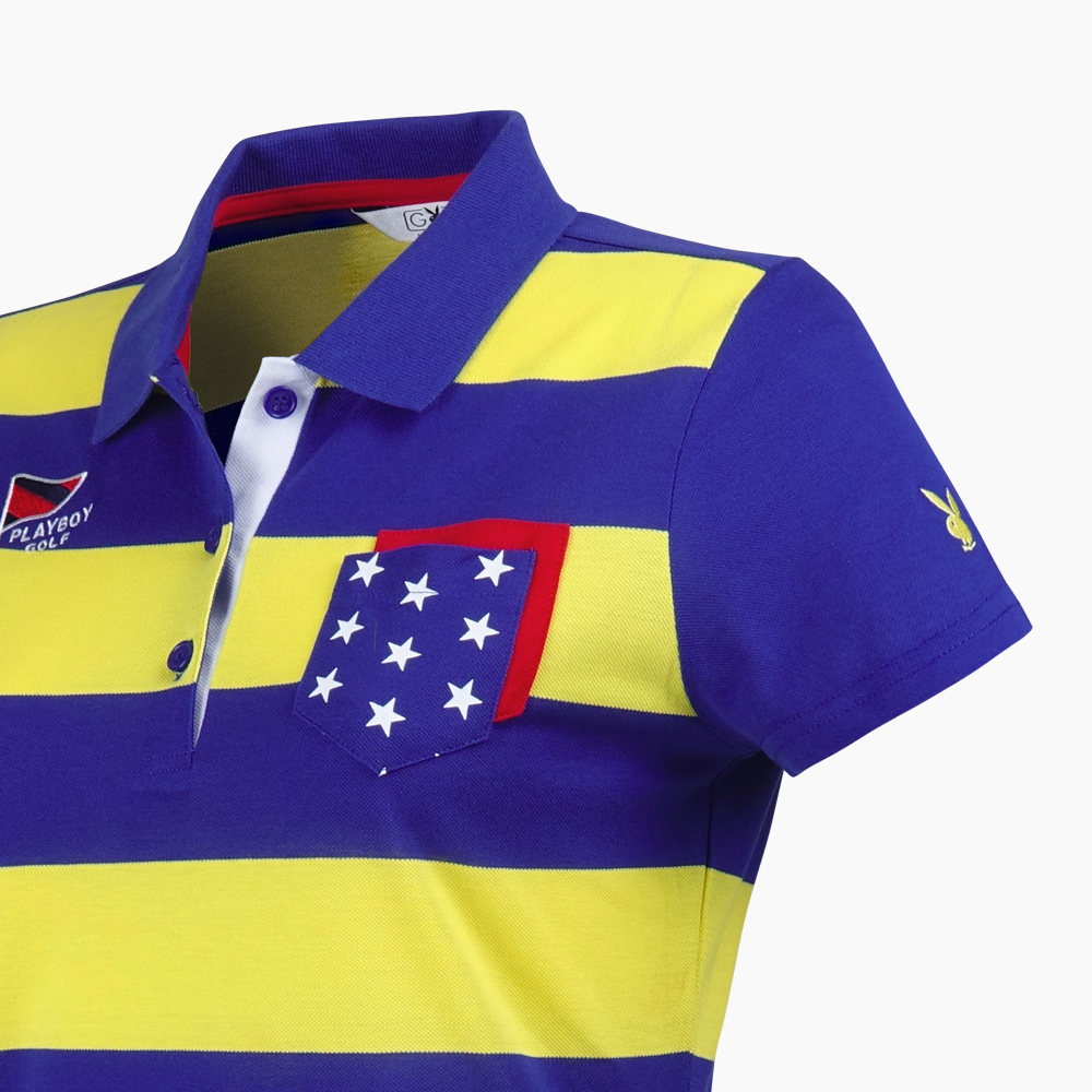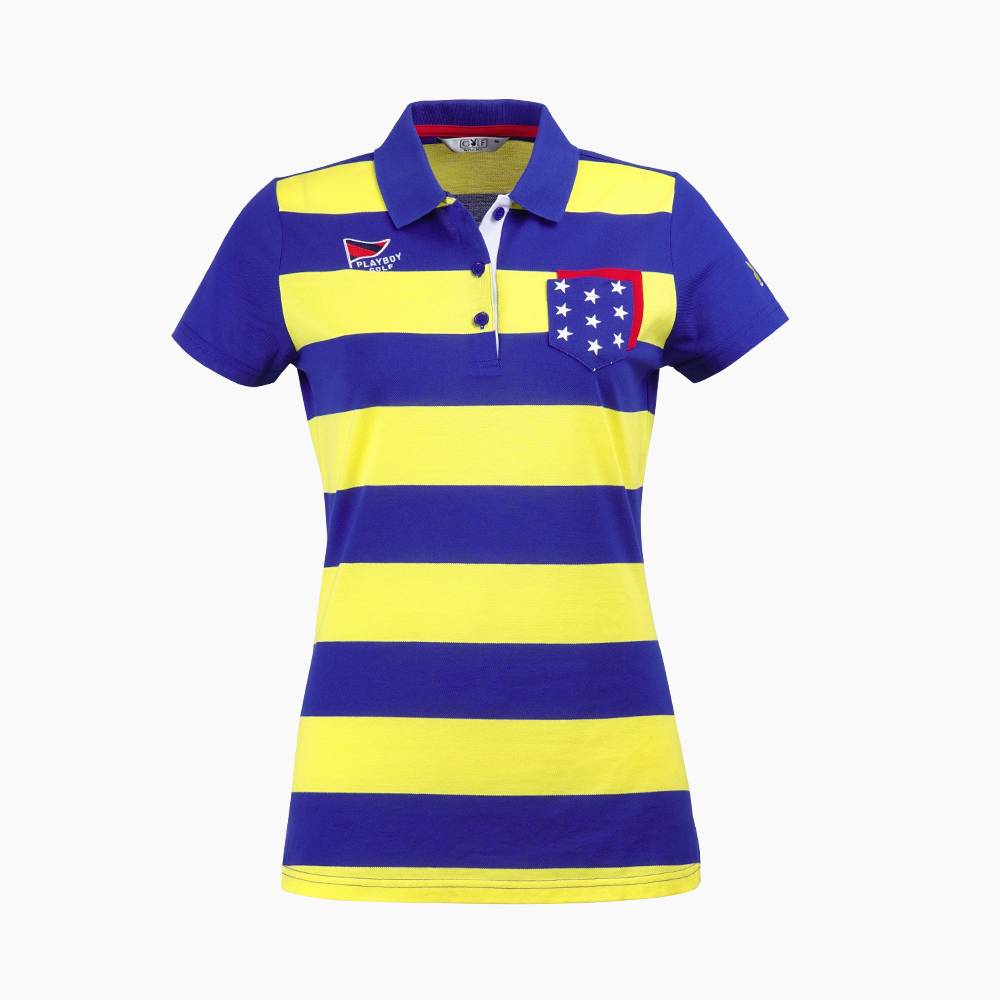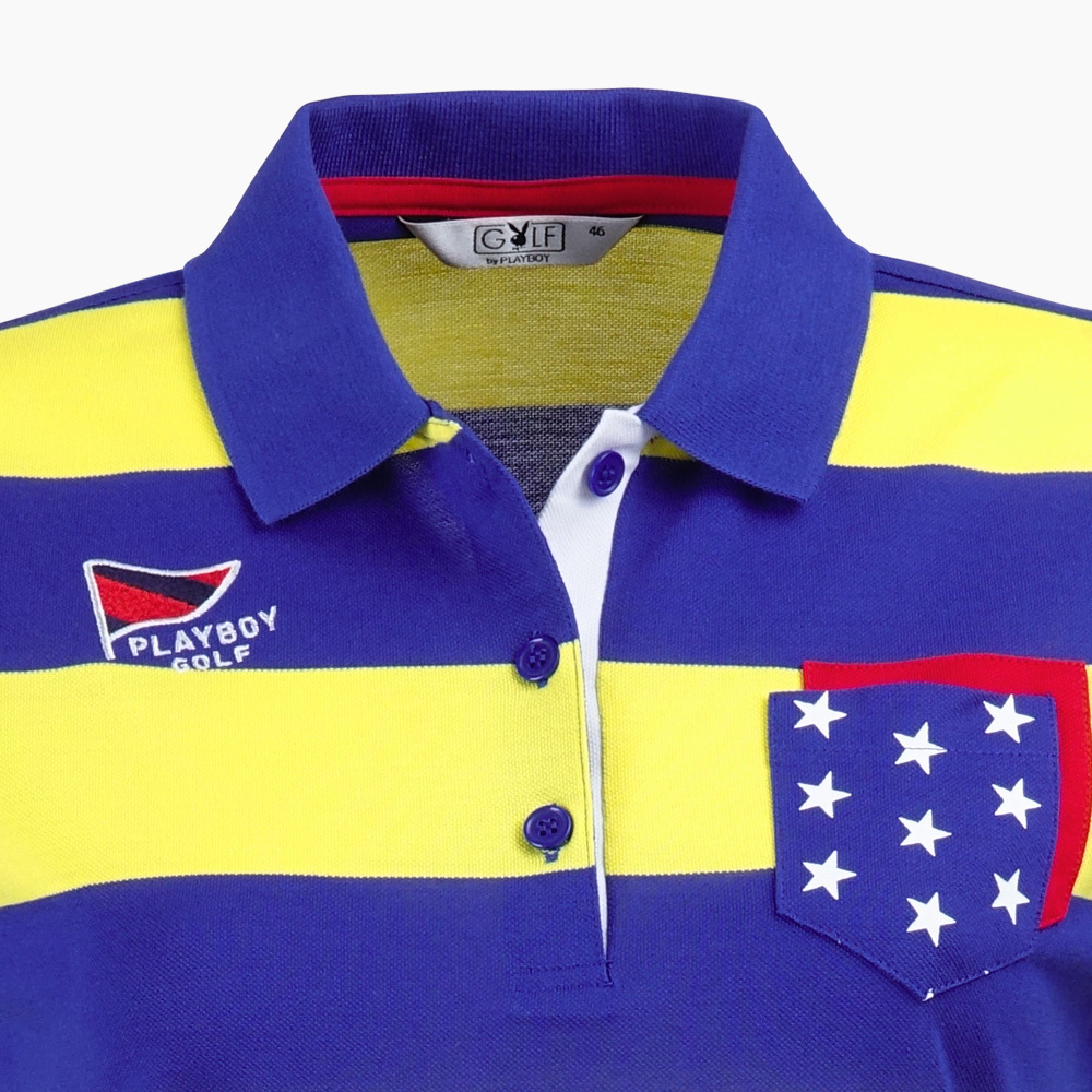 【PLAYBOY GOLF】女款撞色橫條紋高爾夫短袖POLO衫-藍 / KA15112-56