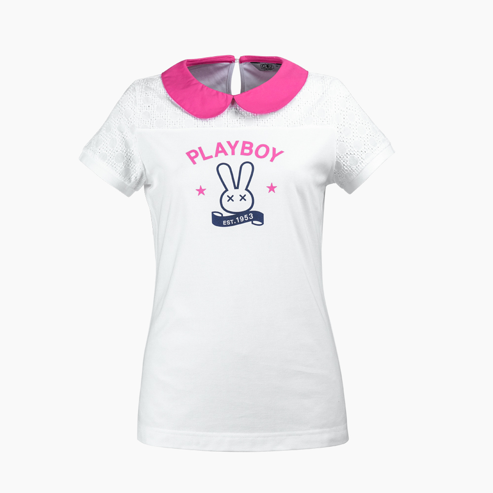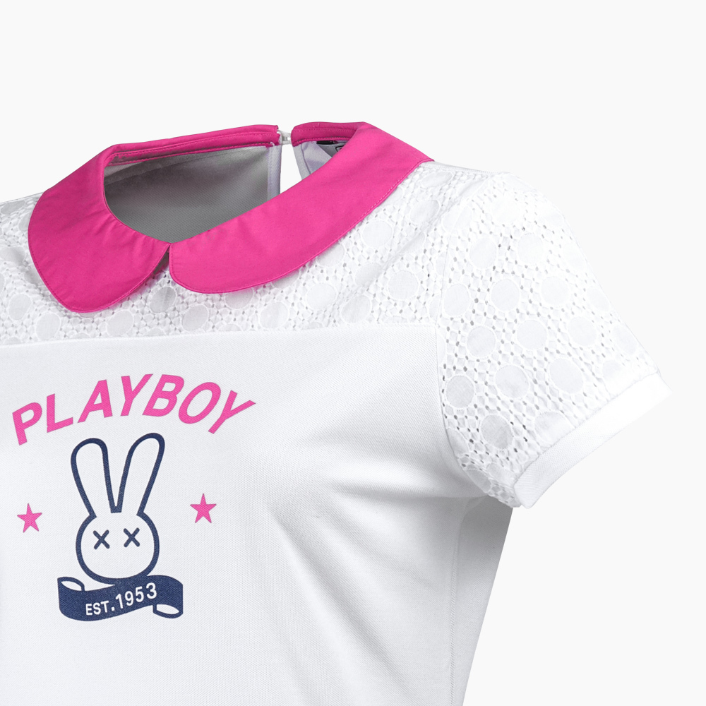 【PLAYBOY GOLF】女款蕾絲拼接高爾夫短袖POLO衫-白 / KA16113-87