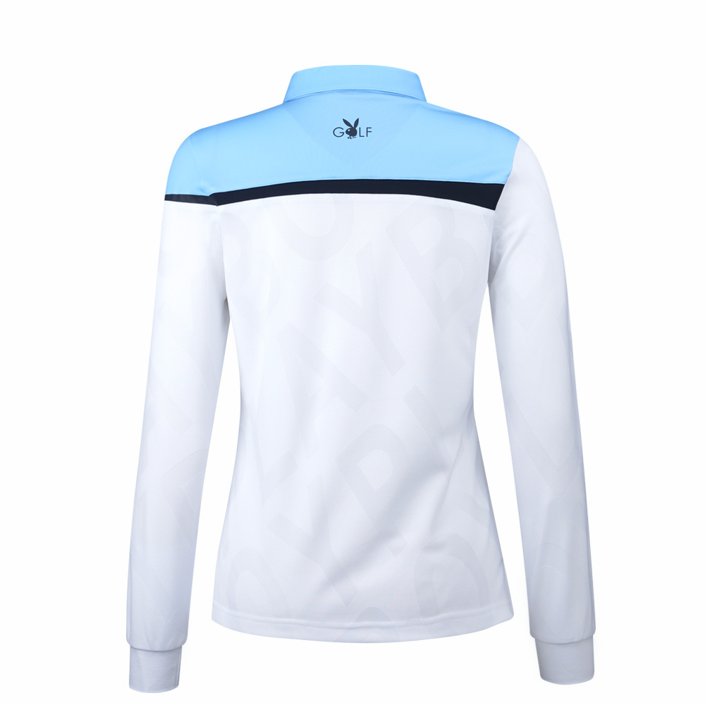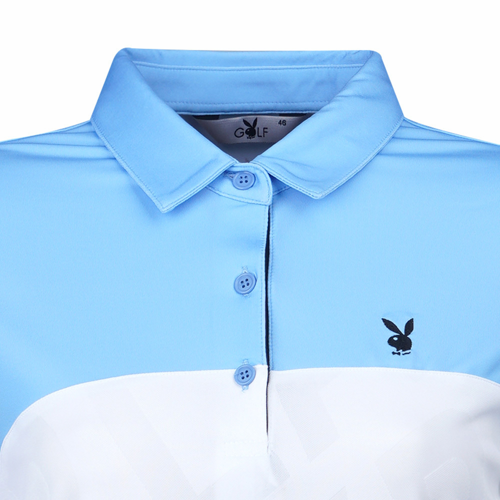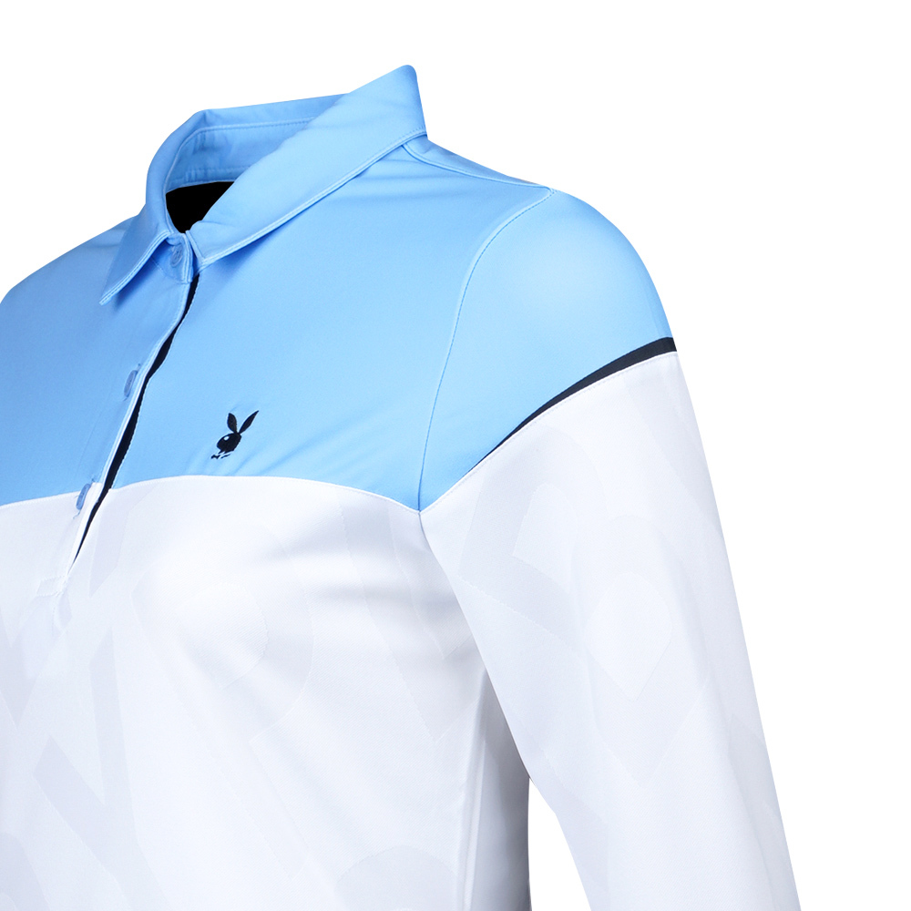 【PLAYBOY GOLF】女款立體織紋剪接薄長袖POLO衫-水藍 / KA21201-55