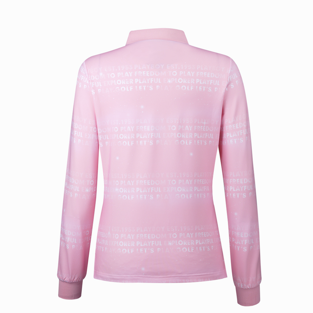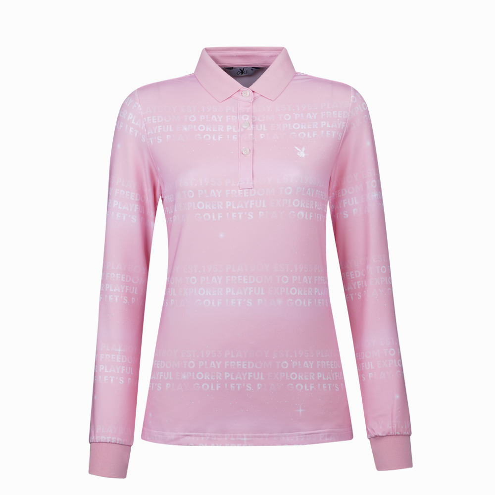 【PLAYBOY GOLF】女款字母印花長袖POLO衫-粉紅 / KA21203-15