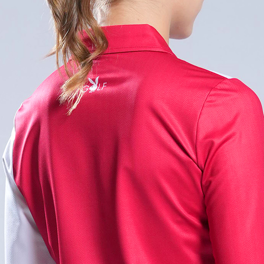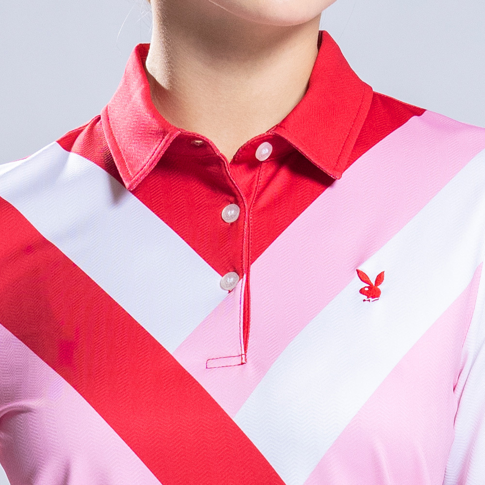 【PLAYBOY GOLF】女款V型配色薄長袖POLO衫-紅 / KA22201-18