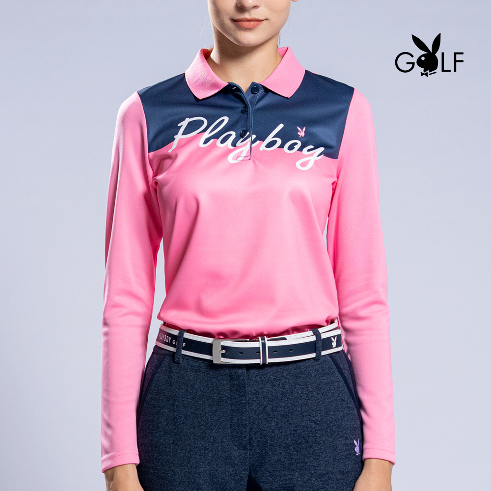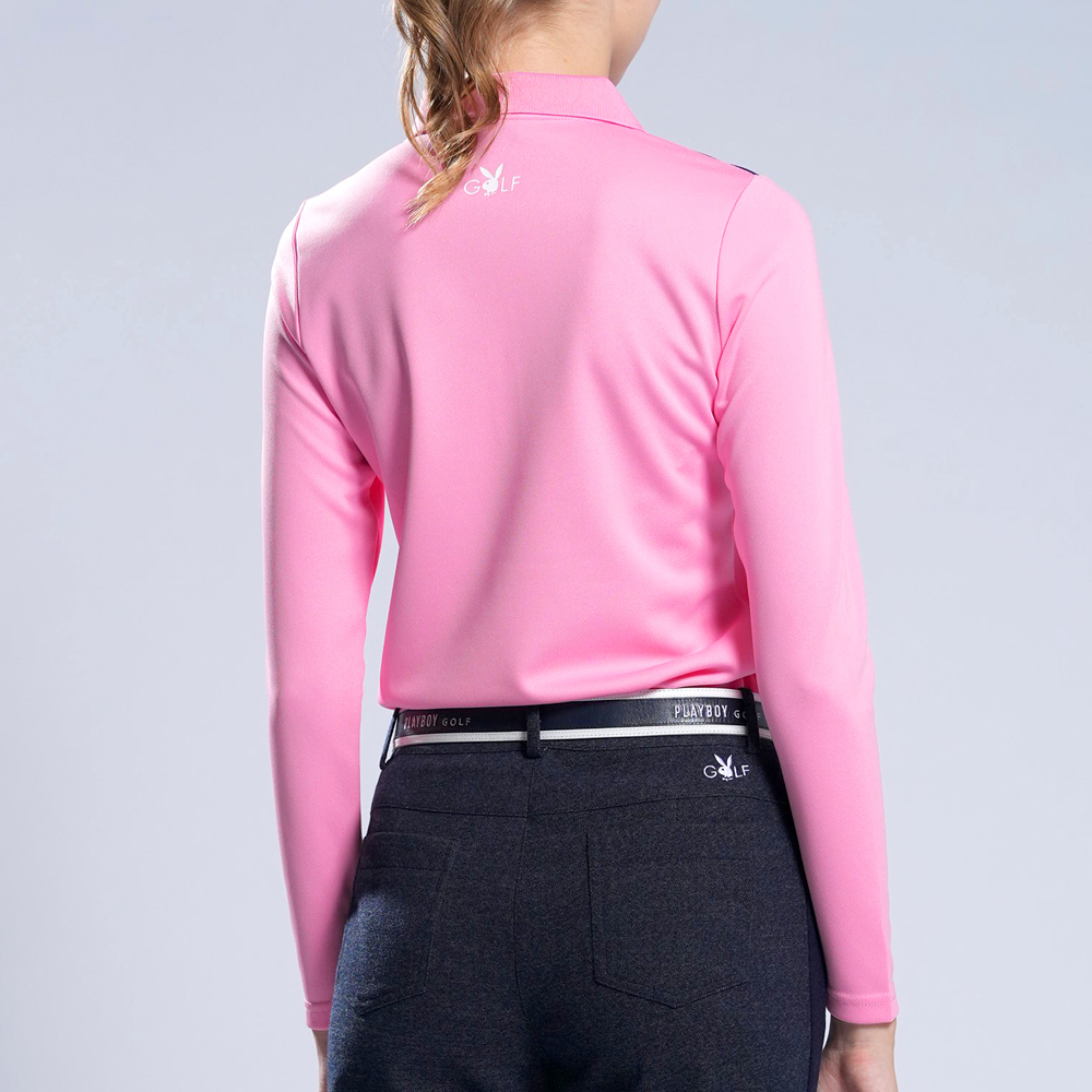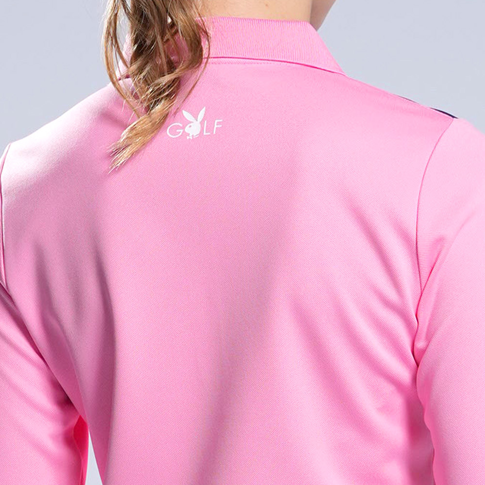 【PLAYBOY GOLF】女款LOGO休閒薄長袖POLO衫-粉紅 / KA22202-15