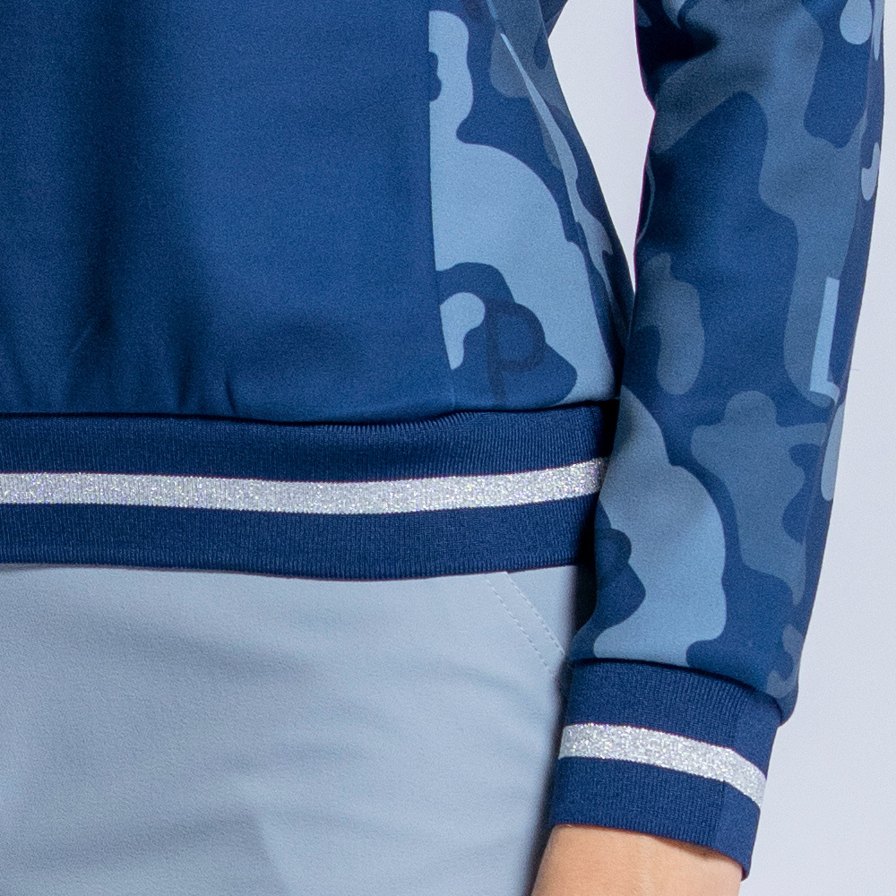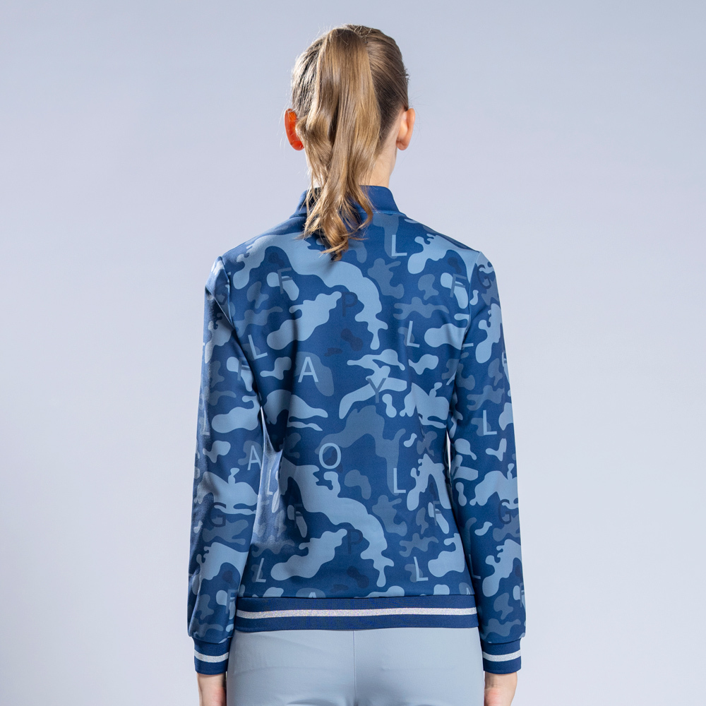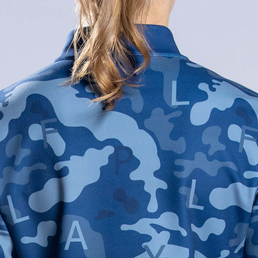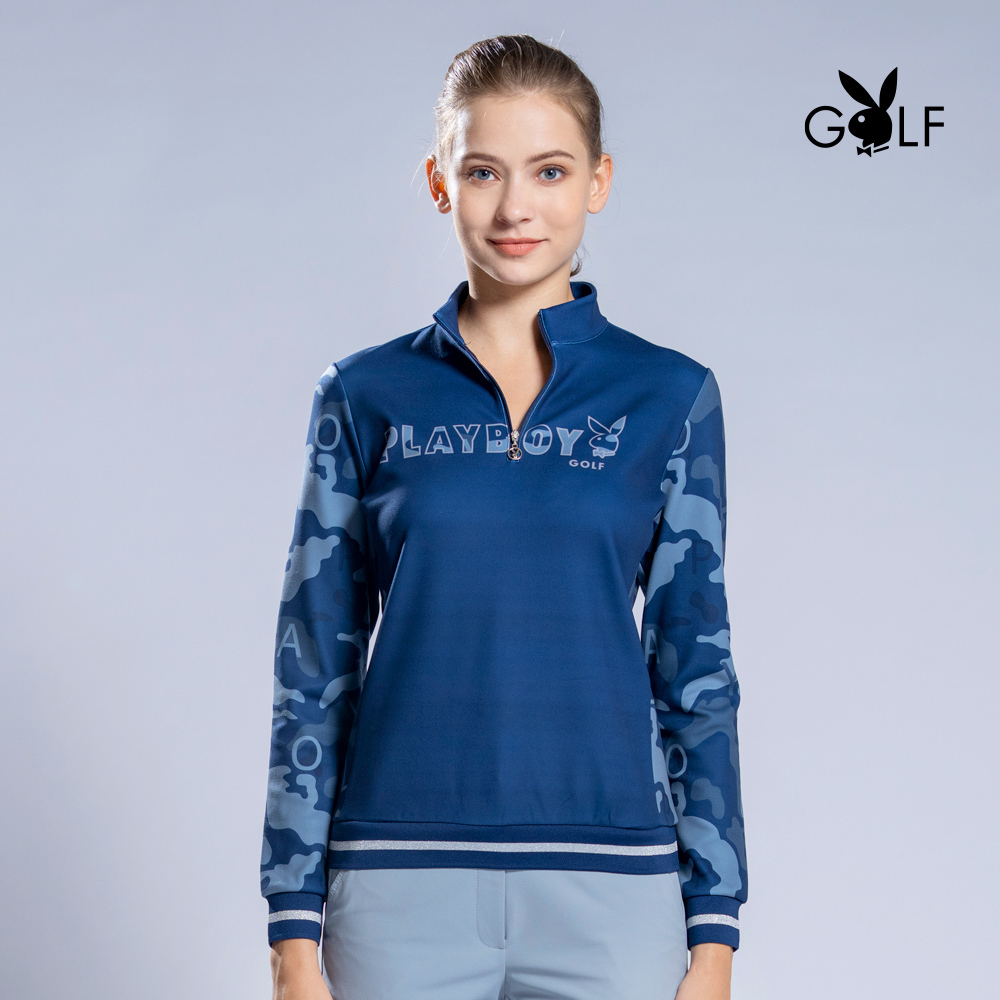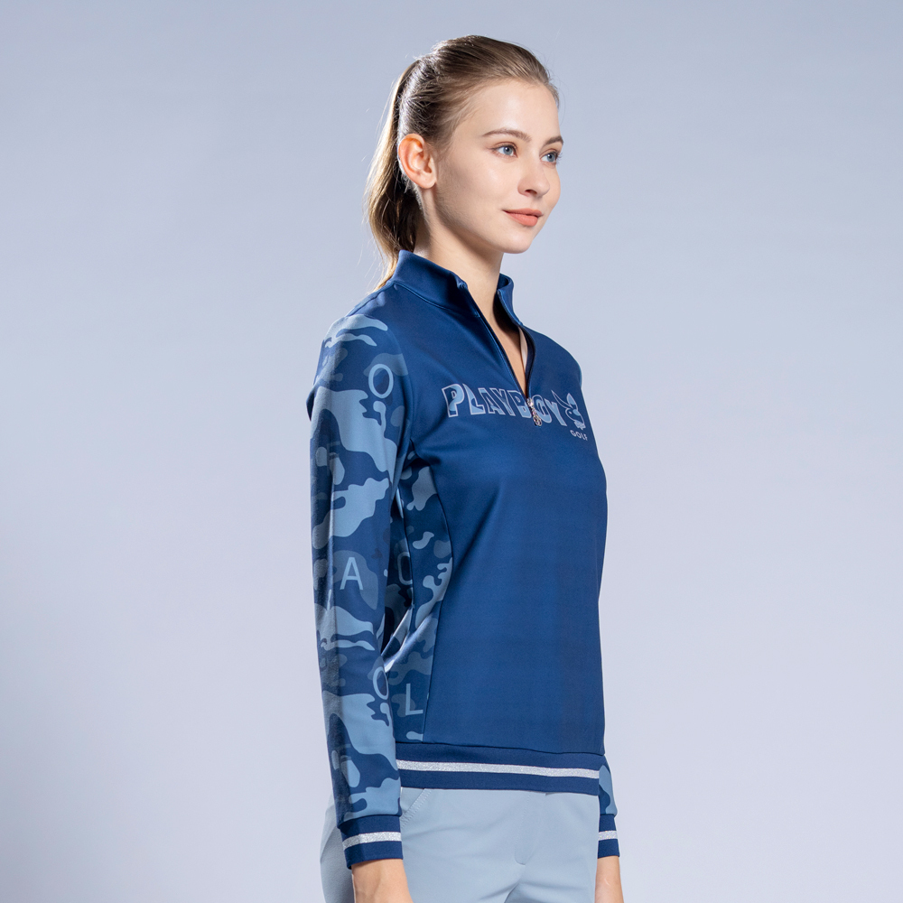 【PLAYBOY GOLF】女款迷彩剪接磨毛立領長袖POLO衫-深藍 / KA22223-58