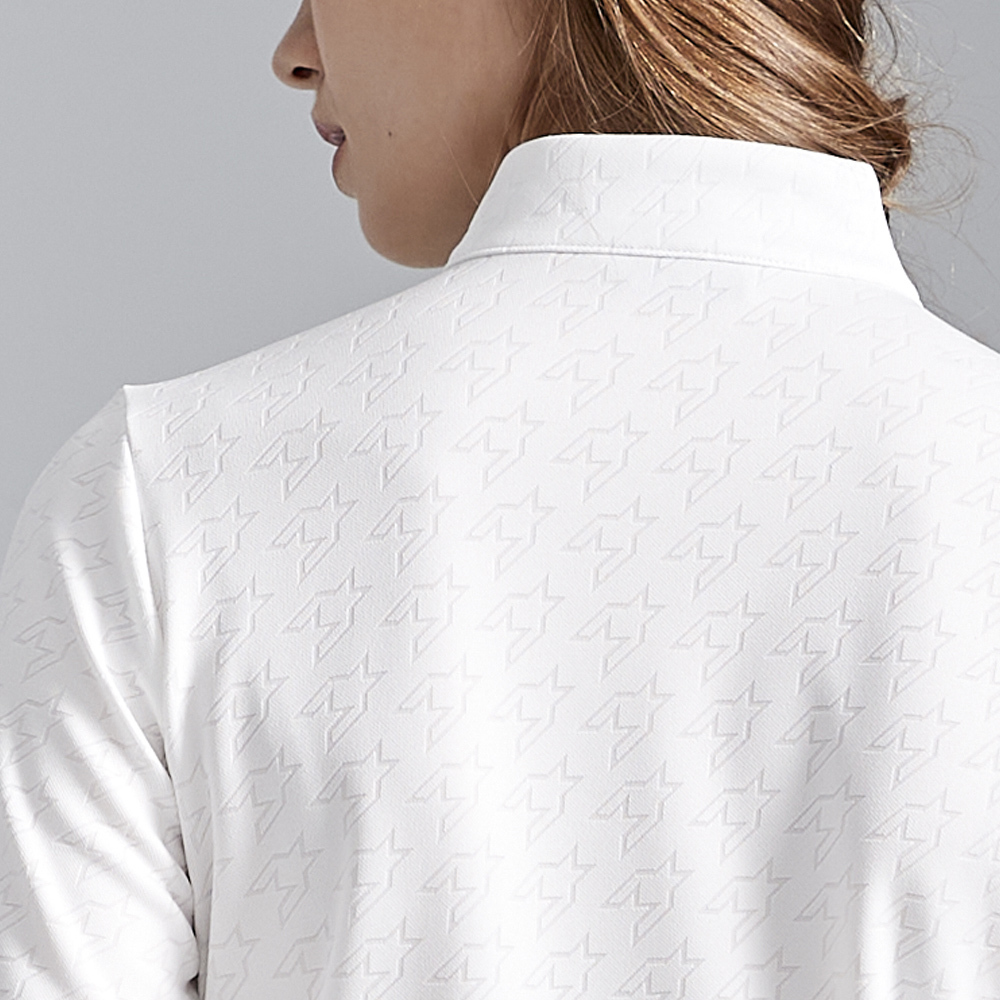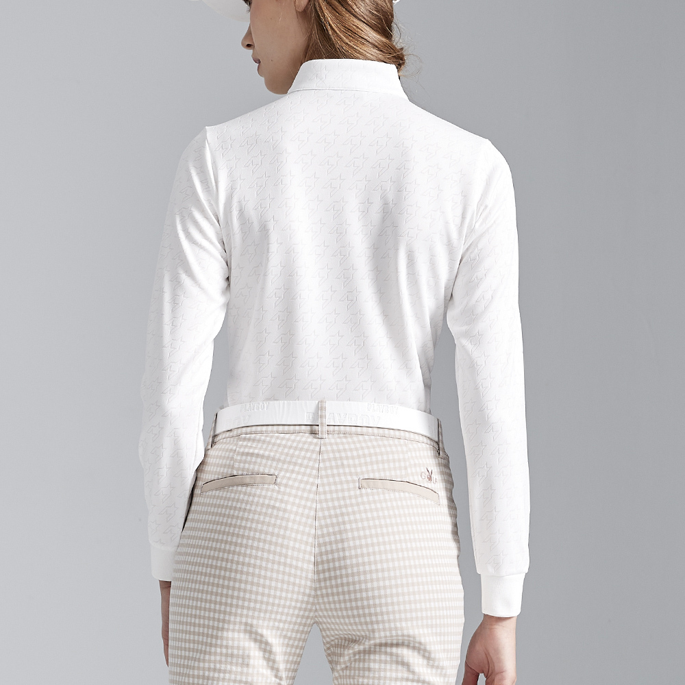【PLAYBOY GOLF】女款千鳥雙面緹花吸濕排汗立領薄長袖POLO衫-白 / KA23205-73
