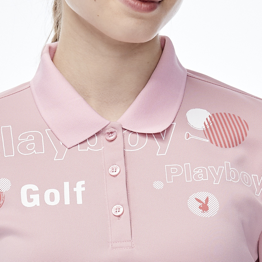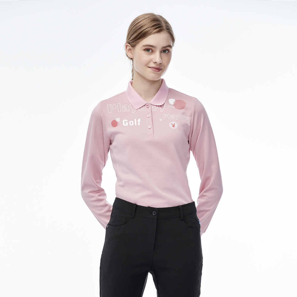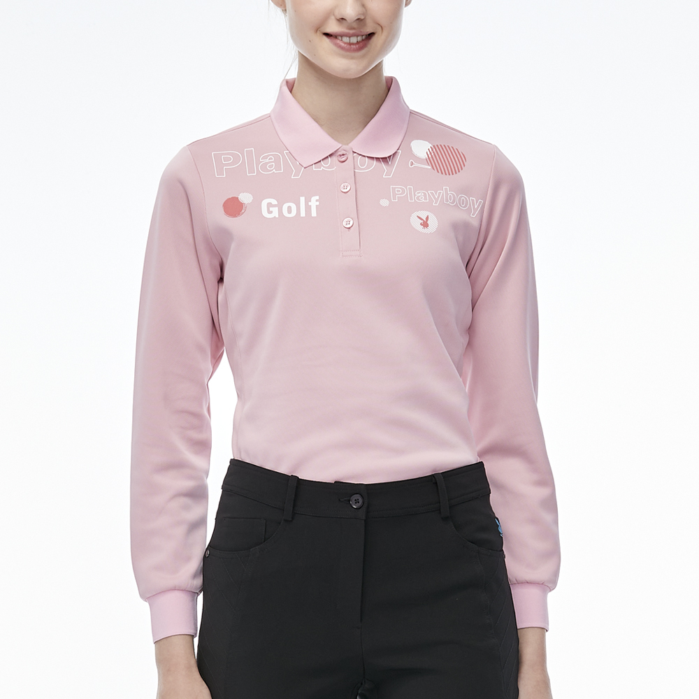【PLAYBOY GOLF】女款球T標語圖騰吸濕排汗薄長袖POLO衫-橘 / KA23206-25