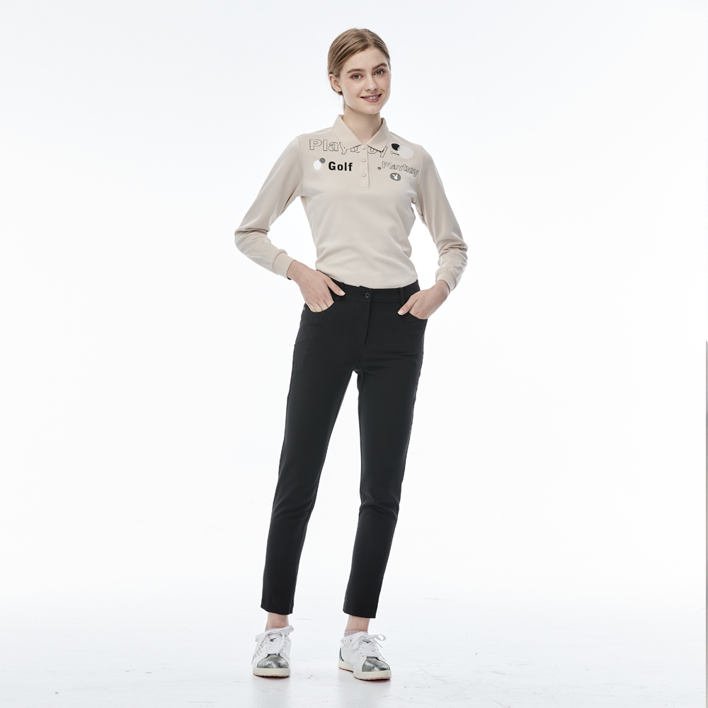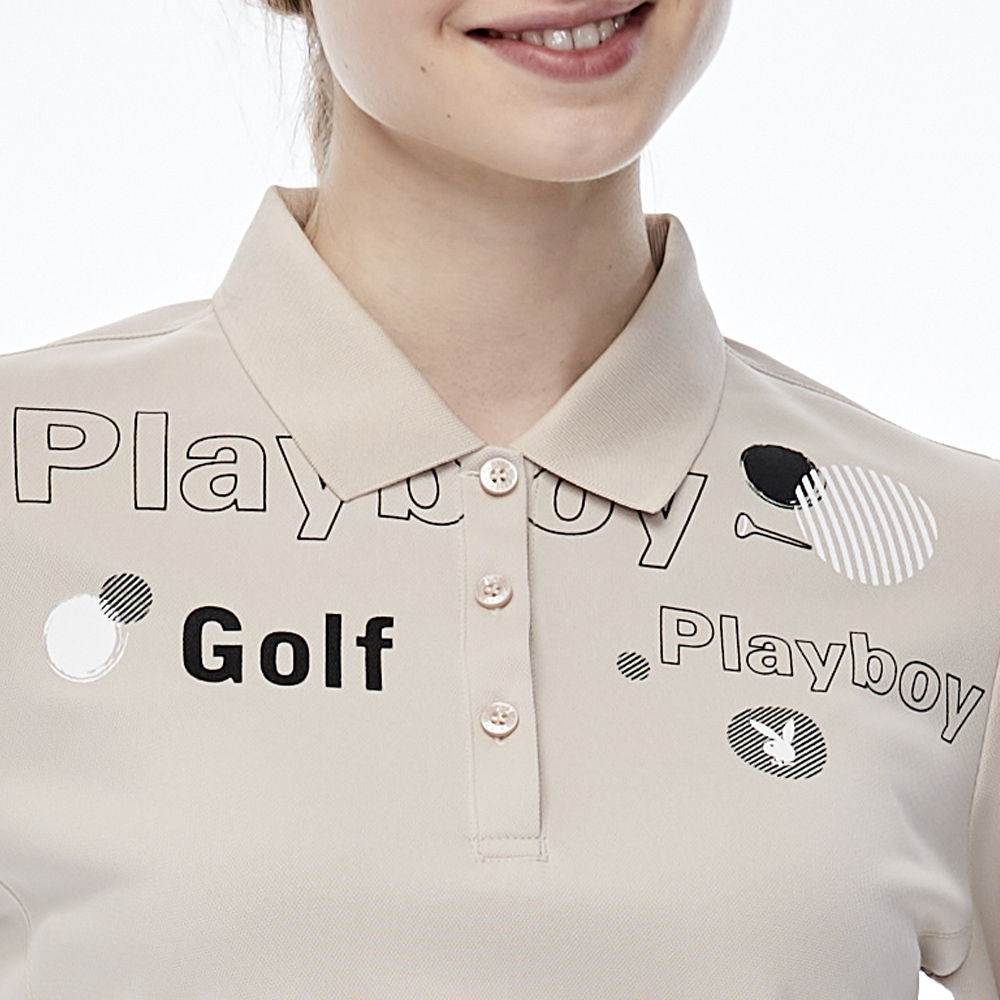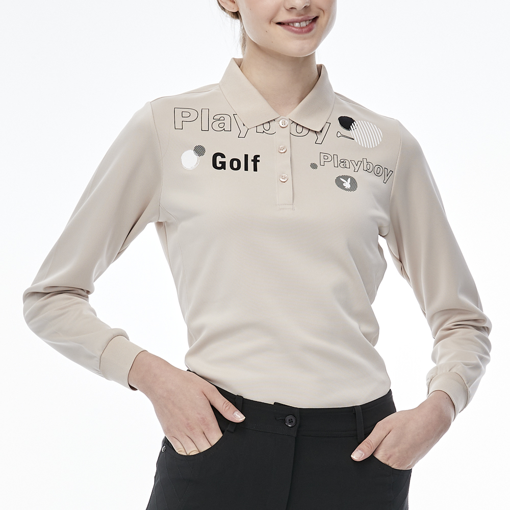 【PLAYBOY GOLF】女款球T標語圖騰吸濕排汗薄長袖POLO衫-卡其 / KA23206-75