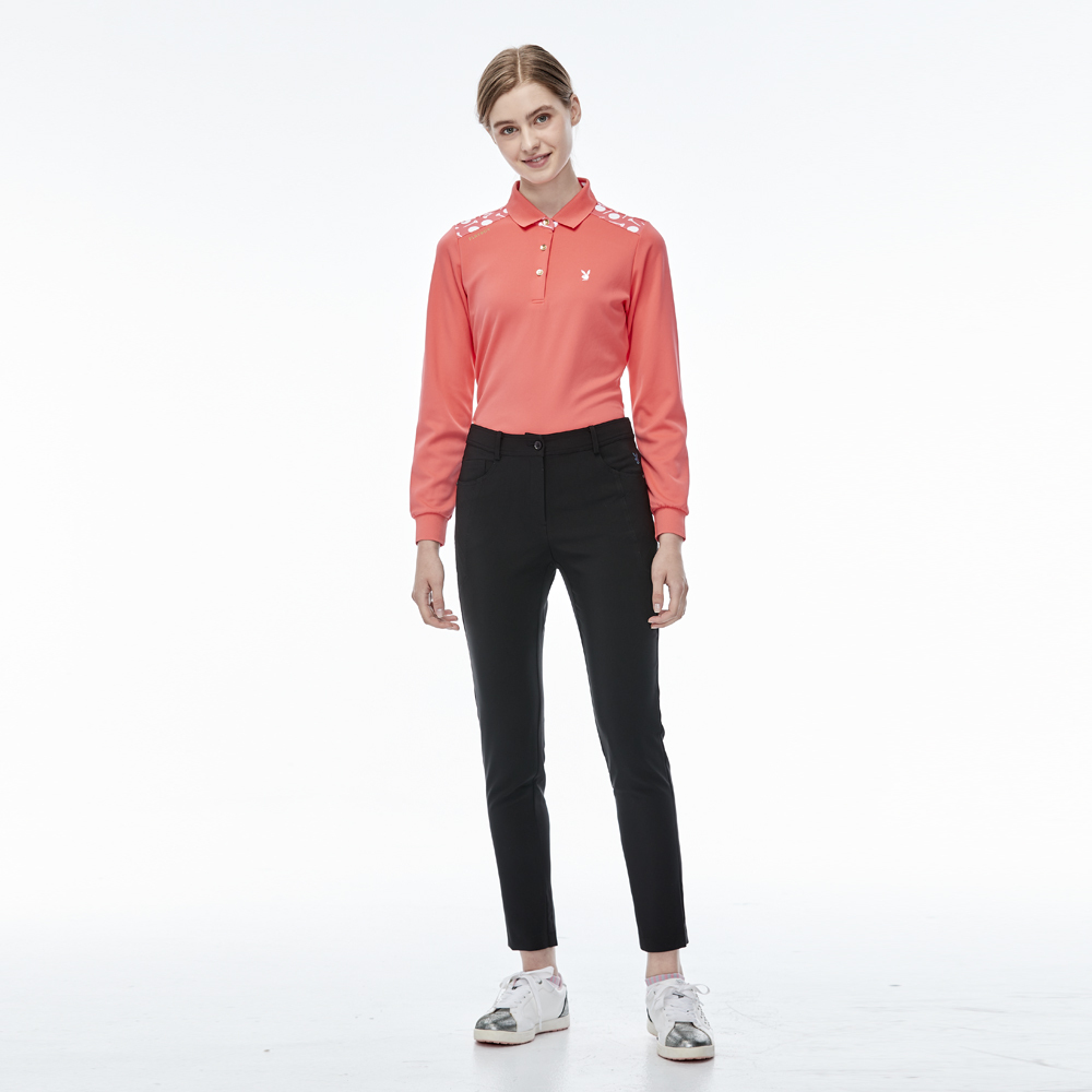 【PLAYBOY GOLF】女款肩線剪接吸濕排汗薄長袖POLO衫-粉紅 / KA23207-15