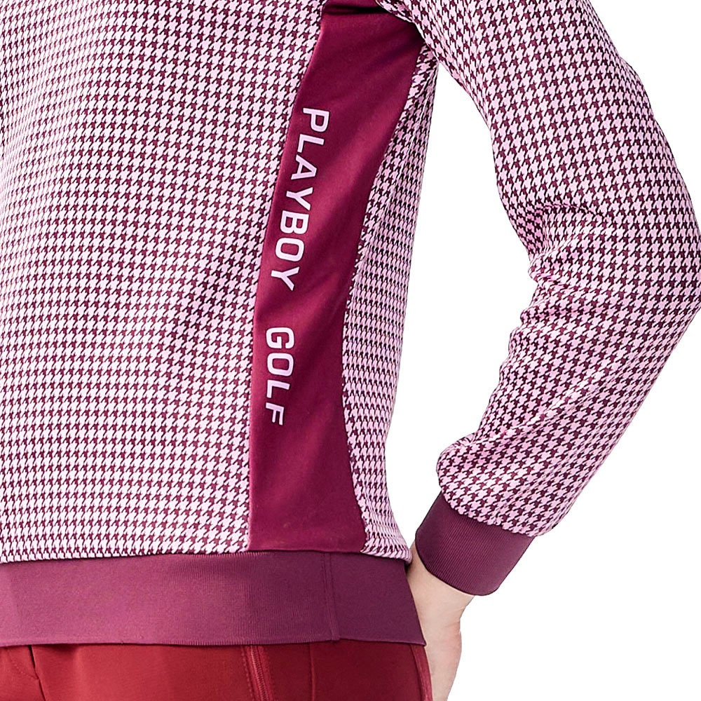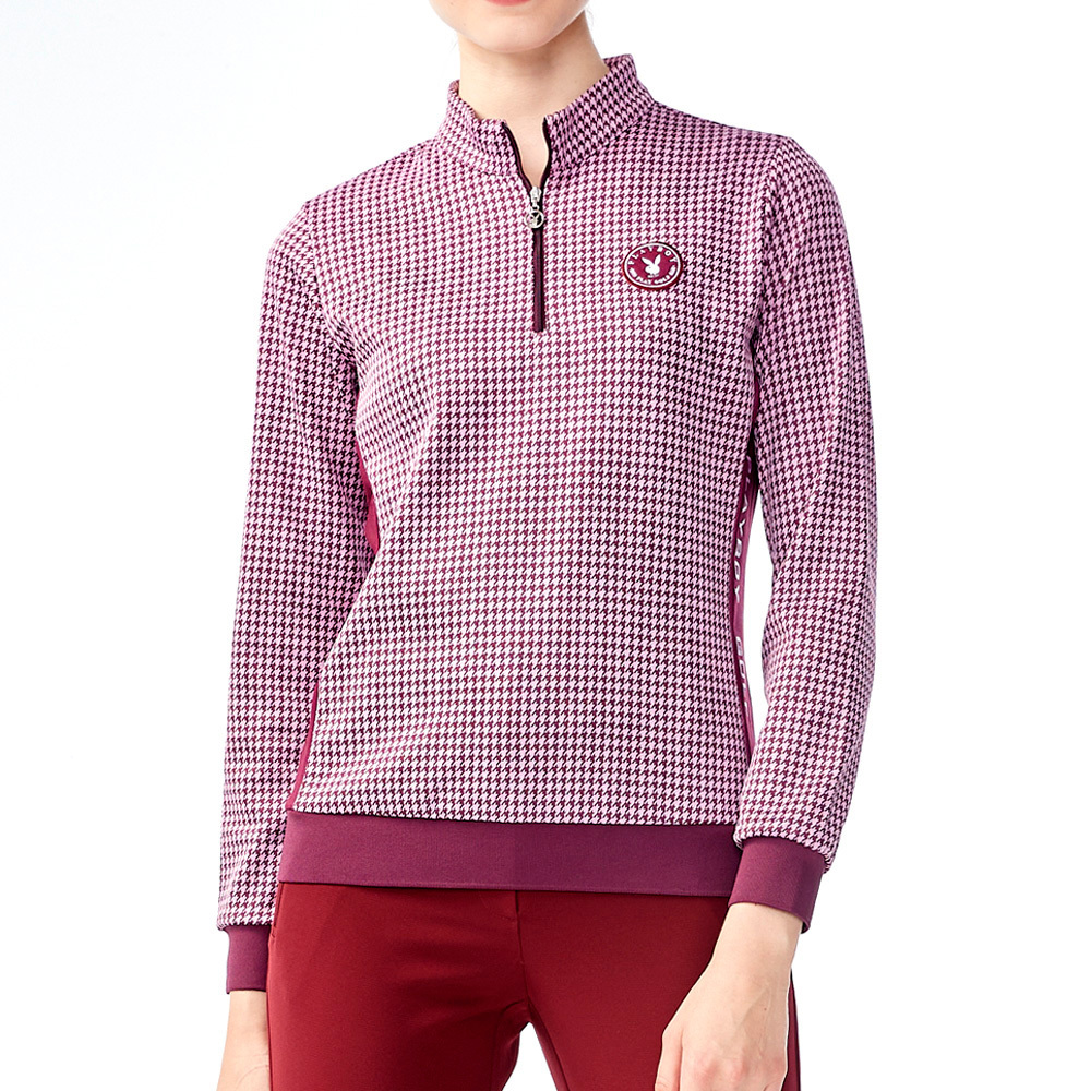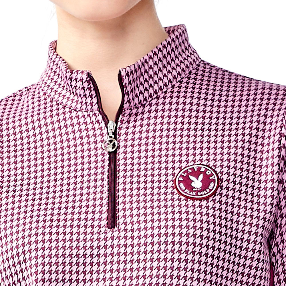 【PLAYBOY GOLF】女款小千鳥緹織束下襬抗UV立領長袖POLO衫-紅 / KA23220-19
