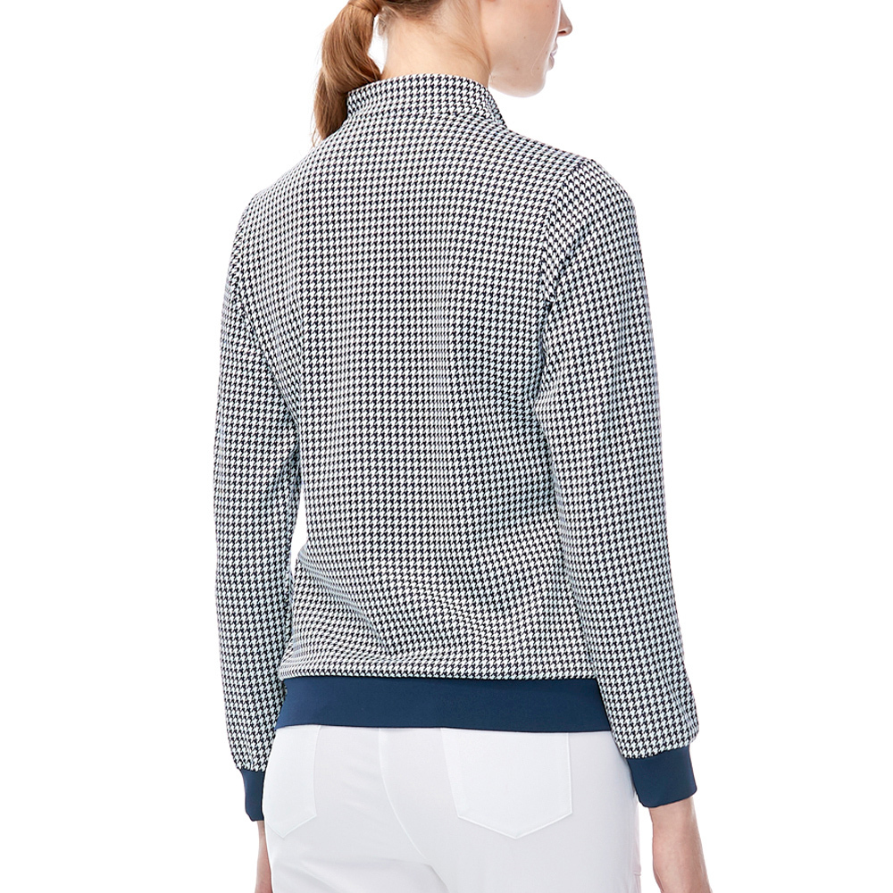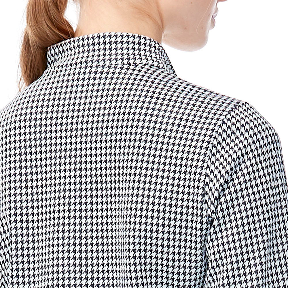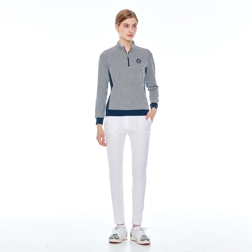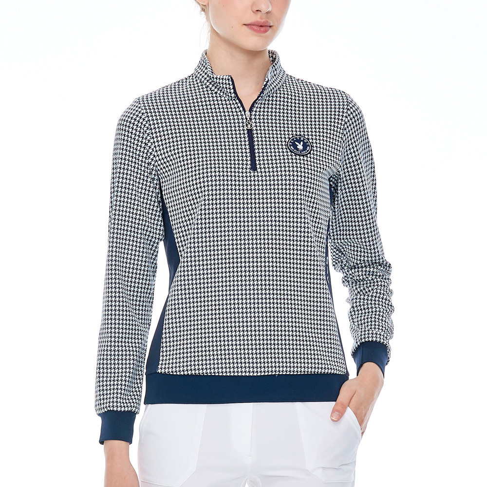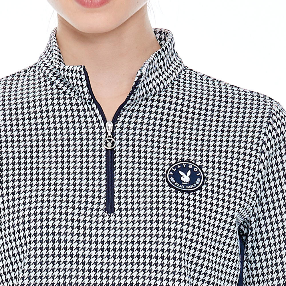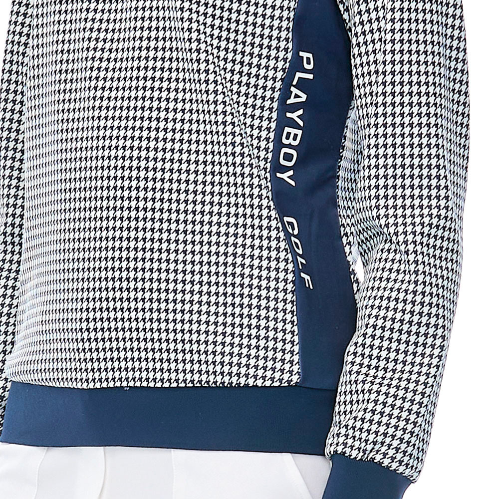 【PLAYBOY GOLF】女款小千鳥緹織束下襬抗UV立領長袖POLO衫-深藍 / KA23220-58