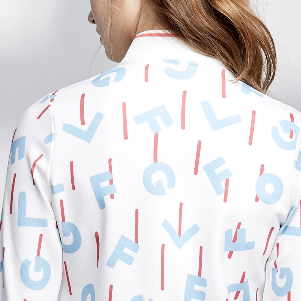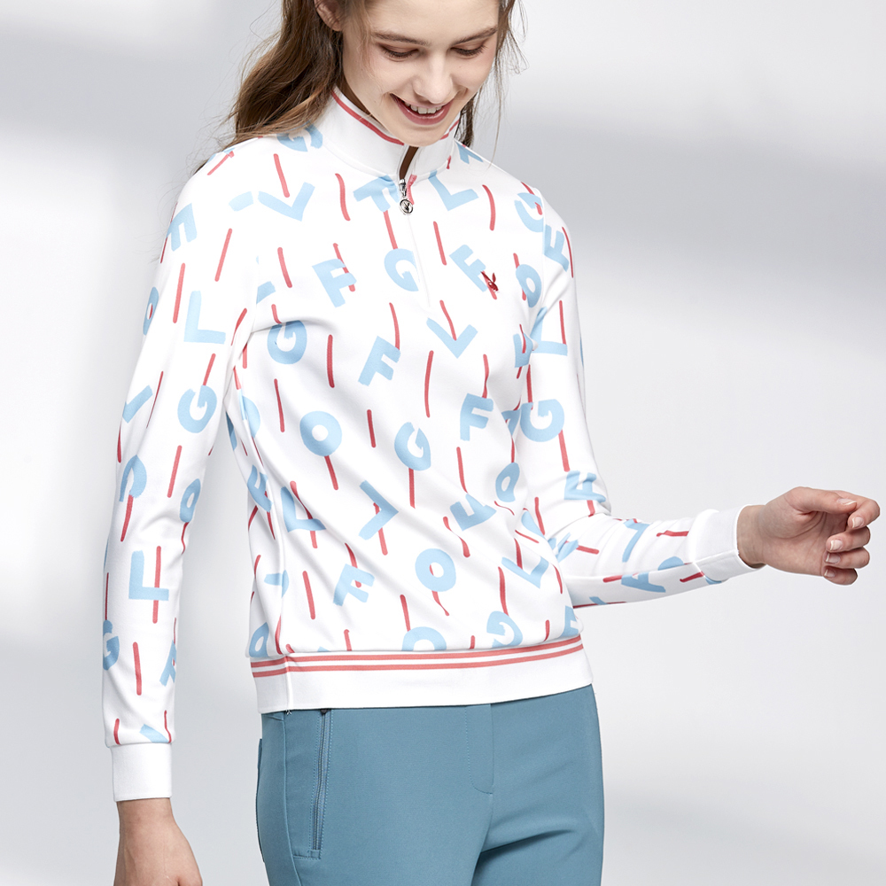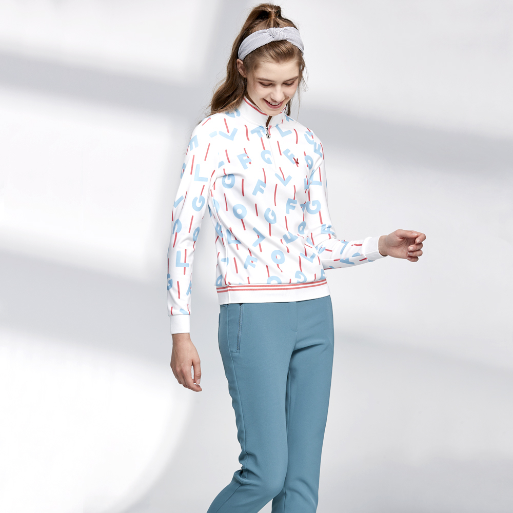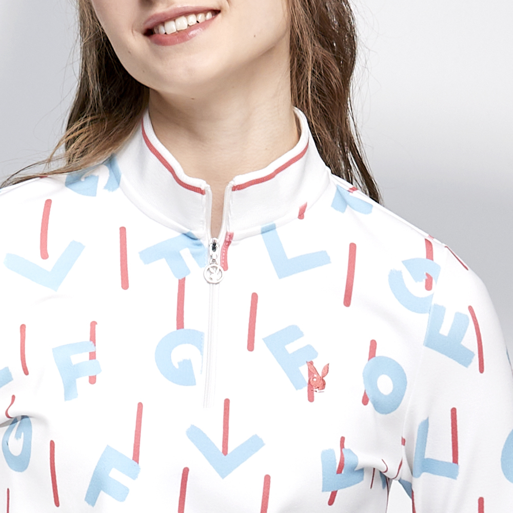 【PLAYBOY GOLF】女款字母束下襬立領長袖POLO衫-白 / KA23222-87