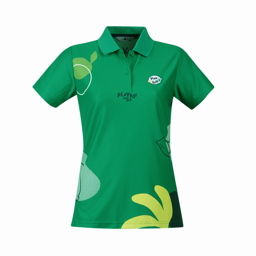 【PLAYBOY GOLF】女款水果印花高爾夫短袖POLO衫-綠 / KA24105-45