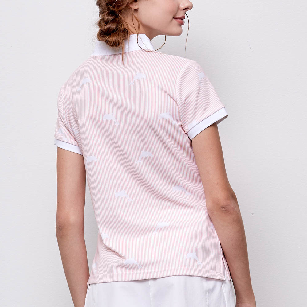 【PLAYBOY GOLF】女款海豚線條吸濕排汗抗UV短袖POLO衫-橘 / KA24111-25