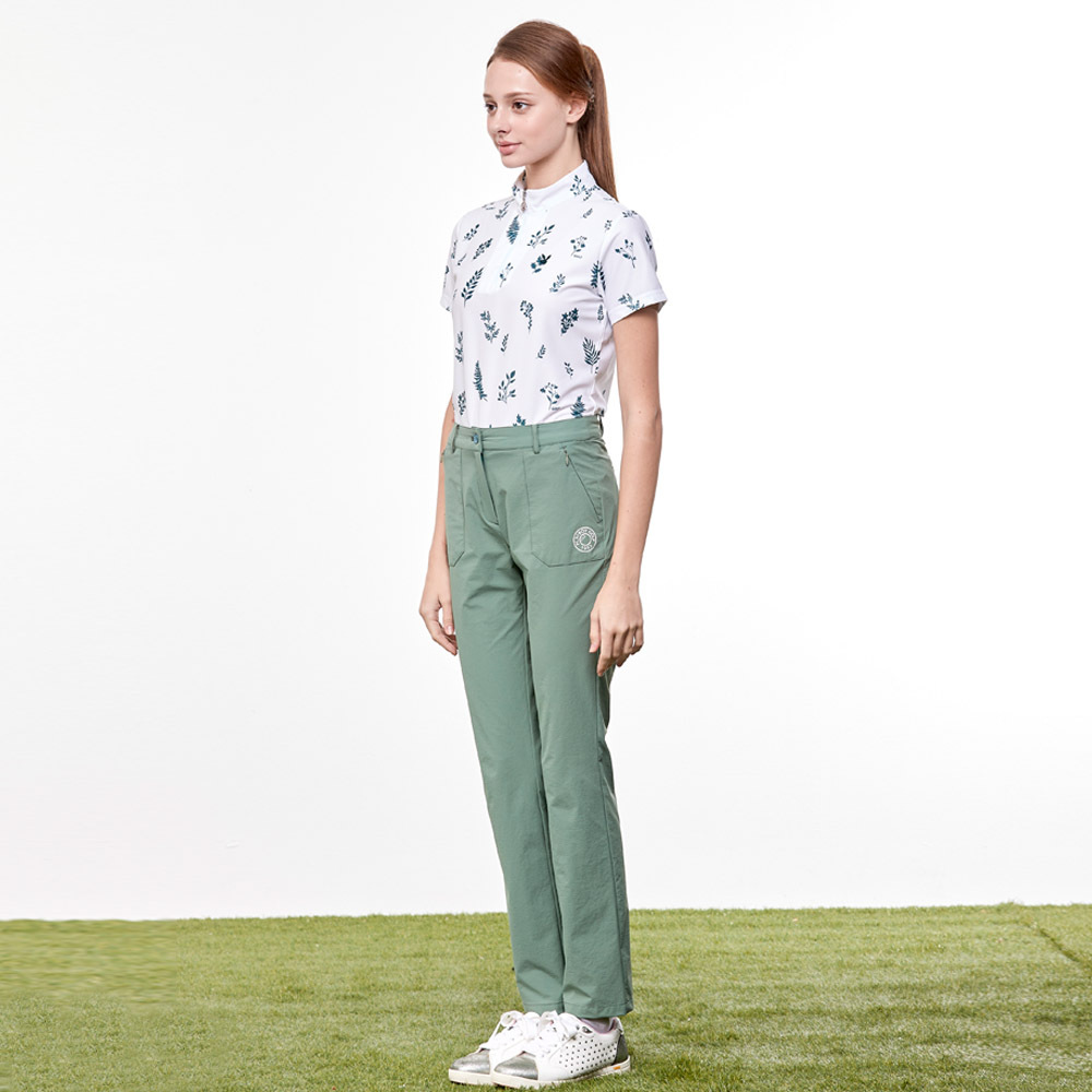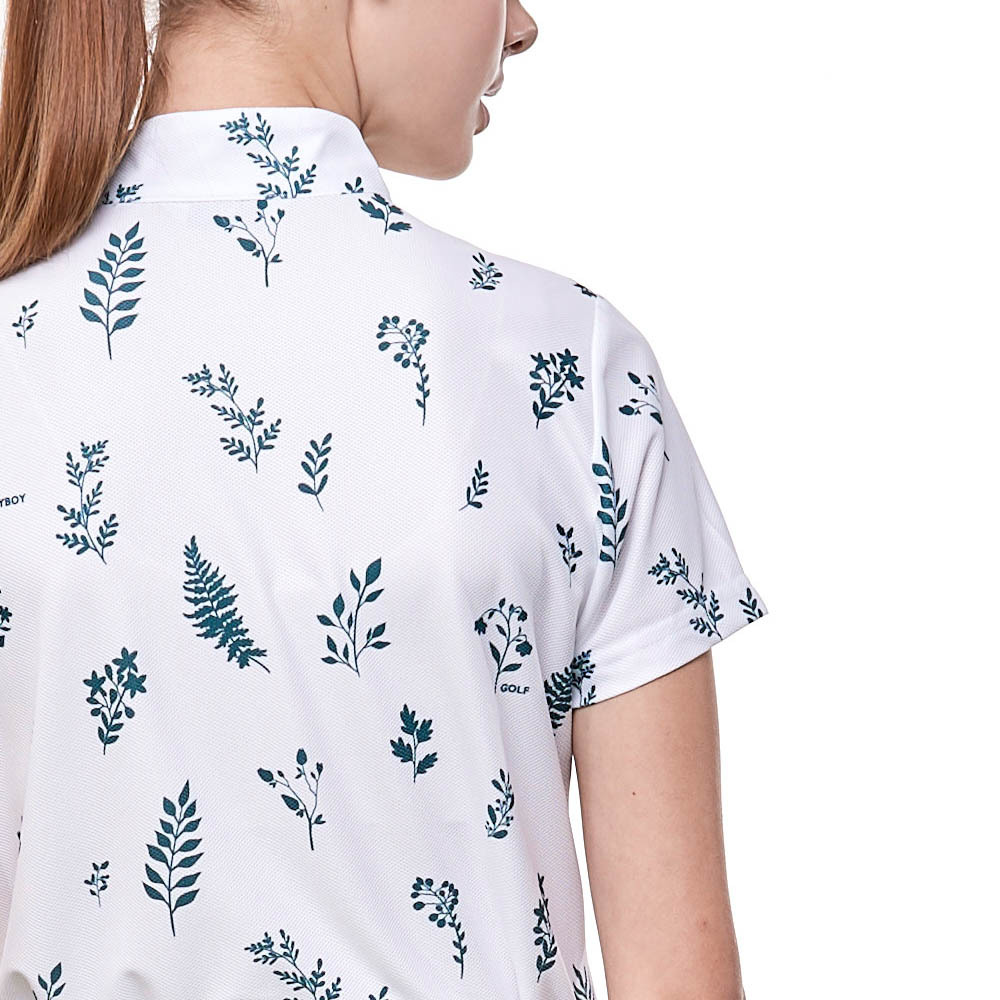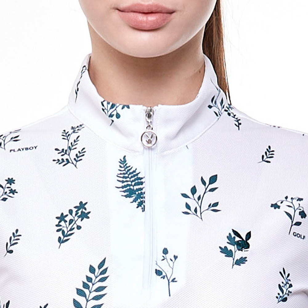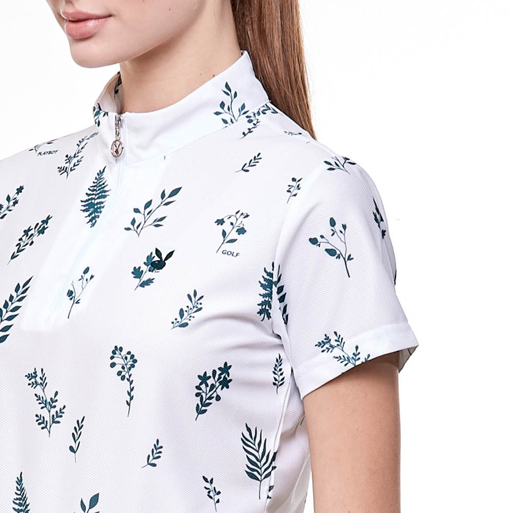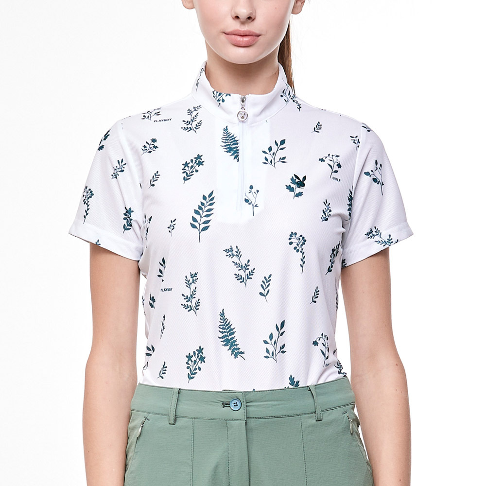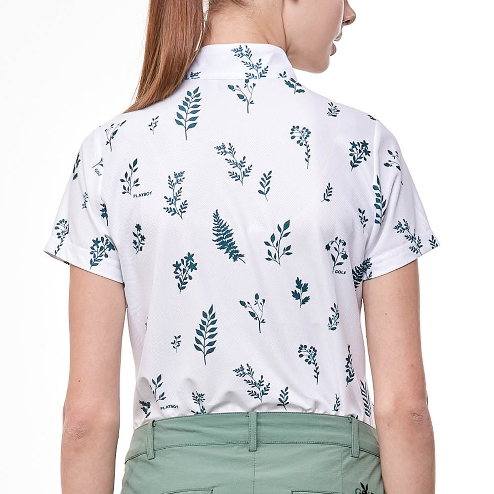 【PLAYBOY GOLF】女款葉紋印花吸濕排汗抗UV立領短袖上衣-白 / KA24112-87