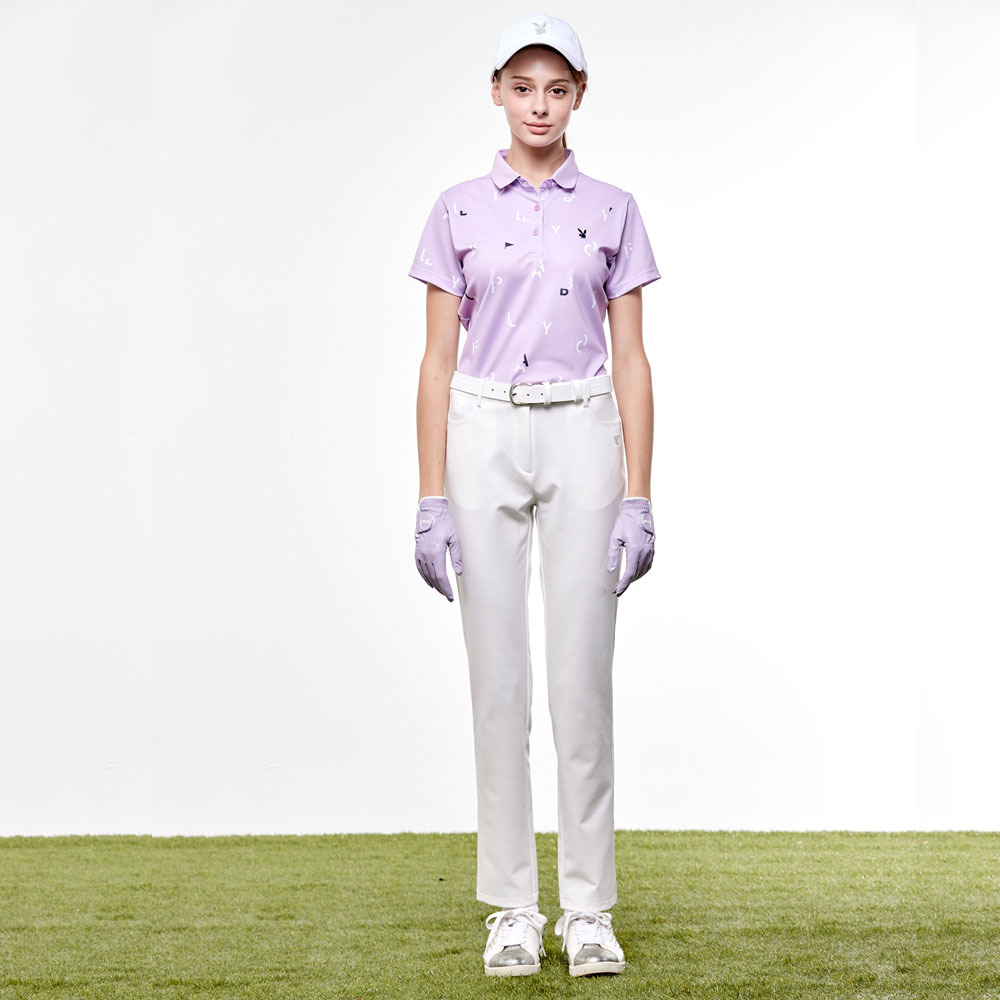 【PLAYBOY GOLF】女款字母吸濕排汗抗UV高爾夫短袖POLO衫-淺紫 / KA24119-63