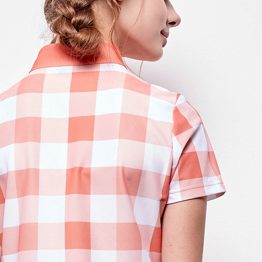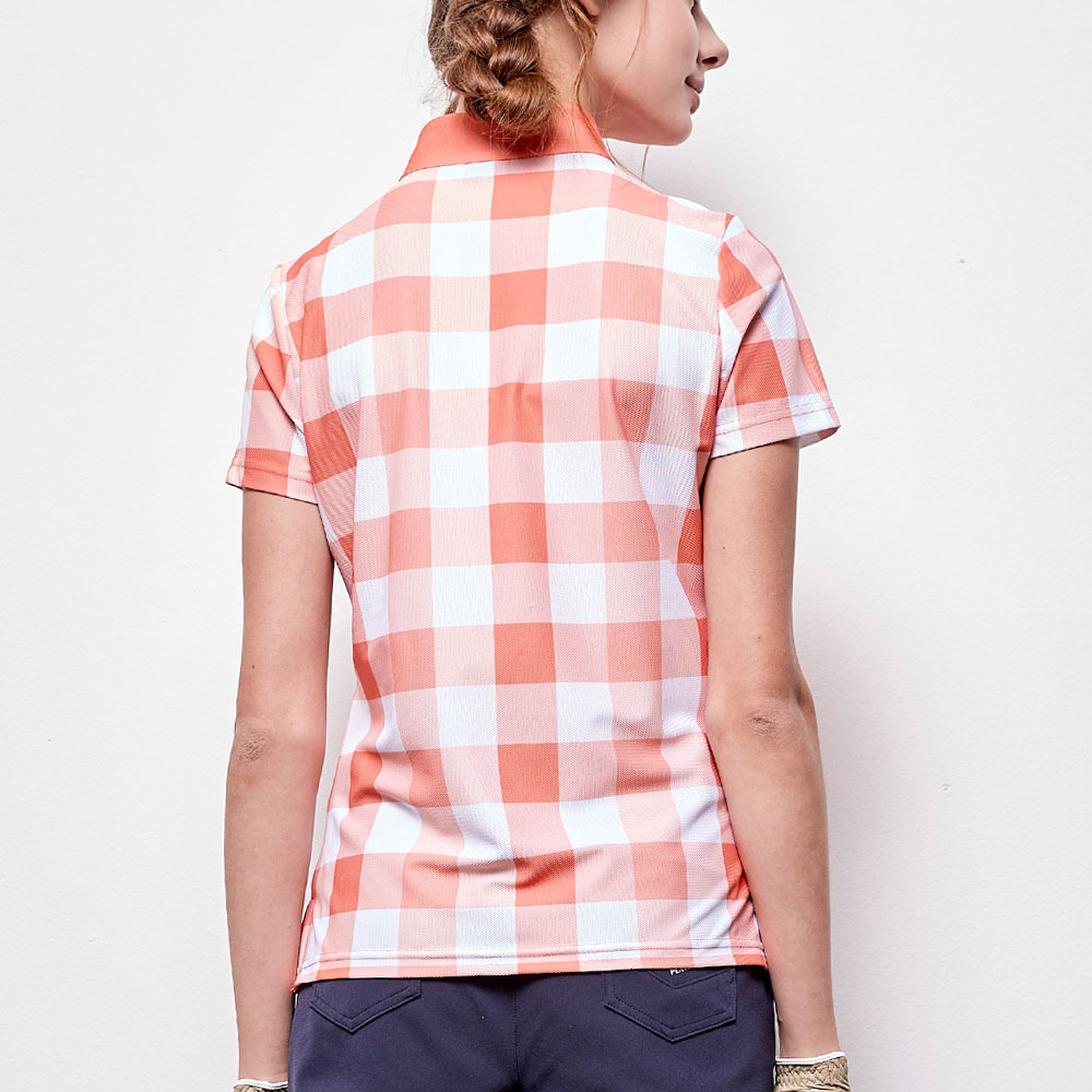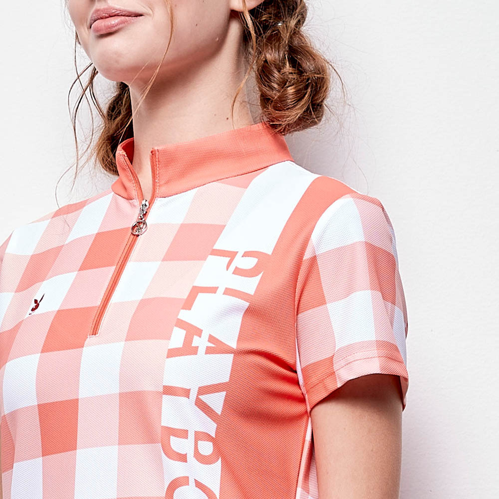 【PLAYBOY GOLF】女款方格吸濕排汗高爾夫立領短袖上衣-橘 / KA24123-28
