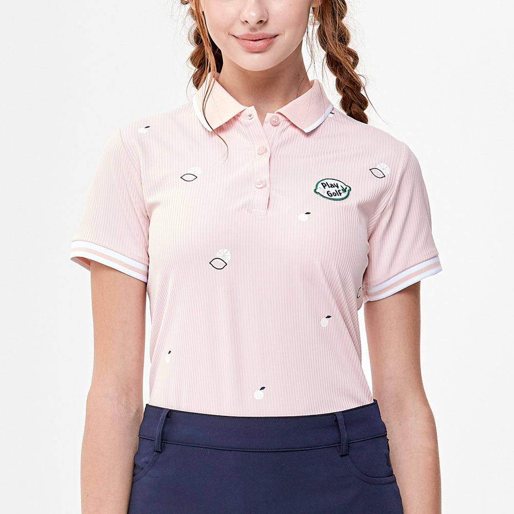 【PLAYBOY GOLF】女款清新檸檬印花短袖POLO衫-粉橘 / KA24128-23