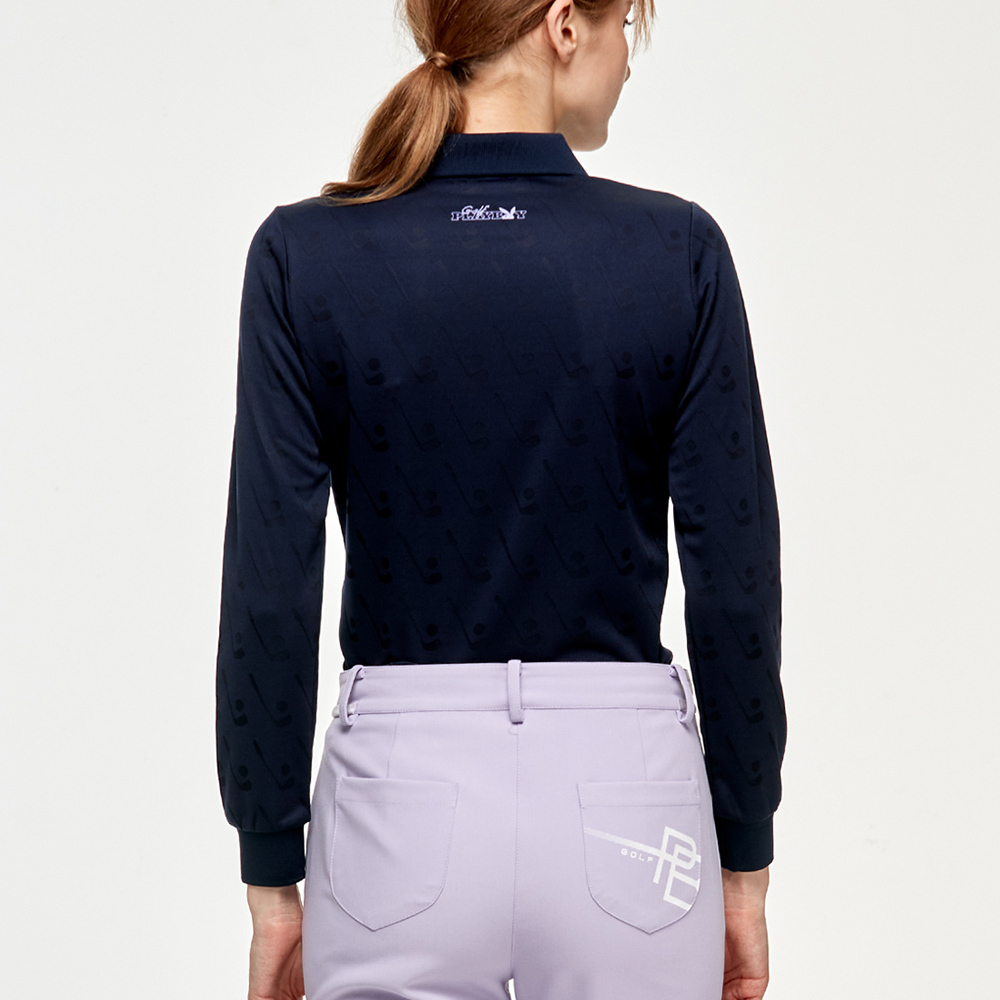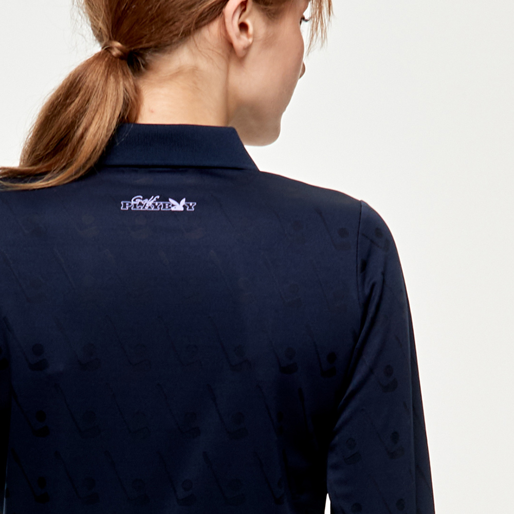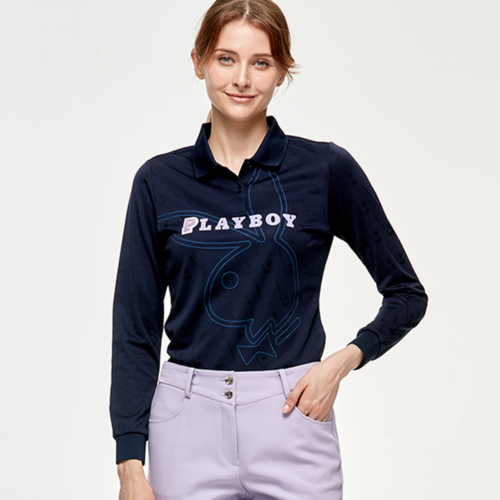 【PLAYBOY GOLF】女款大兔頭印花高爾夫長袖POLO衫-深藍 / KA24202-58