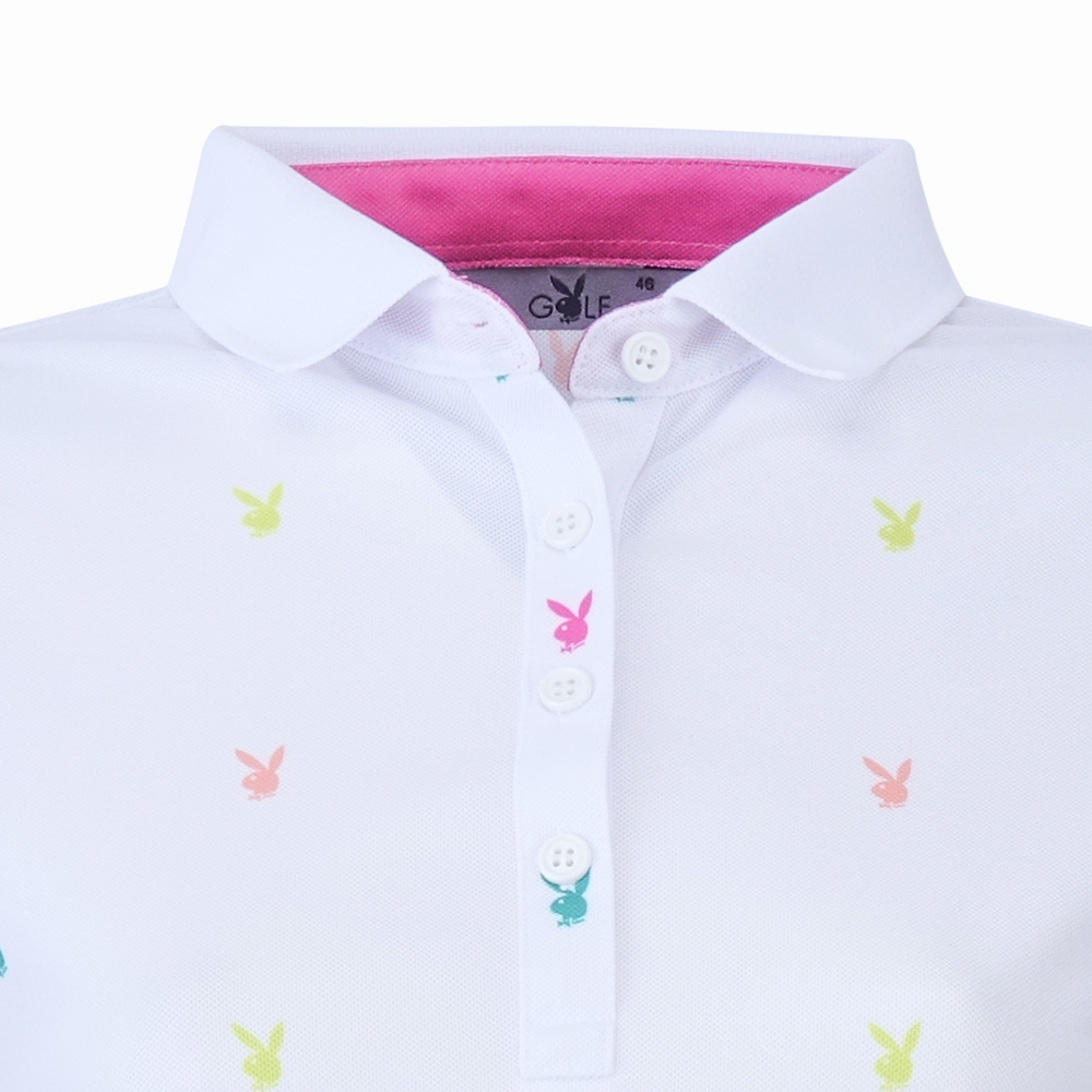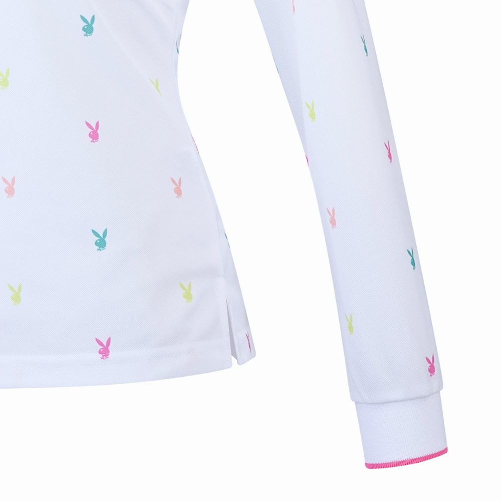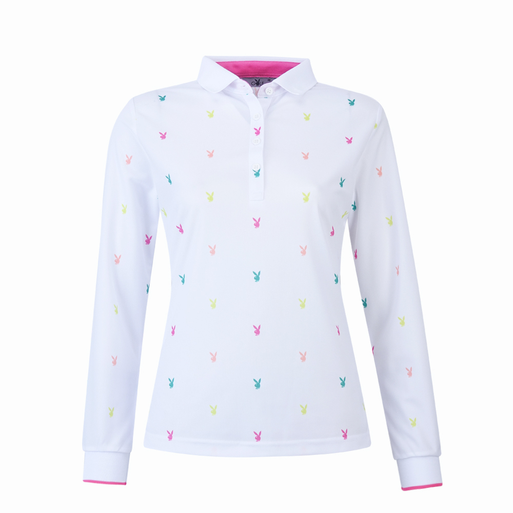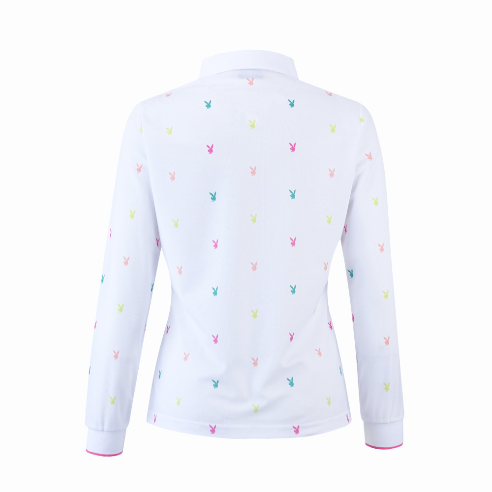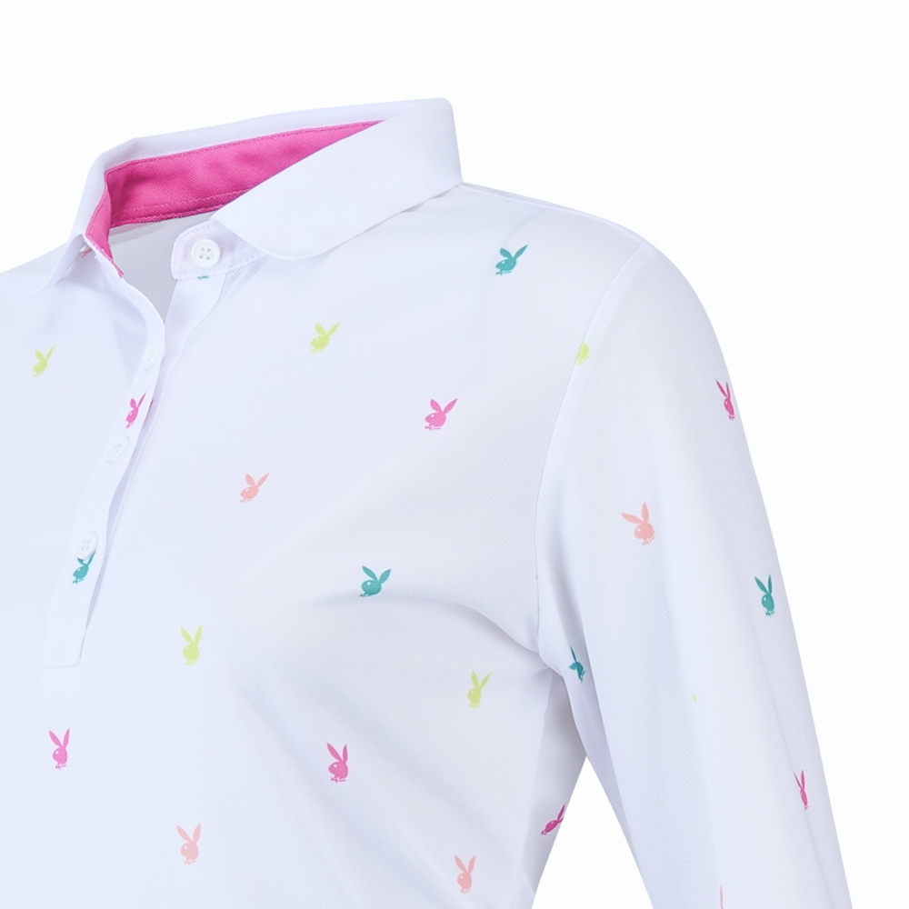 【PLAYBOY GOLF】女款跳色兔頭高爾夫薄長袖POLO衫-白 / KA24207-87