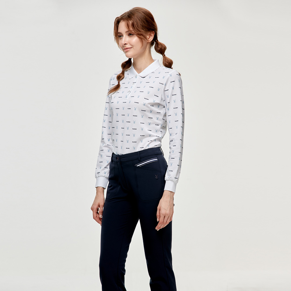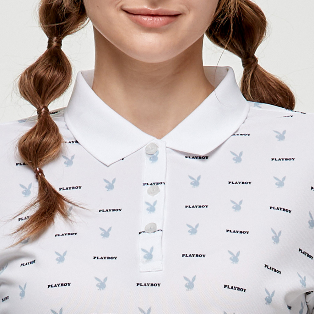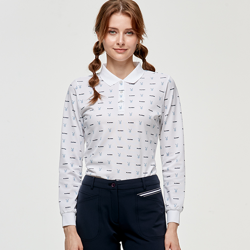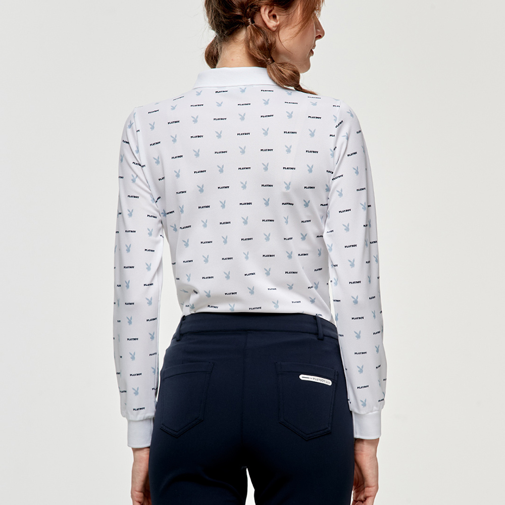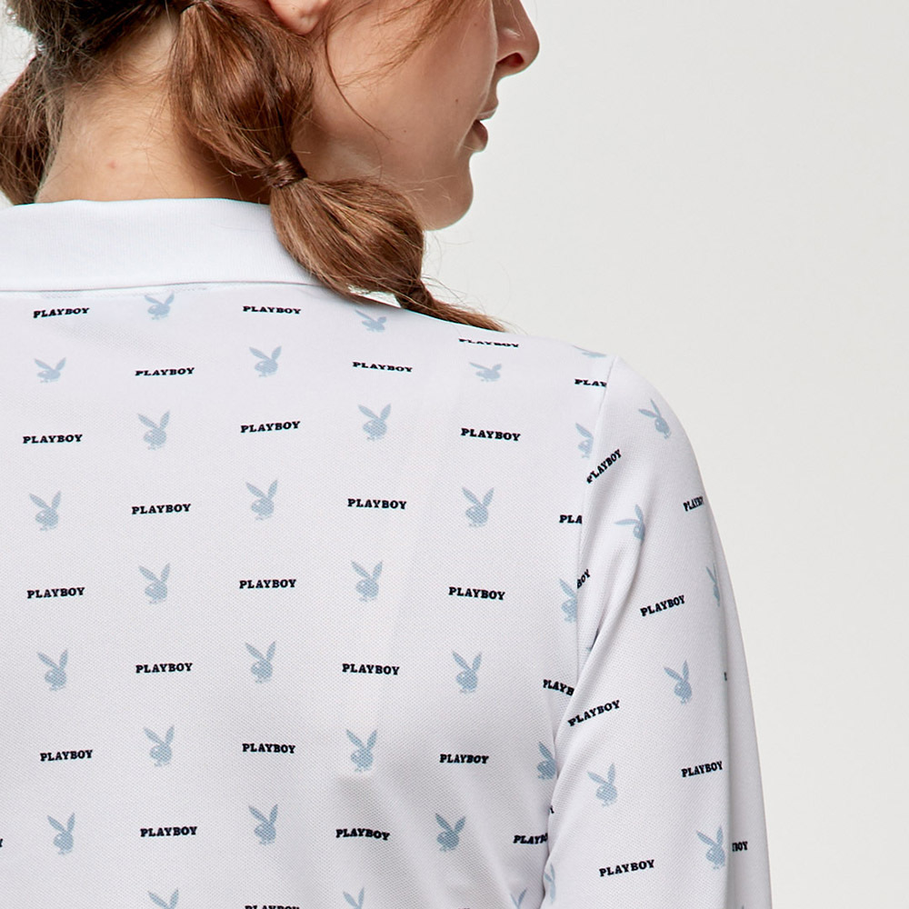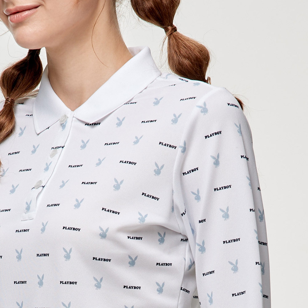 【PLAYBOY GOLF】女款LOGO兔頭印花高爾夫薄長袖POLO衫-白 / KA24209-87