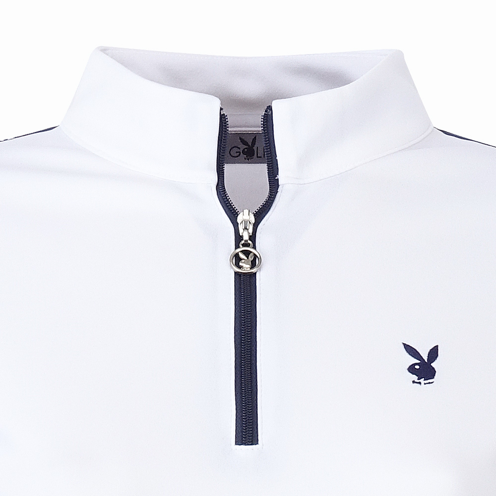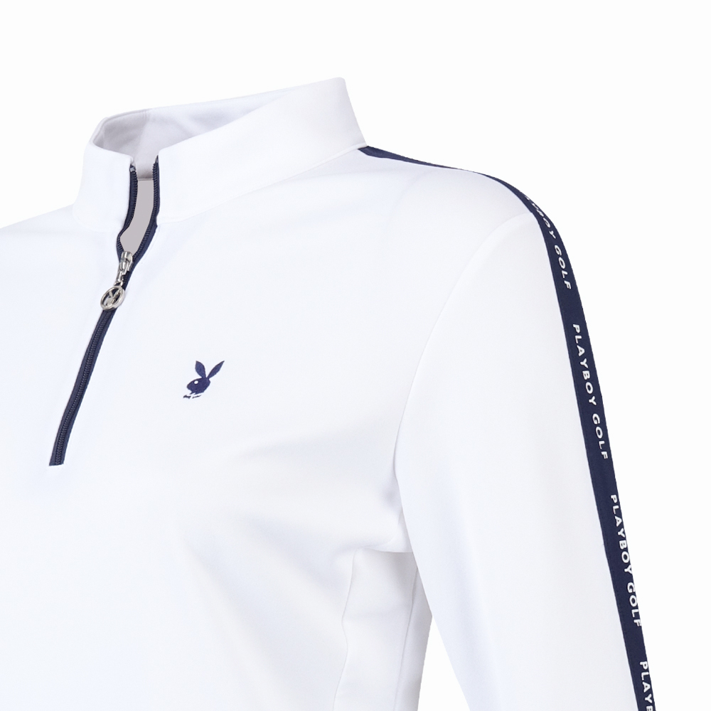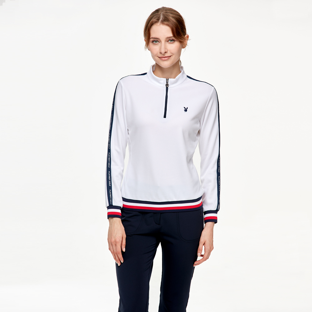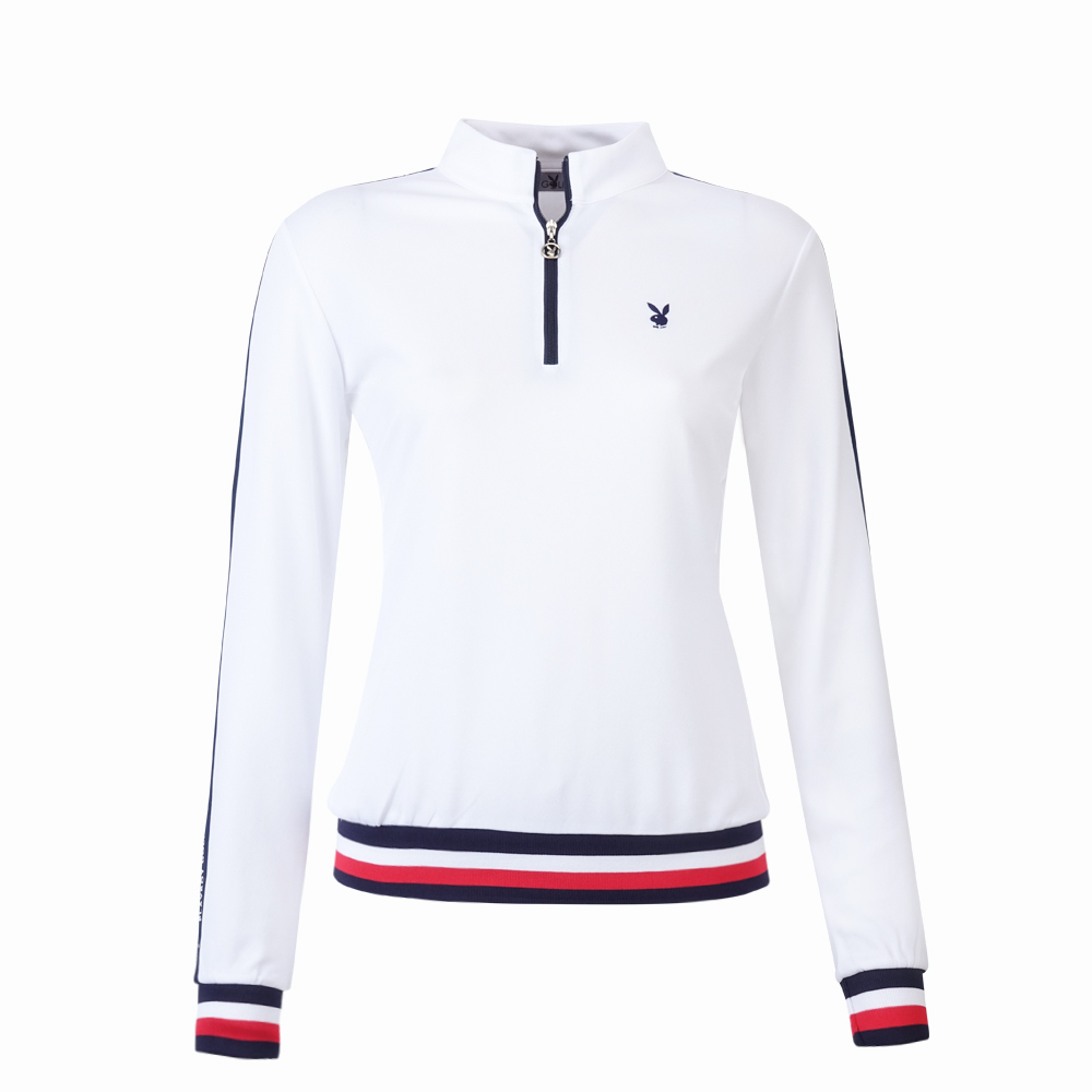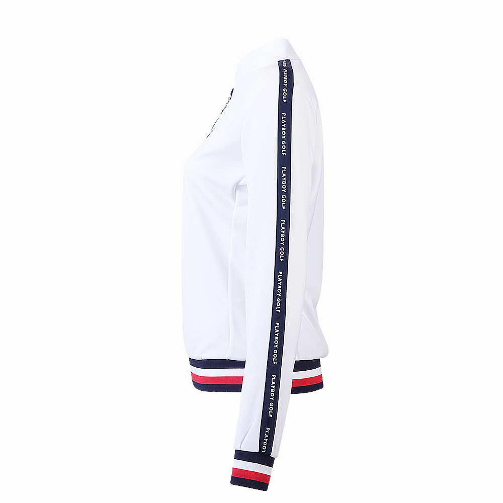 【PLAYBOY GOLF】女款袖片剪接吸濕排汗立領長袖上衣-白 / KA24218-87