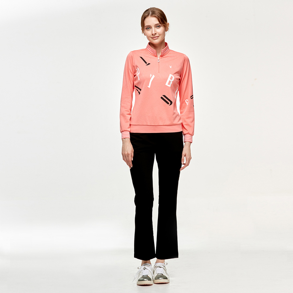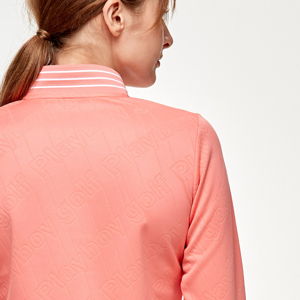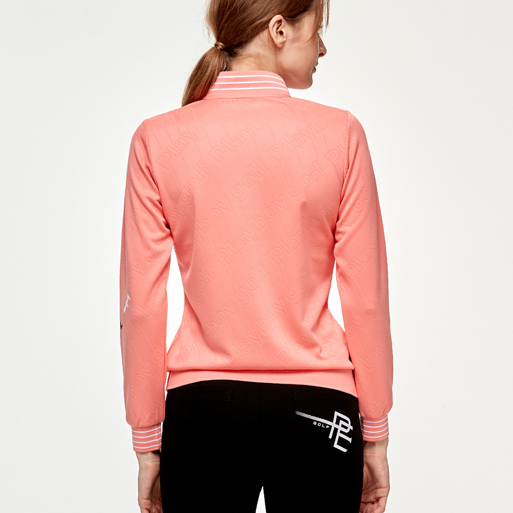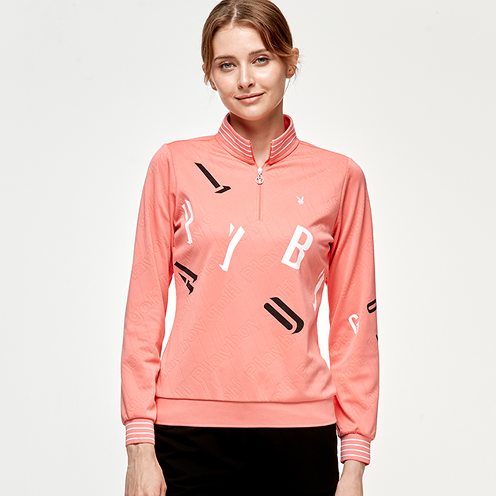 【PLAYBOY GOLF】女款字體印花吸濕排汗立領長袖上衣-橘 / KA24220-25