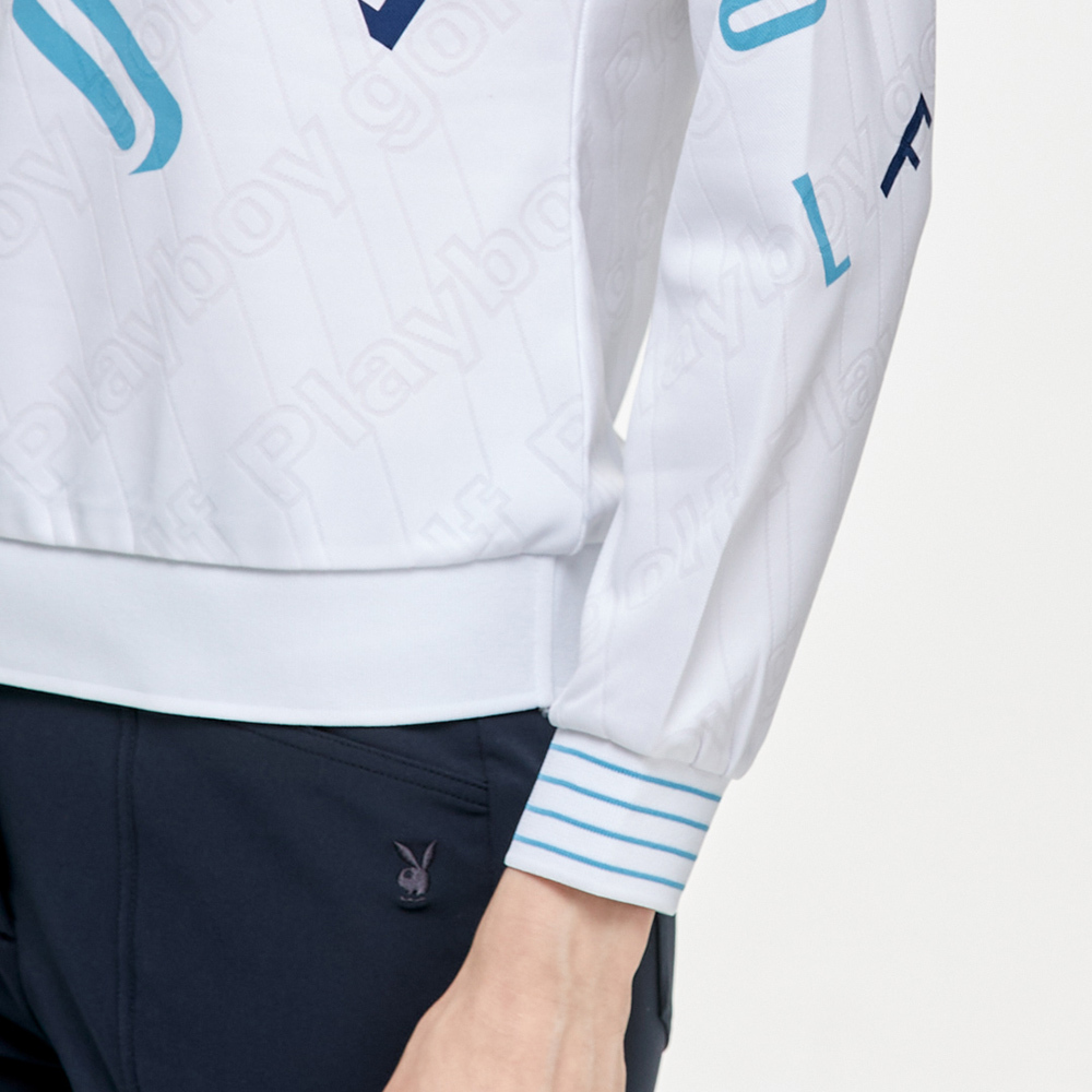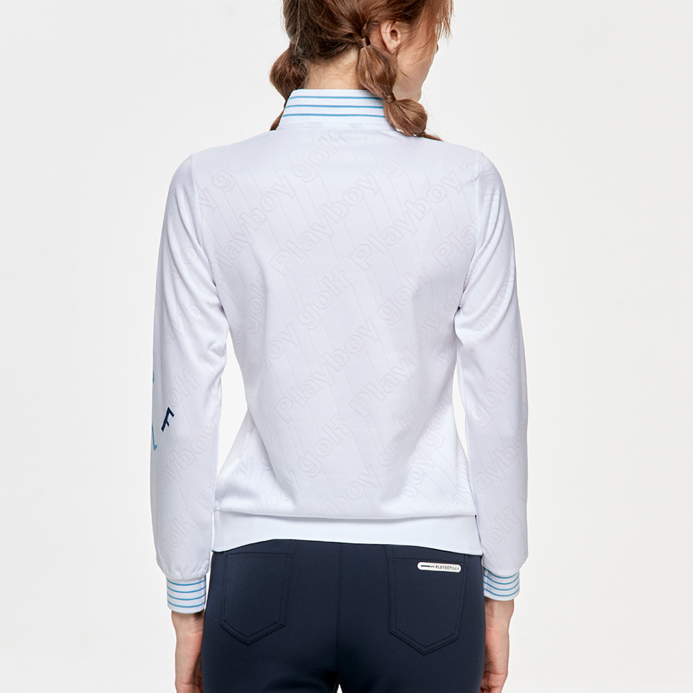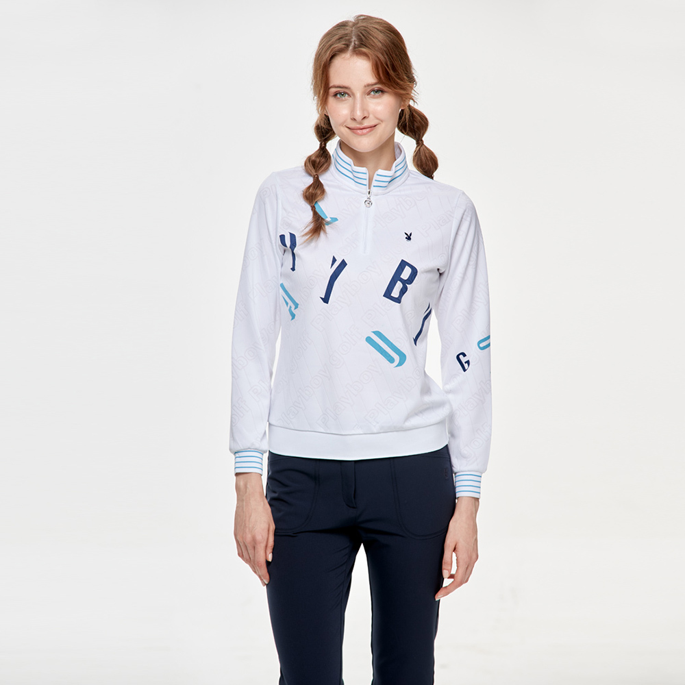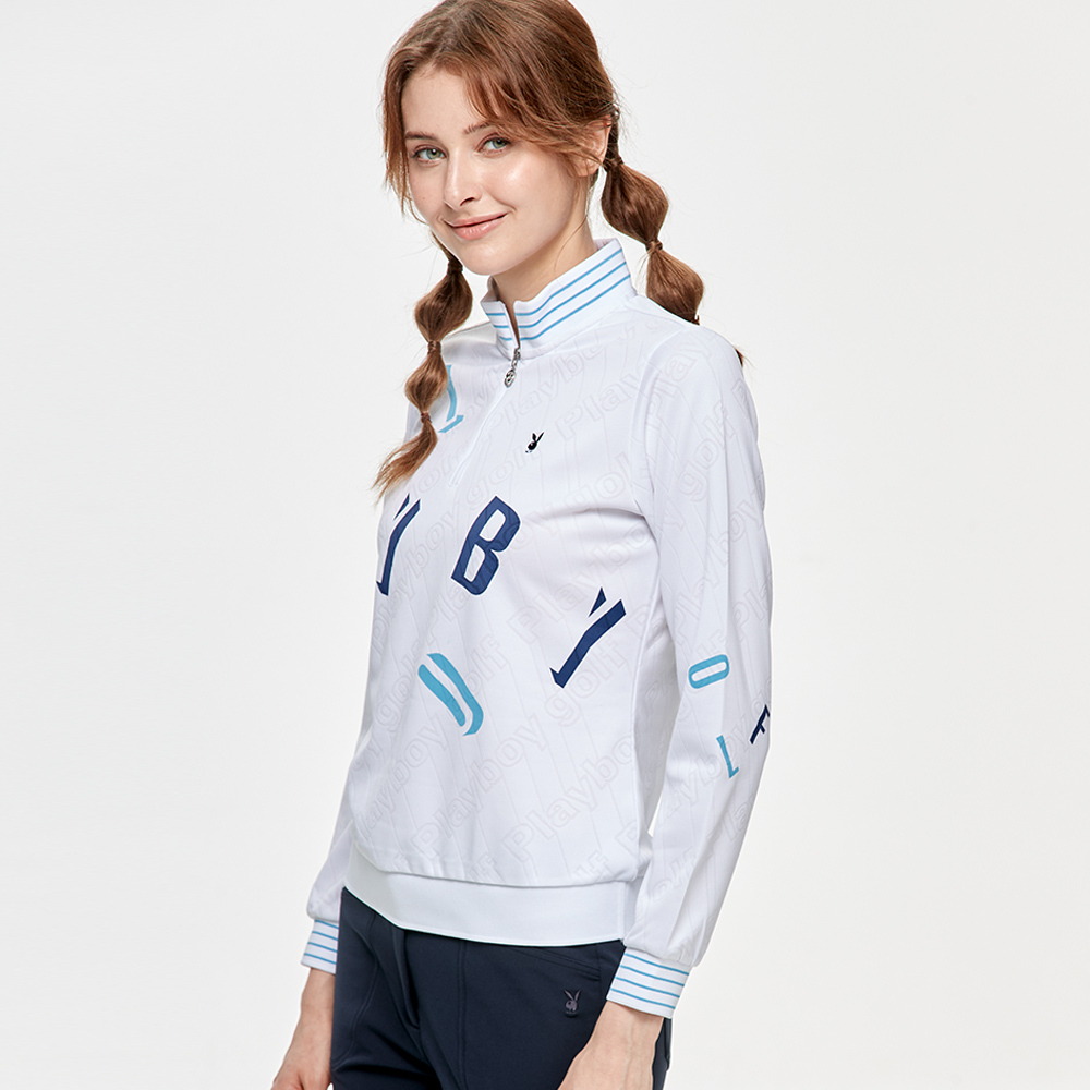 【PLAYBOY GOLF】女款字體印花吸濕排汗立領長袖上衣-白 / KA24220-87