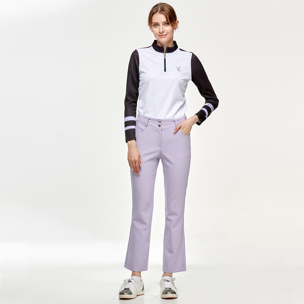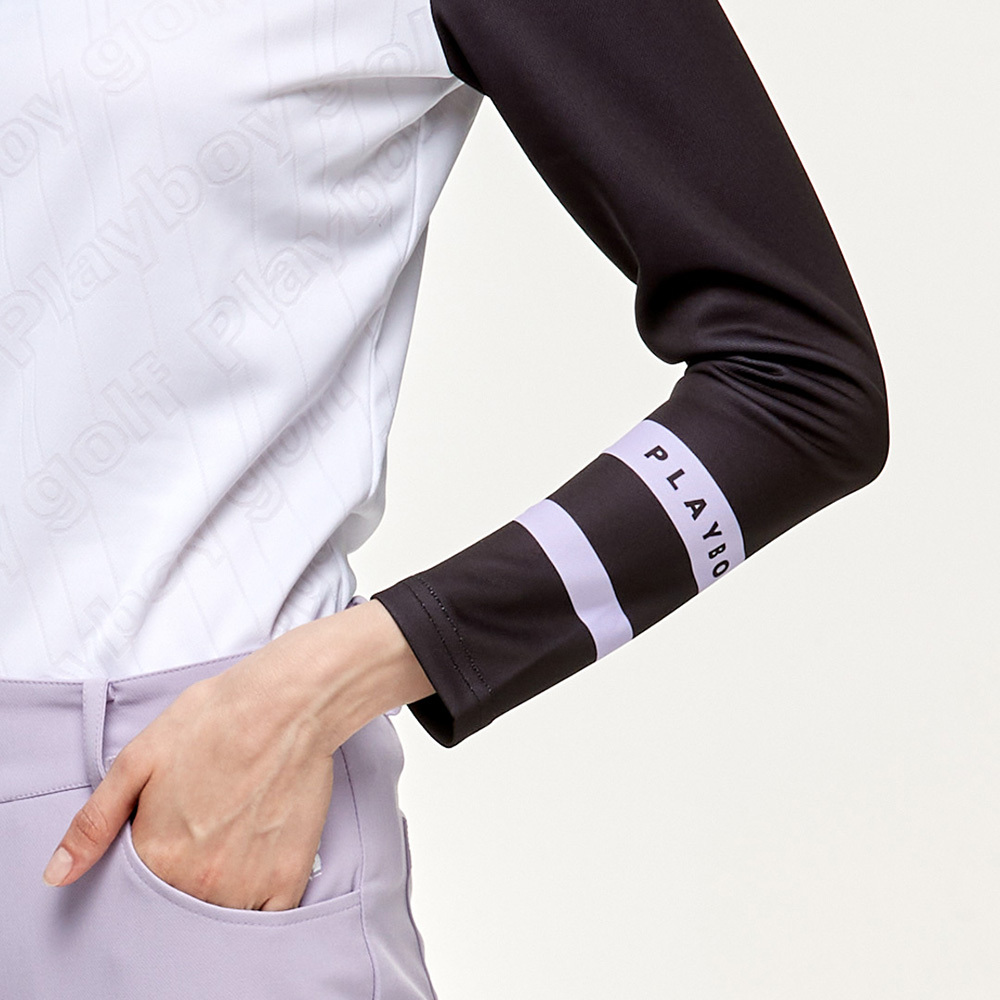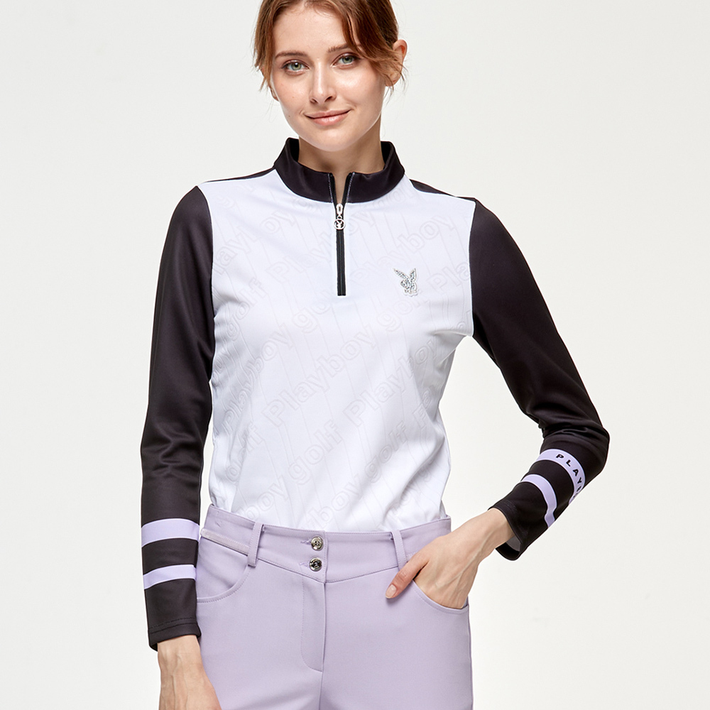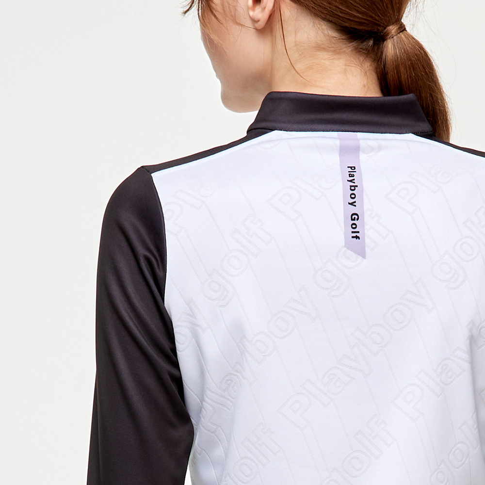 【PLAYBOY GOLF】女款LOGO緹花袖口線圈立領長袖上衣-黑 / KA24221-88
