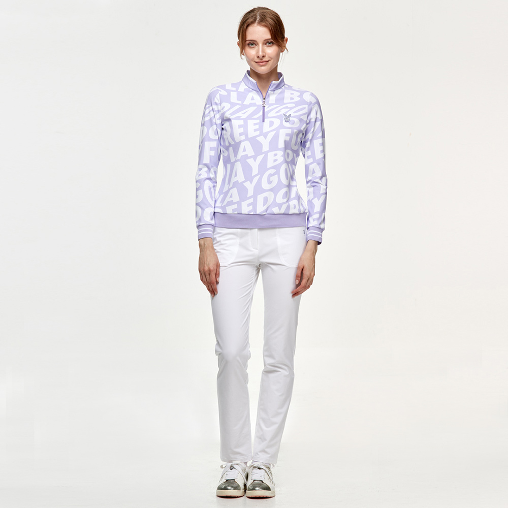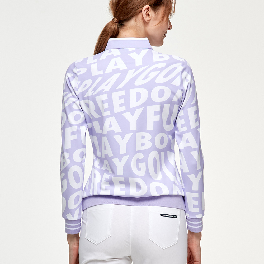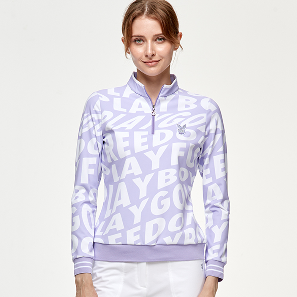 【PLAYBOY GOLF】女款潮流字母塗鴉立領長袖刷毛上衣-紫 / KA24225-65