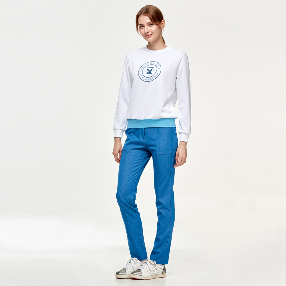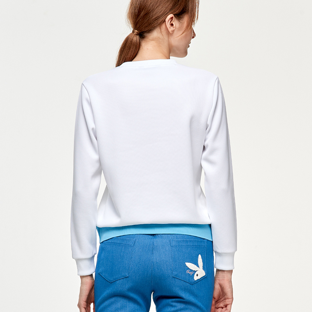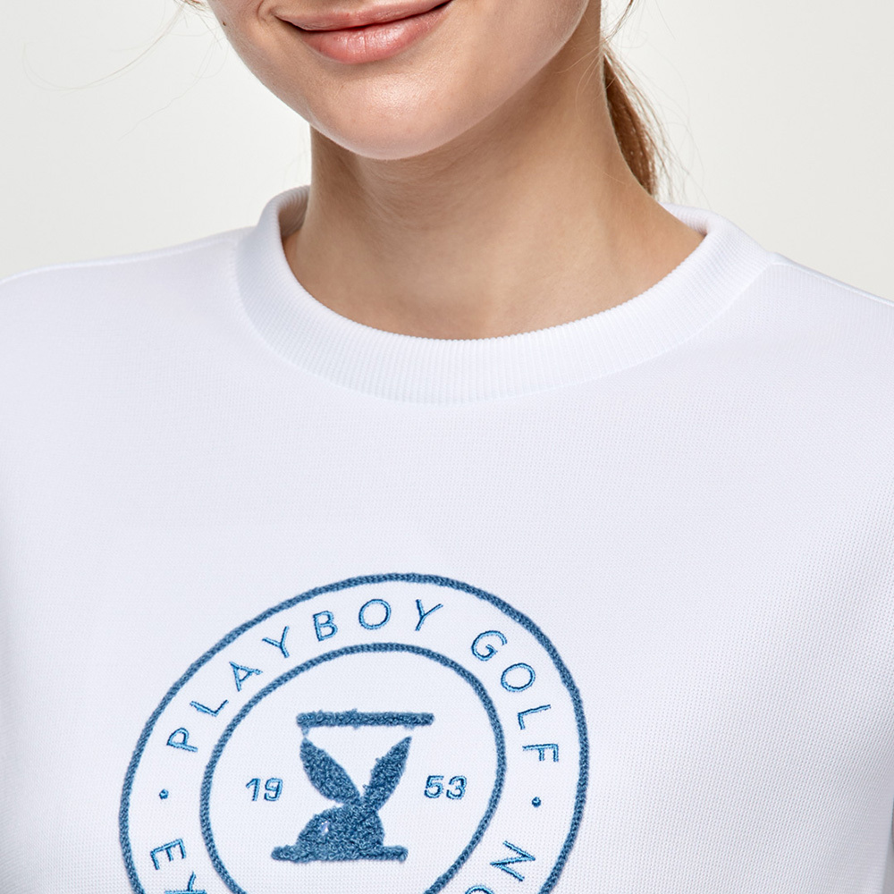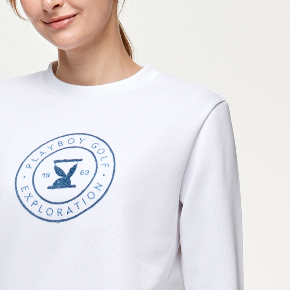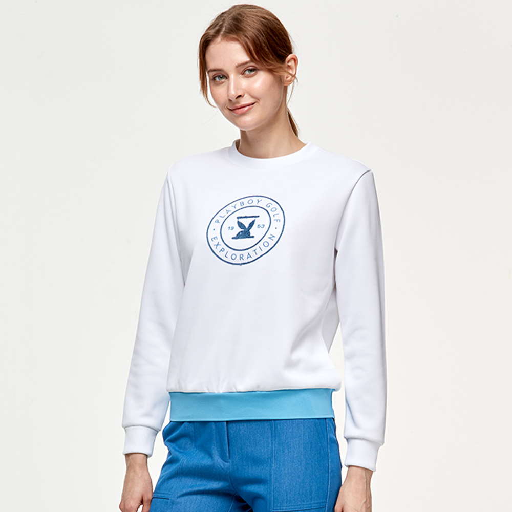 【PLAYBOY GOLF】女款LOGO美式學院風圓領長袖磨毛上衣-白 / KA24230-73