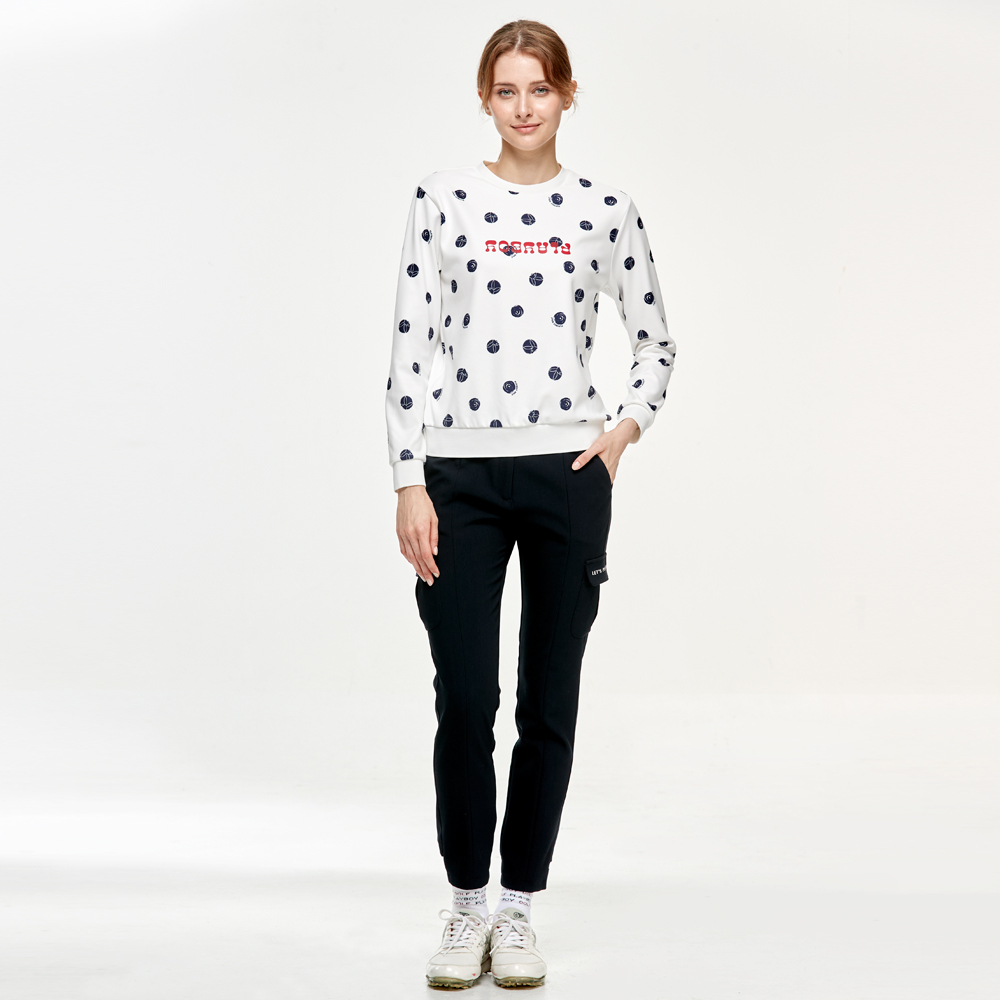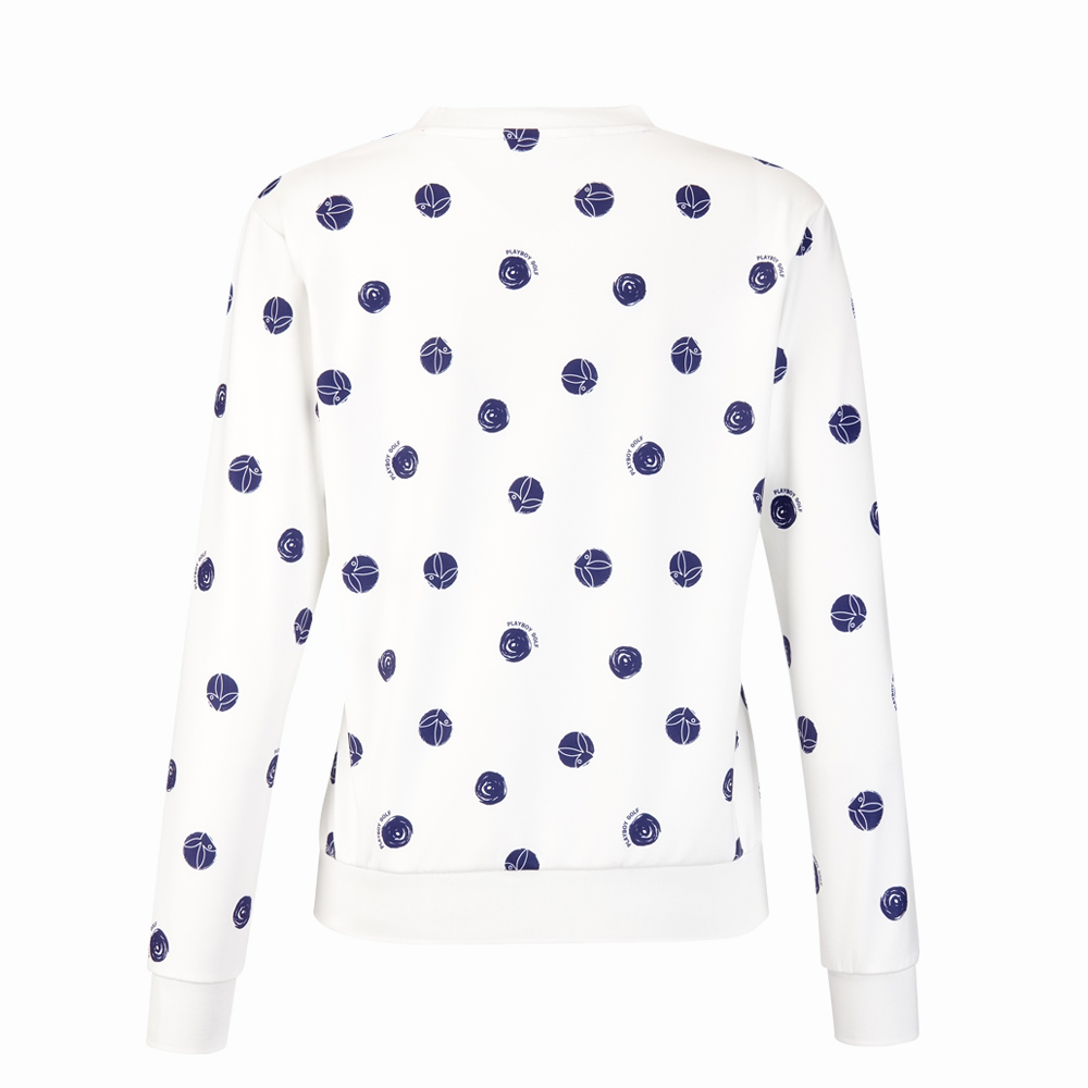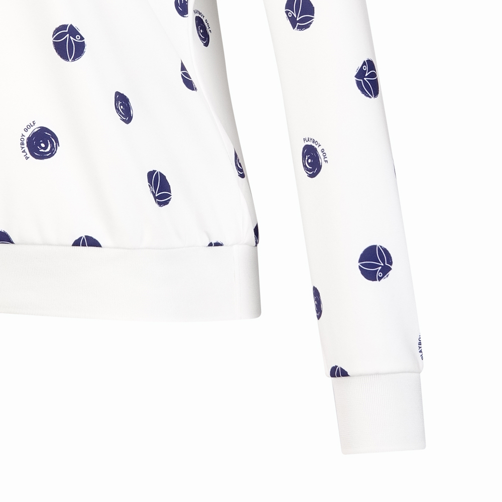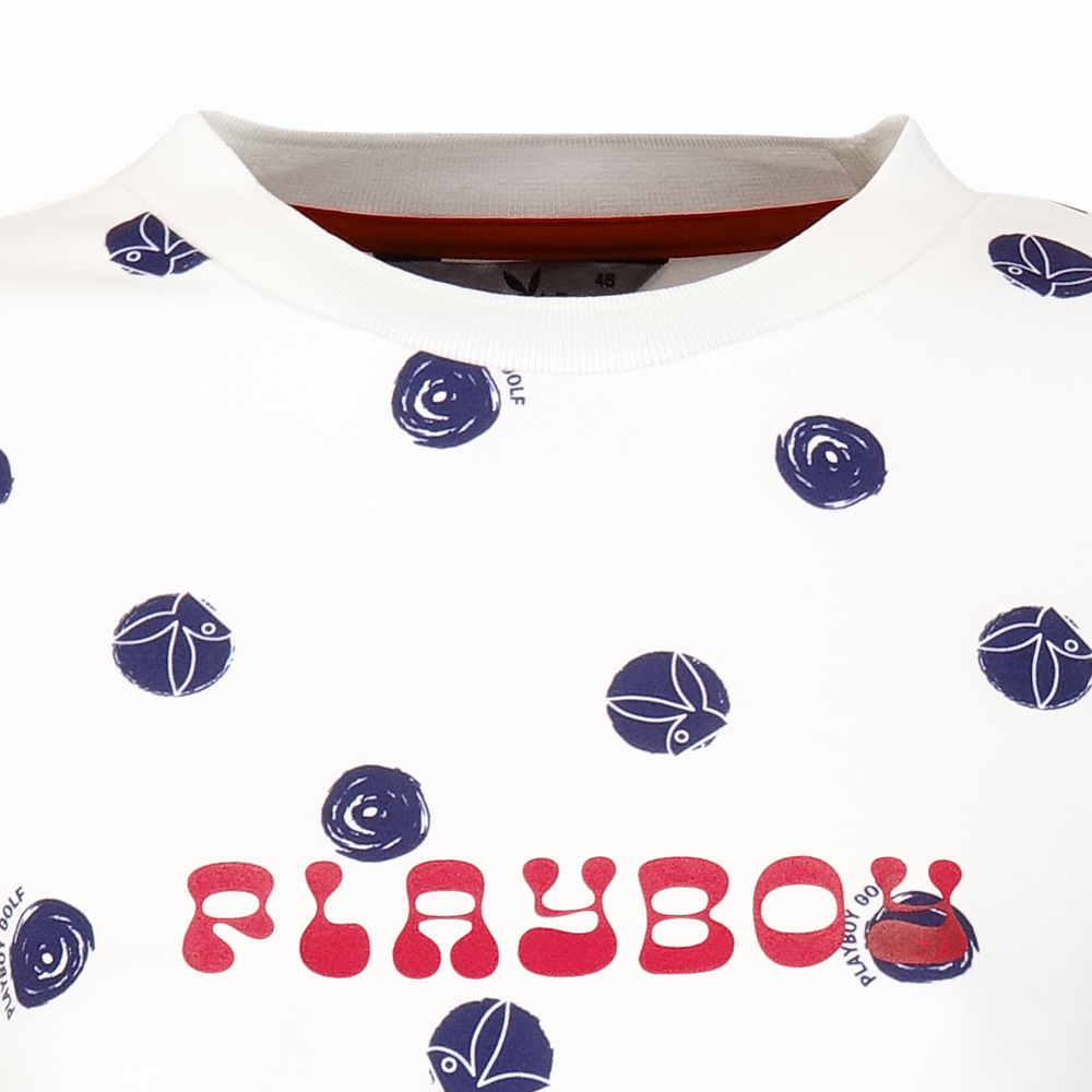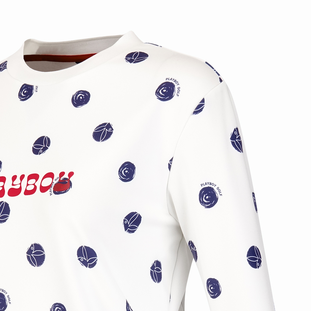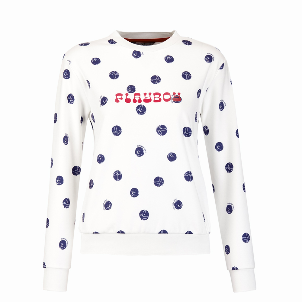【PLAYBOY GOLF】女款圓點美式學院風圓領長袖磨毛上衣-白 / KA24231-73