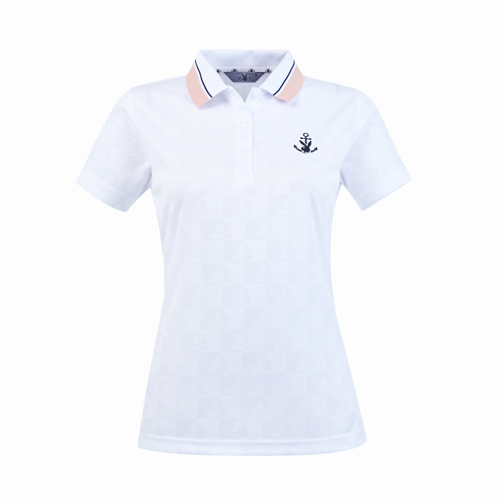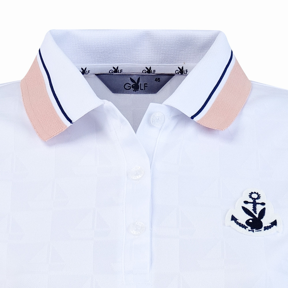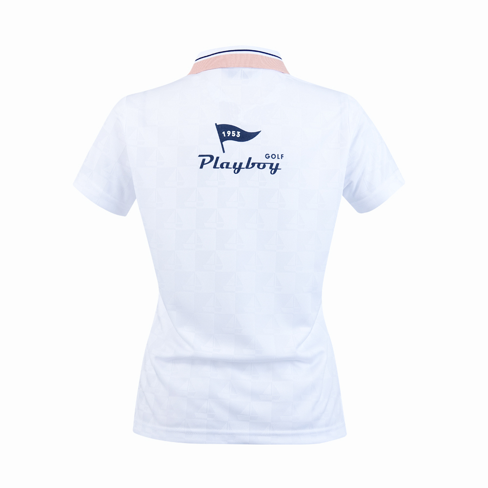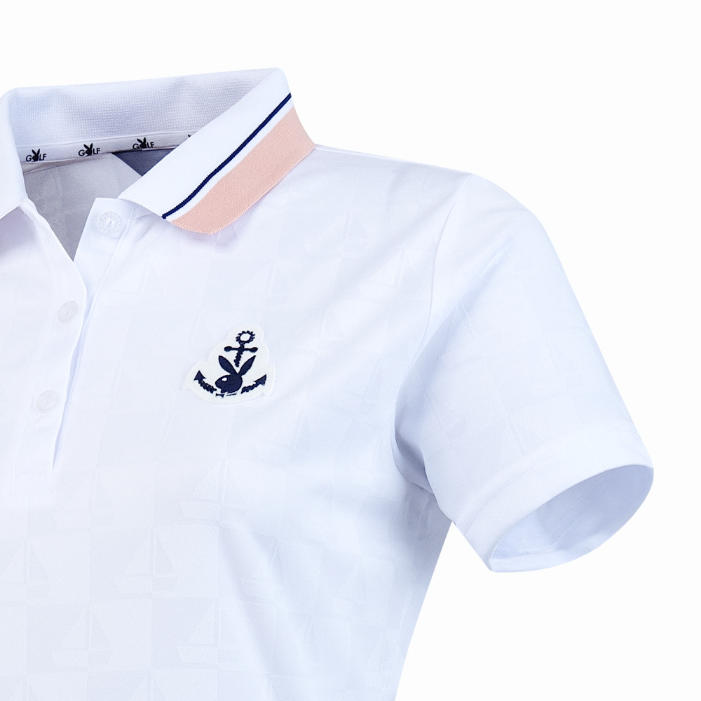 【PLAYBOY GOLF】女款帆船緹花抗UV短袖POLO衫-白 / KA25101-87