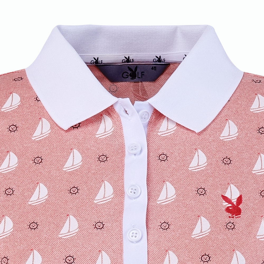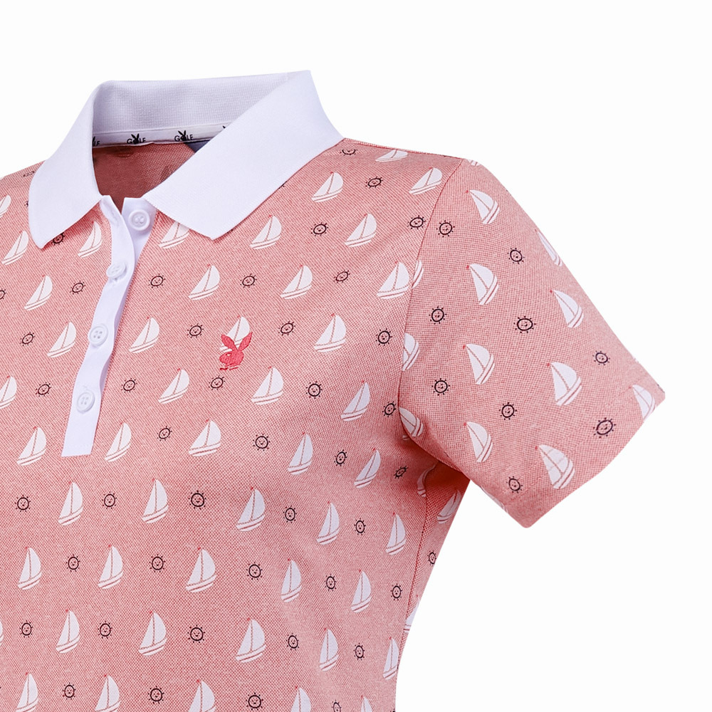 【PLAYBOY GOLF】女款太陽帆船吸濕排汗短袖POLO衫-紅 / KA25102-18