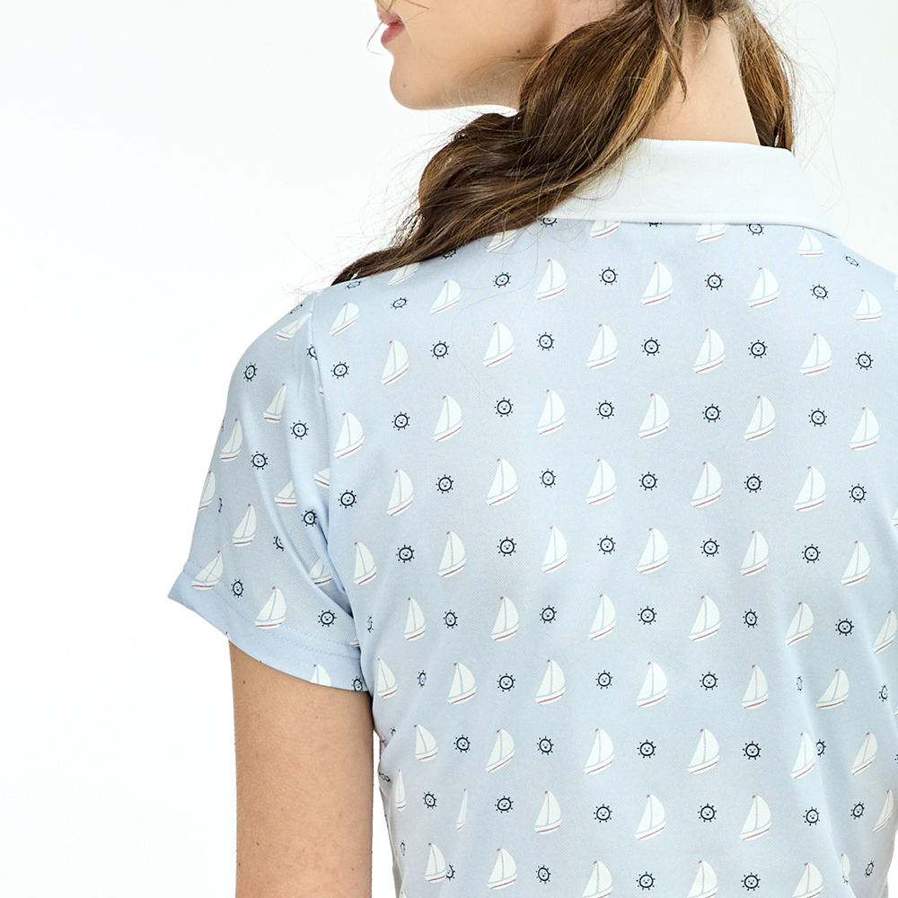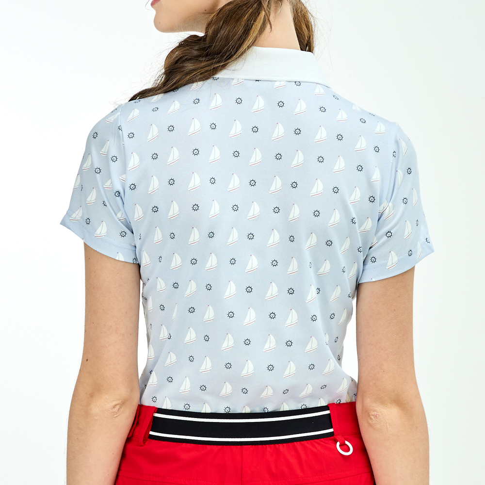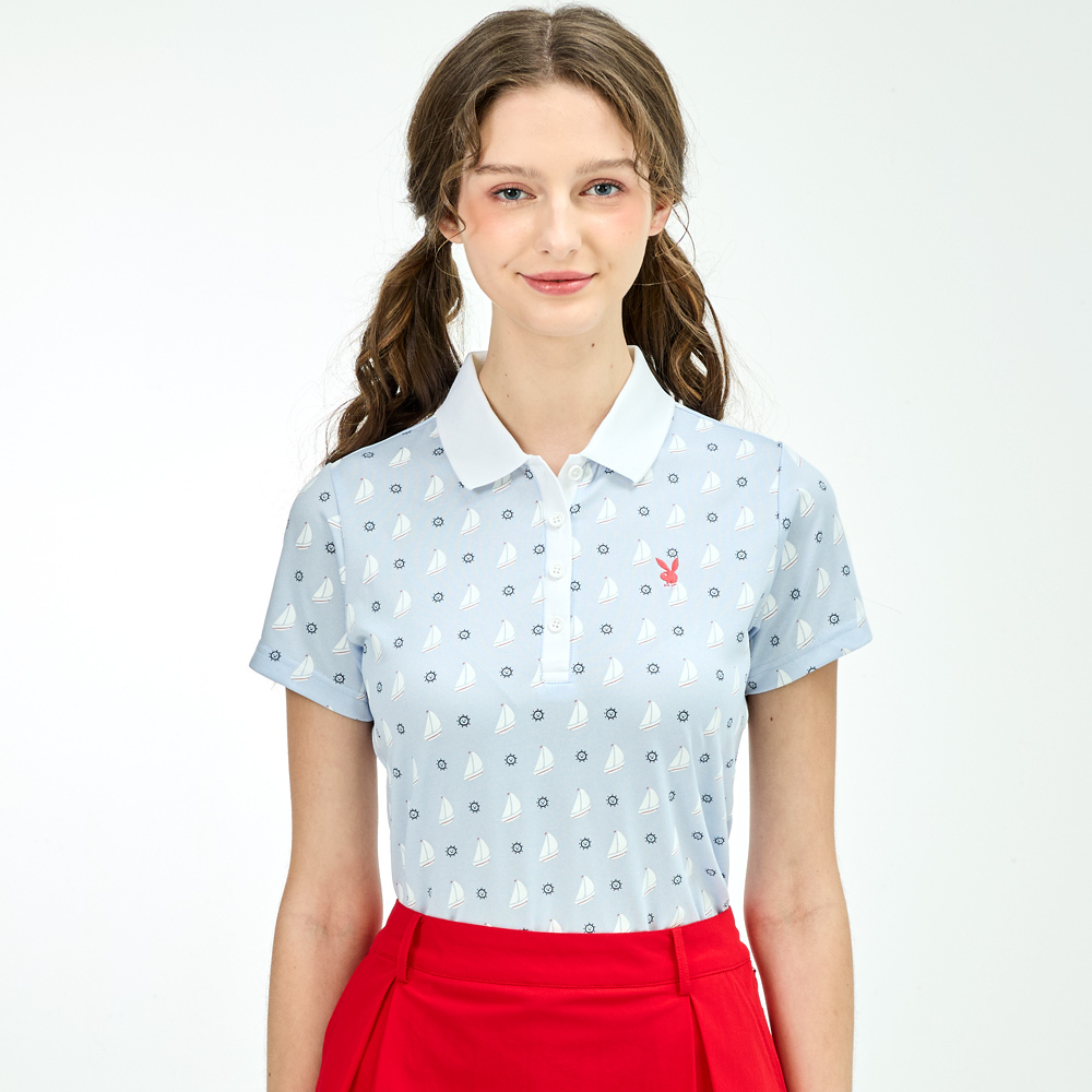 【PLAYBOY GOLF】女款太陽帆船吸濕排汗短袖POLO衫-藍 / KA25102-53