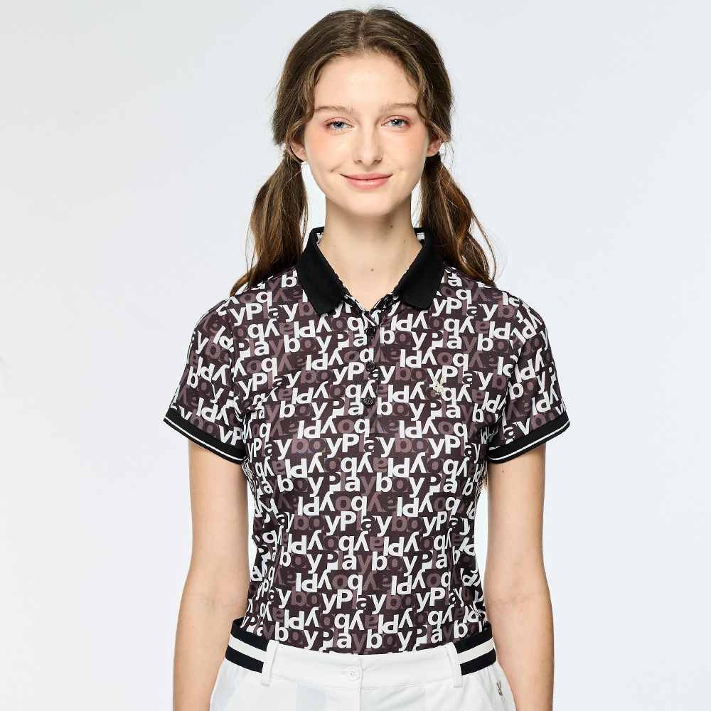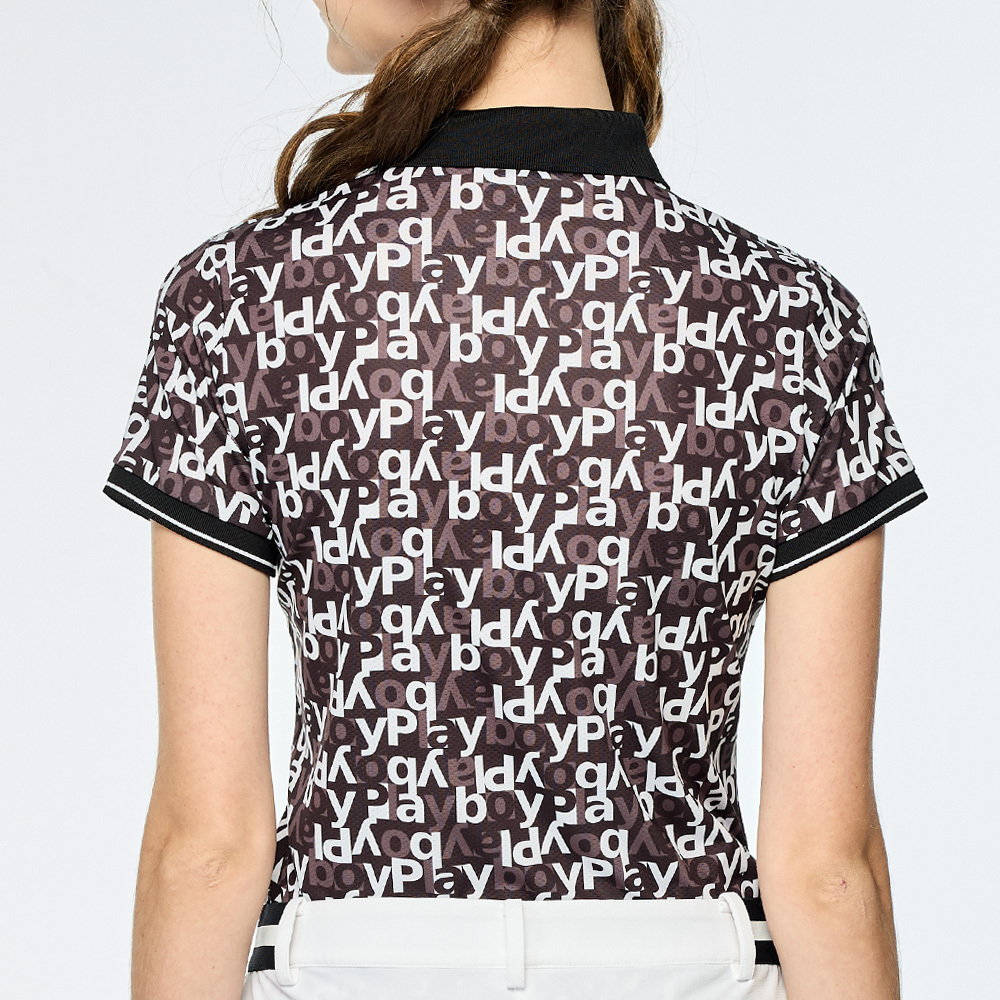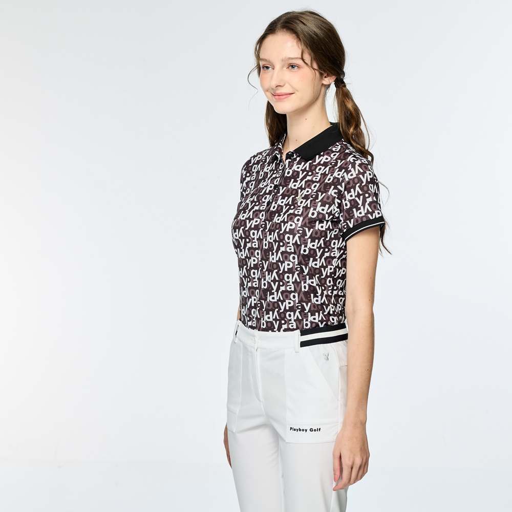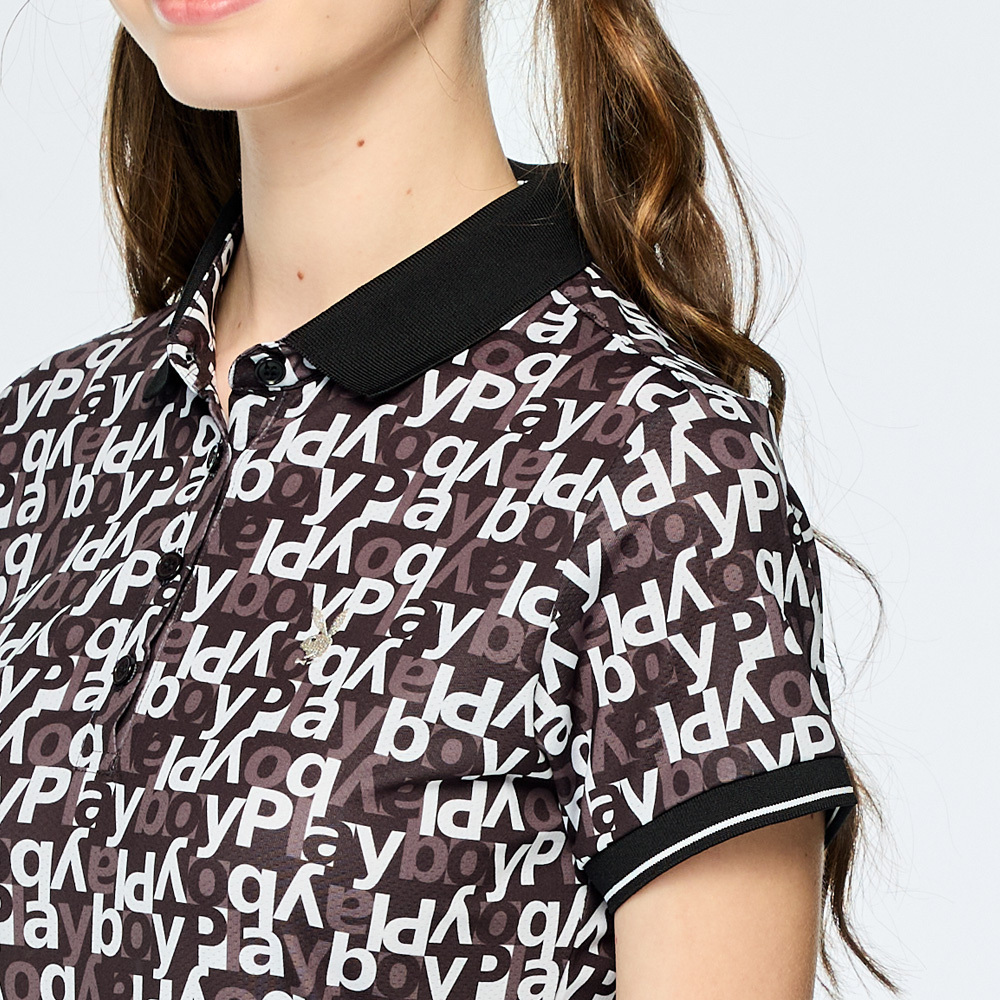 【PLAYBOY GOLF】女款LOGO字吸濕排汗短袖POLO衫-黑 / KA25103-88