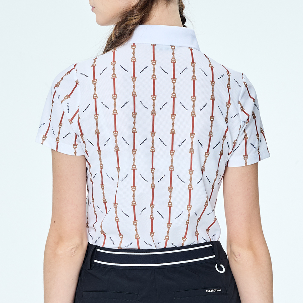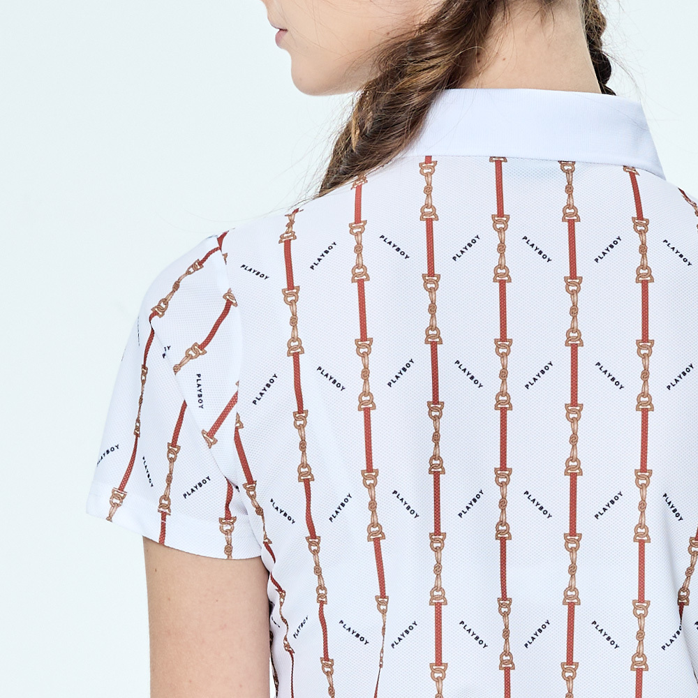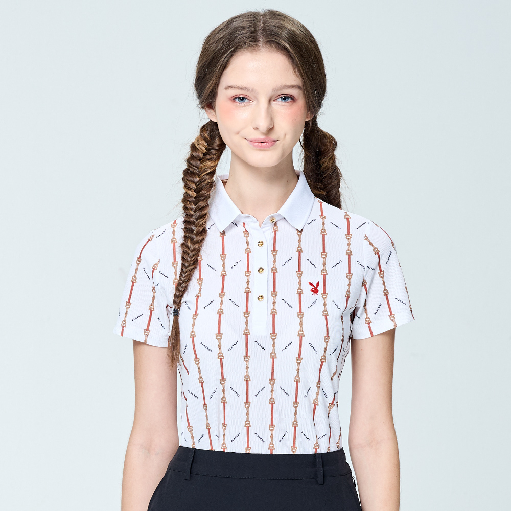 【PLAYBOY GOLF】女款鎖鏈印花吸濕排汗短袖POLO衫-白 / KA25104-87