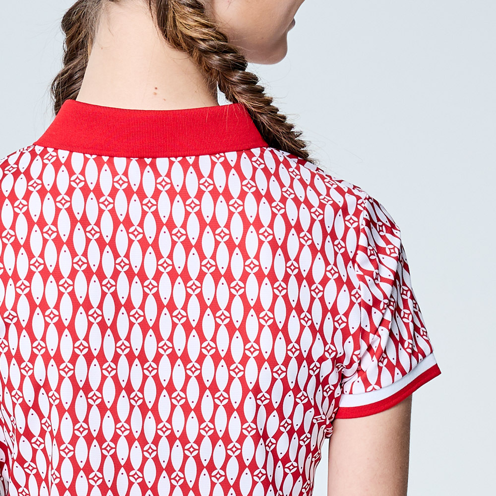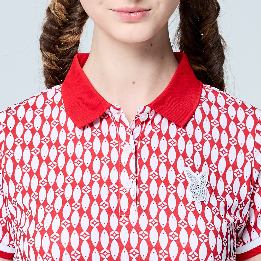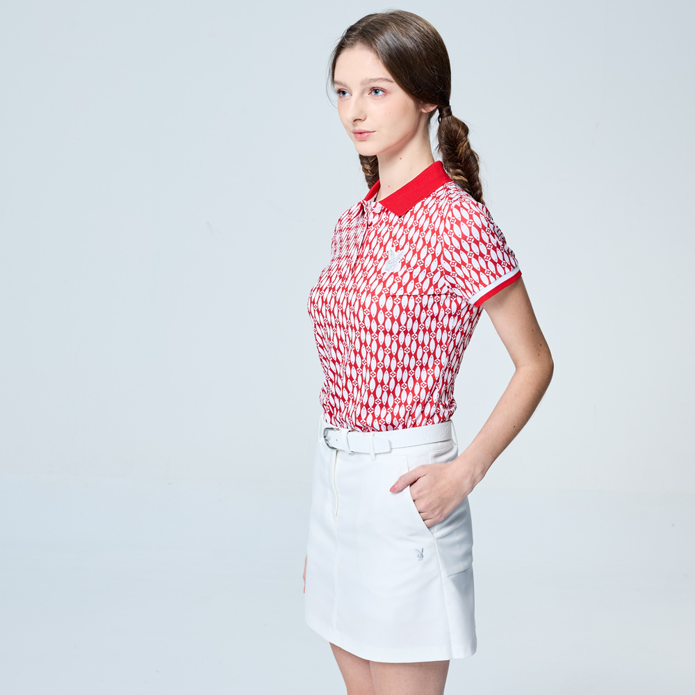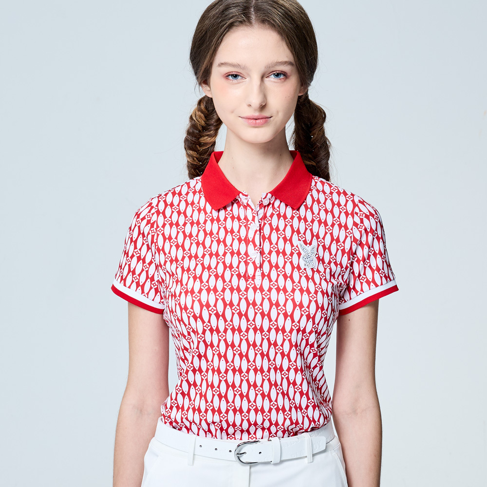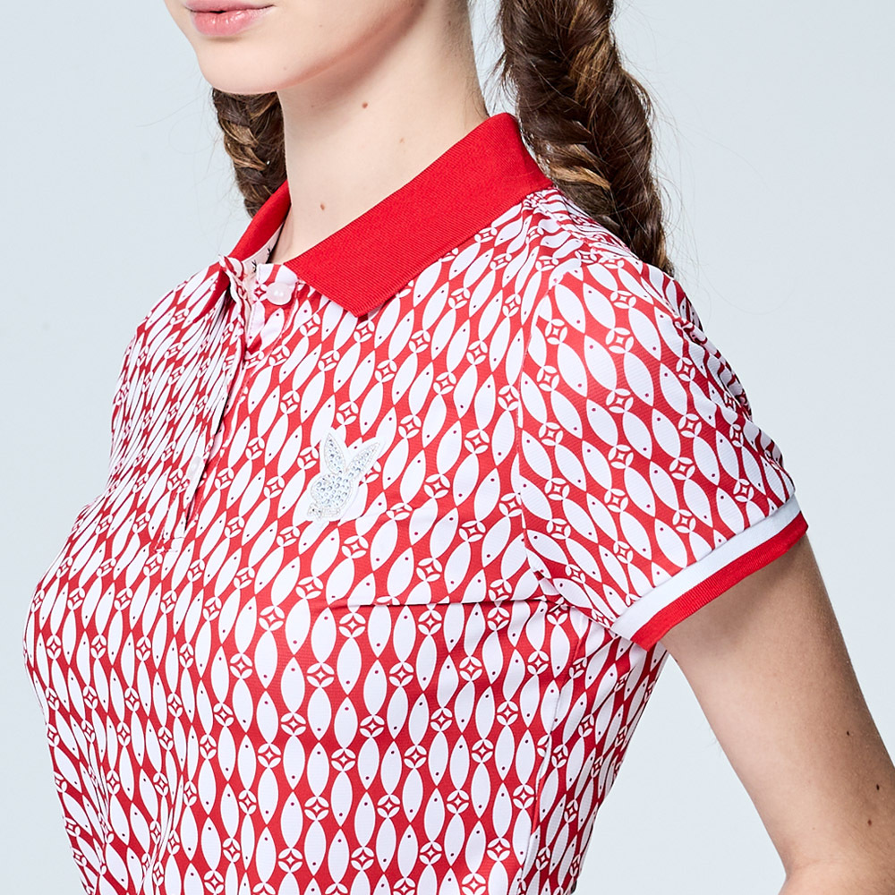 【PLAYBOY GOLF】女款小魚印花銀離子抗菌防臭短袖POLO衫-紅 / KA25108-18