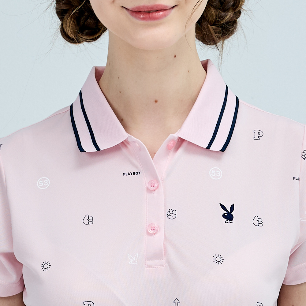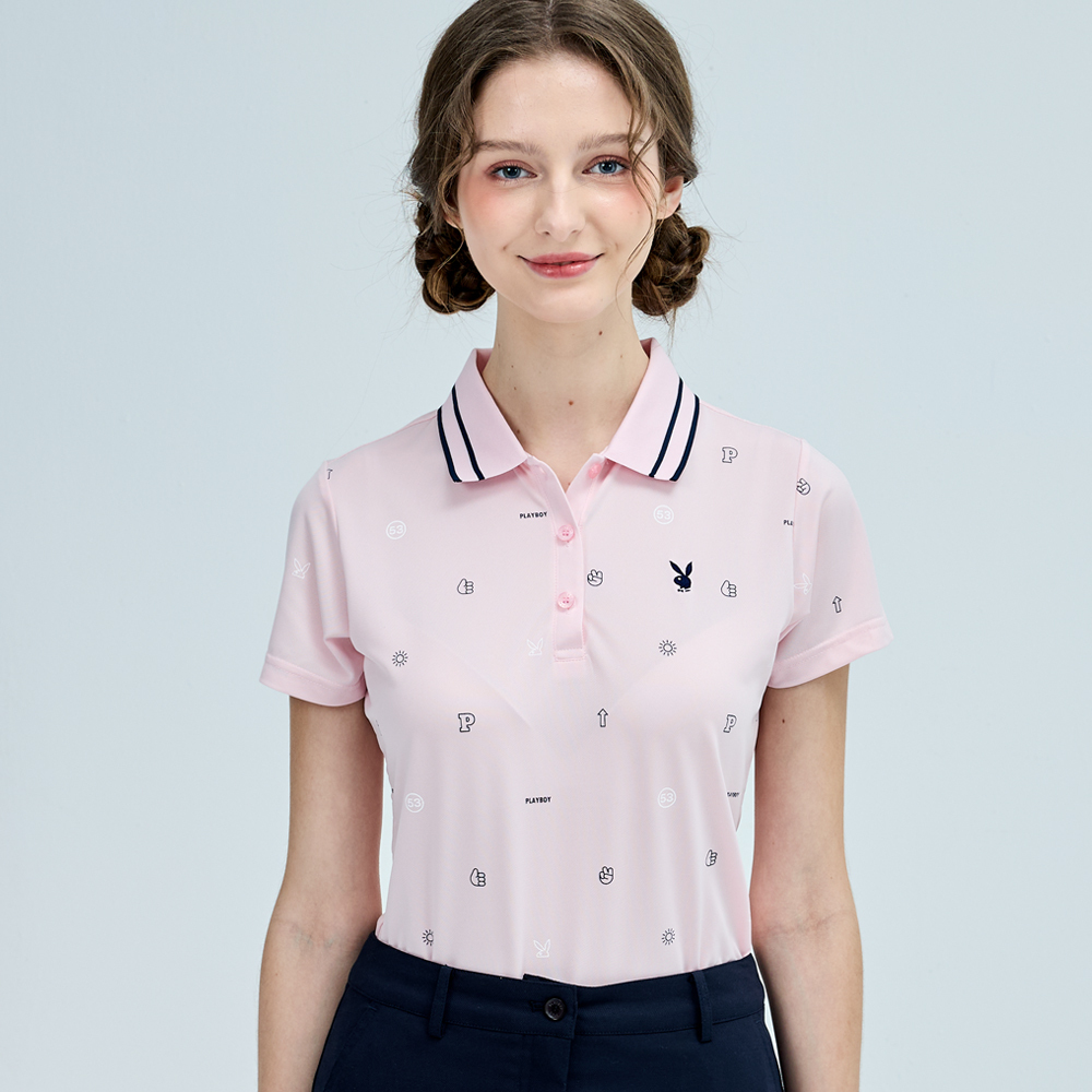 【PLAYBOY GOLF】女款吸濕排汗抗UV短袖POLO衫-粉 / KA25110-15
