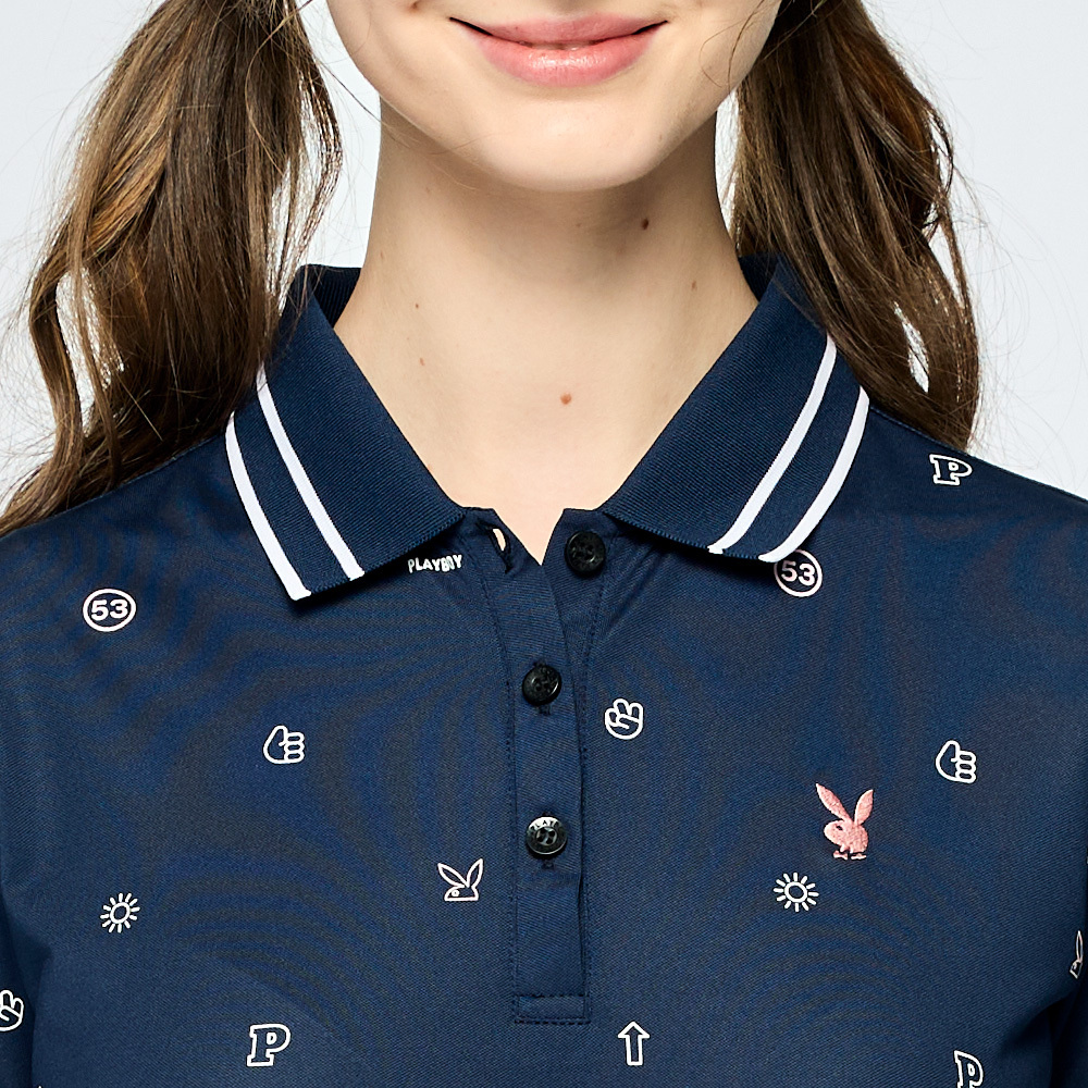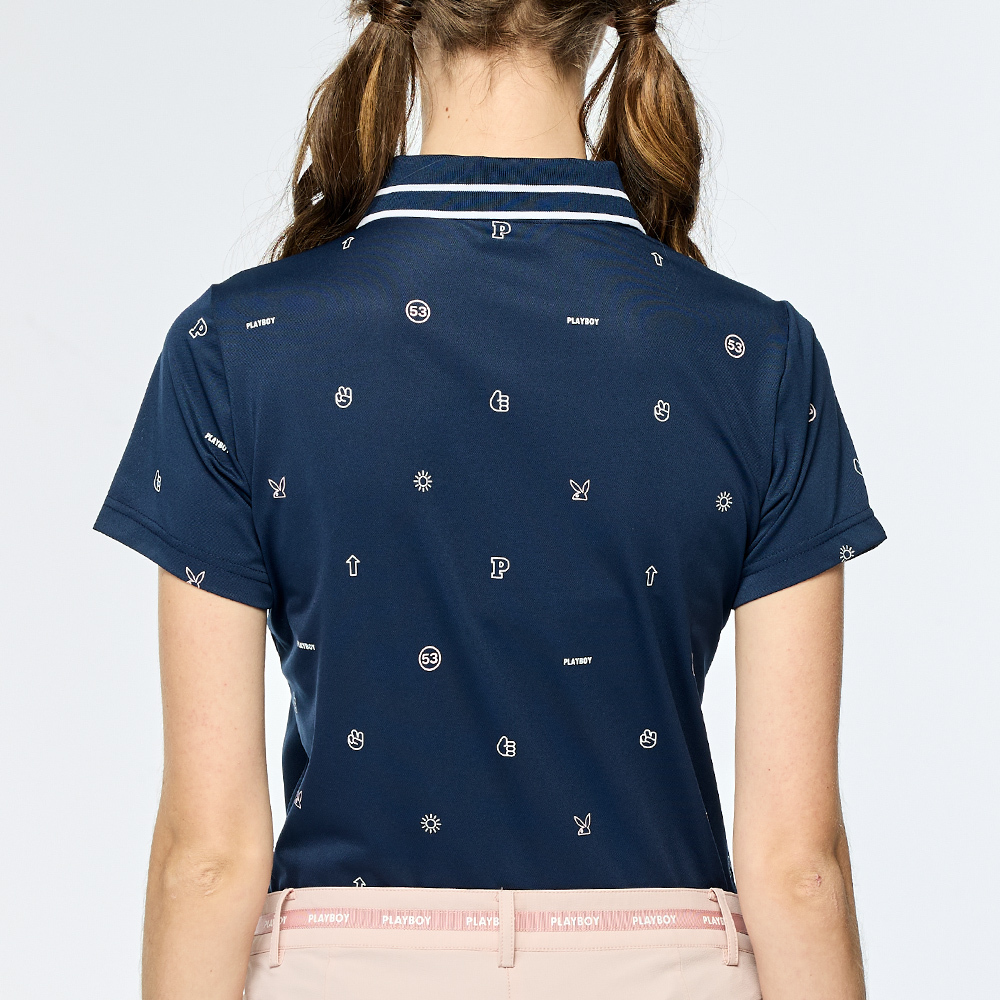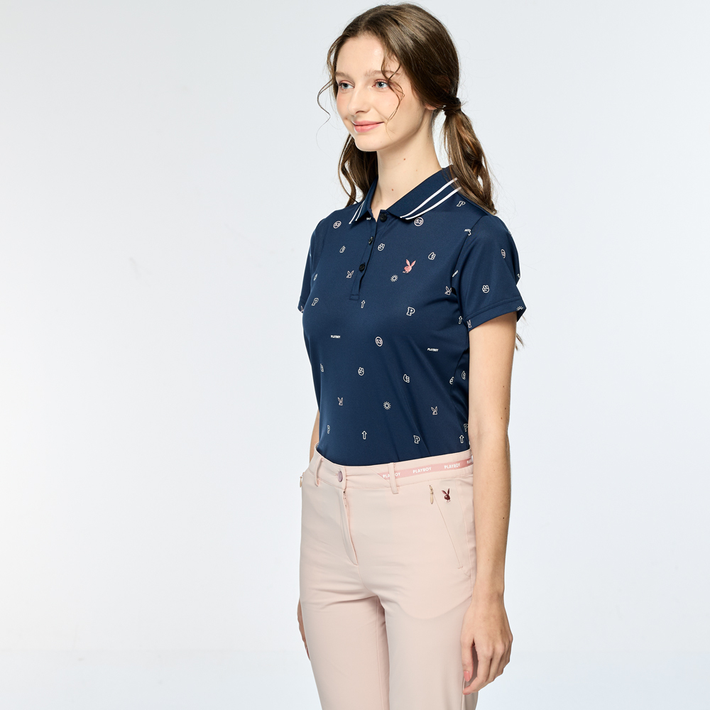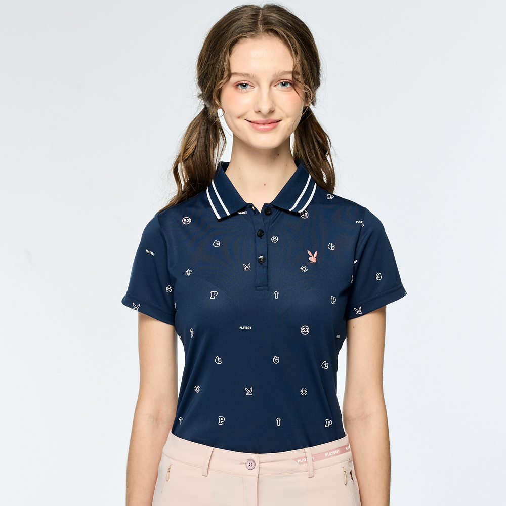 【PLAYBOY GOLF】女款吸濕排汗抗UV短袖POLO衫-深藍 / KA25110-58